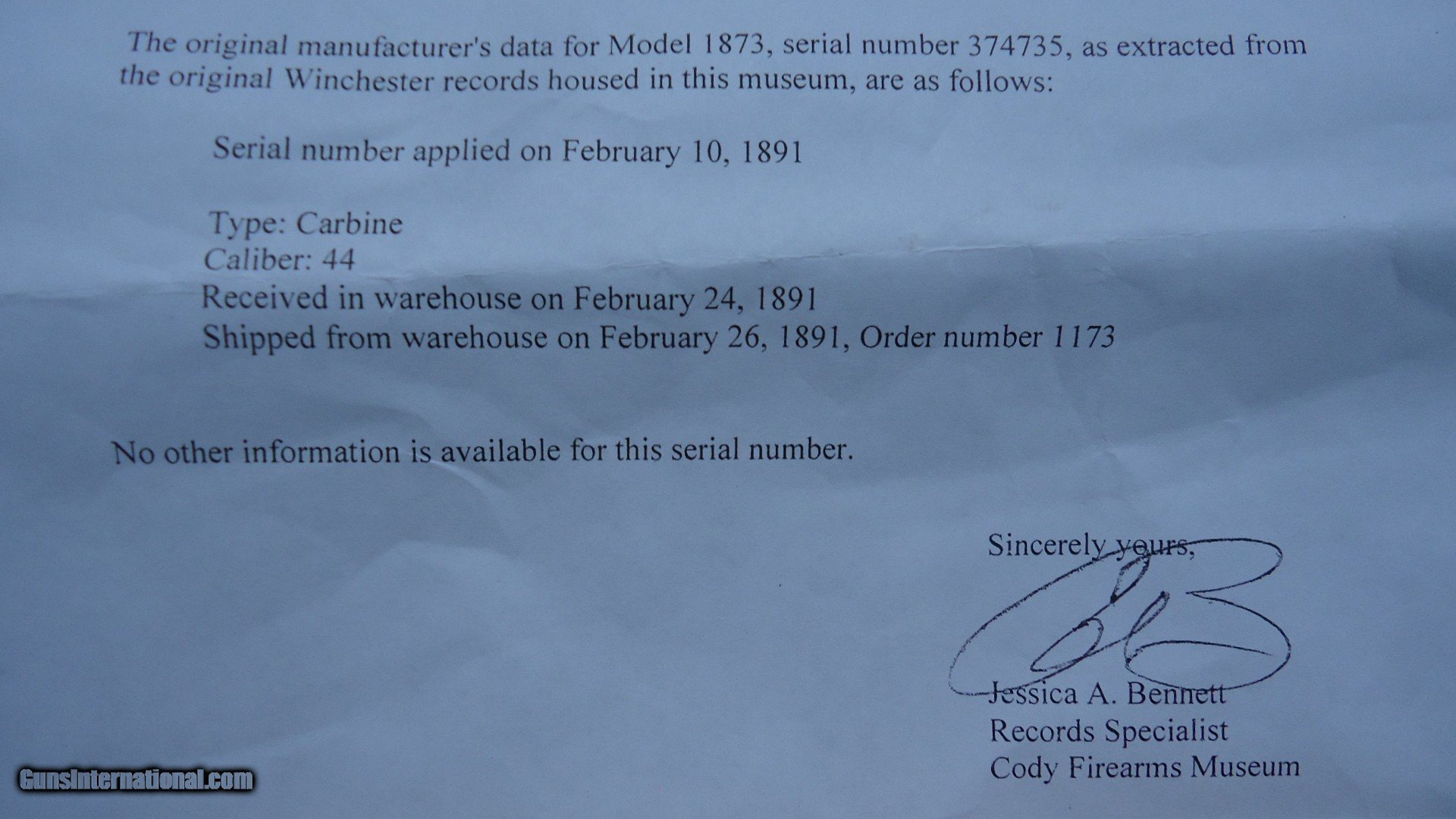 **Sale Pending** WINCHESTER MODEL 1873 SADDLE RING CARBINE IN CALIBER 44-40