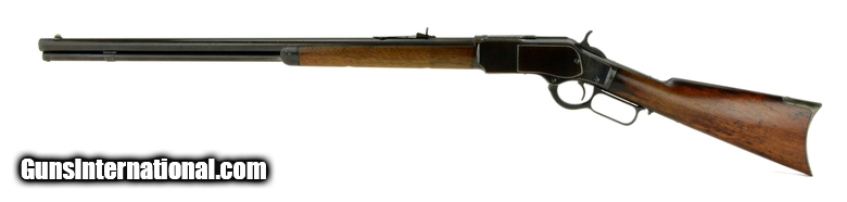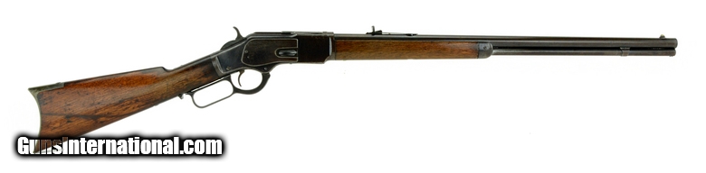 Winchester 1873 38-40 caliber rifle. Made in 1884 .32-20 caliber with a dark bore with pitting. This is a round barrel variation with mostly a smooth brown patina on metal. The frame actually has a decent amount of blue. Wood is very good. All in all, this is an attractive and respectable Winchester 1873!