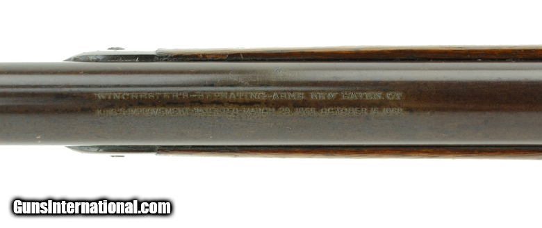 Description: Winchester 1873 38-40 caliber rifle. Made in 1884 .32-20 caliber with a dark bore with pitting. This is a round barrel variation with mostly a smooth brown patina on metal. The frame actually has a decent amount of blue. Wood is very good. All in all, this is an attractive and respectable Winchester 1873! SOLD Antique: Yes |