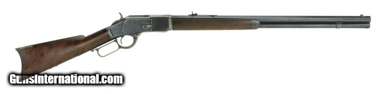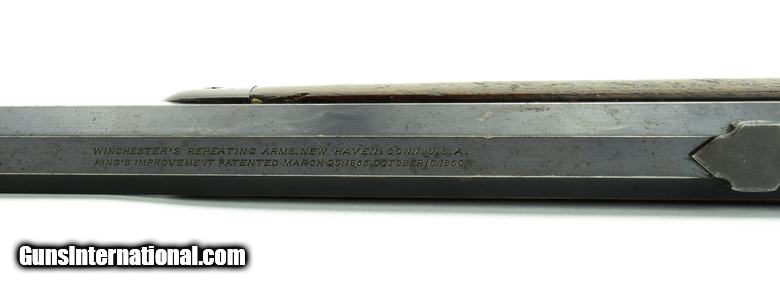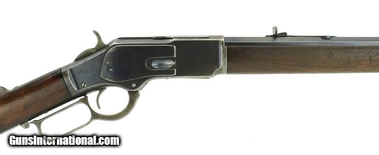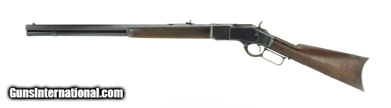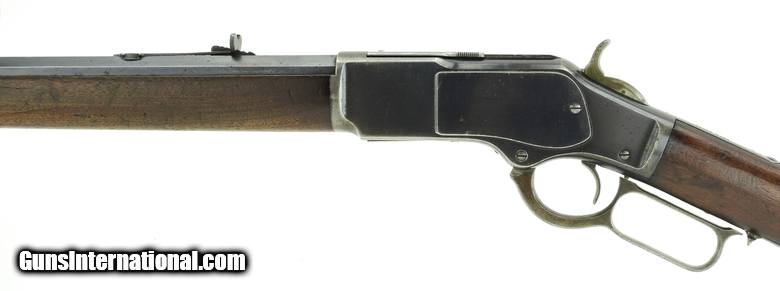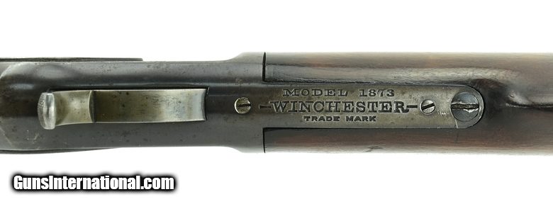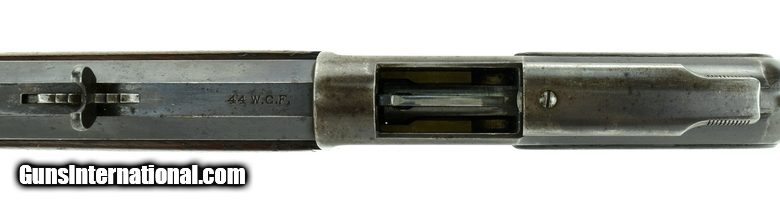 Description: Winchester 1873 .44-40 Rifle. Winchester 1873 .44-40 made in 1905 with an excellent bore. Metal is excellent and has 96% of the original blue on the barrel and 80% blue on the frame. Wood is very fine. The buttstock is slightly undersized, but has not been refinished. Very nice sharp gun with a lot of original blue in the best caliber.
