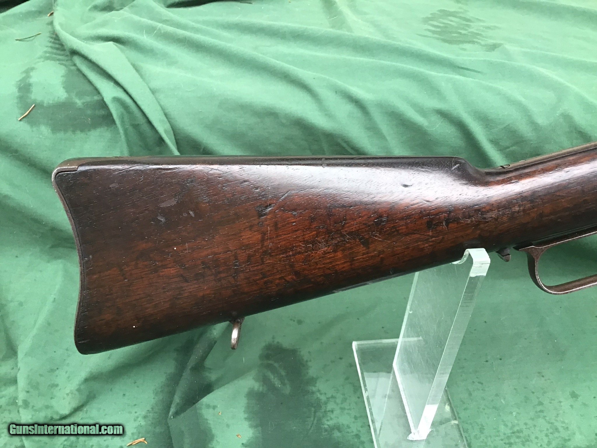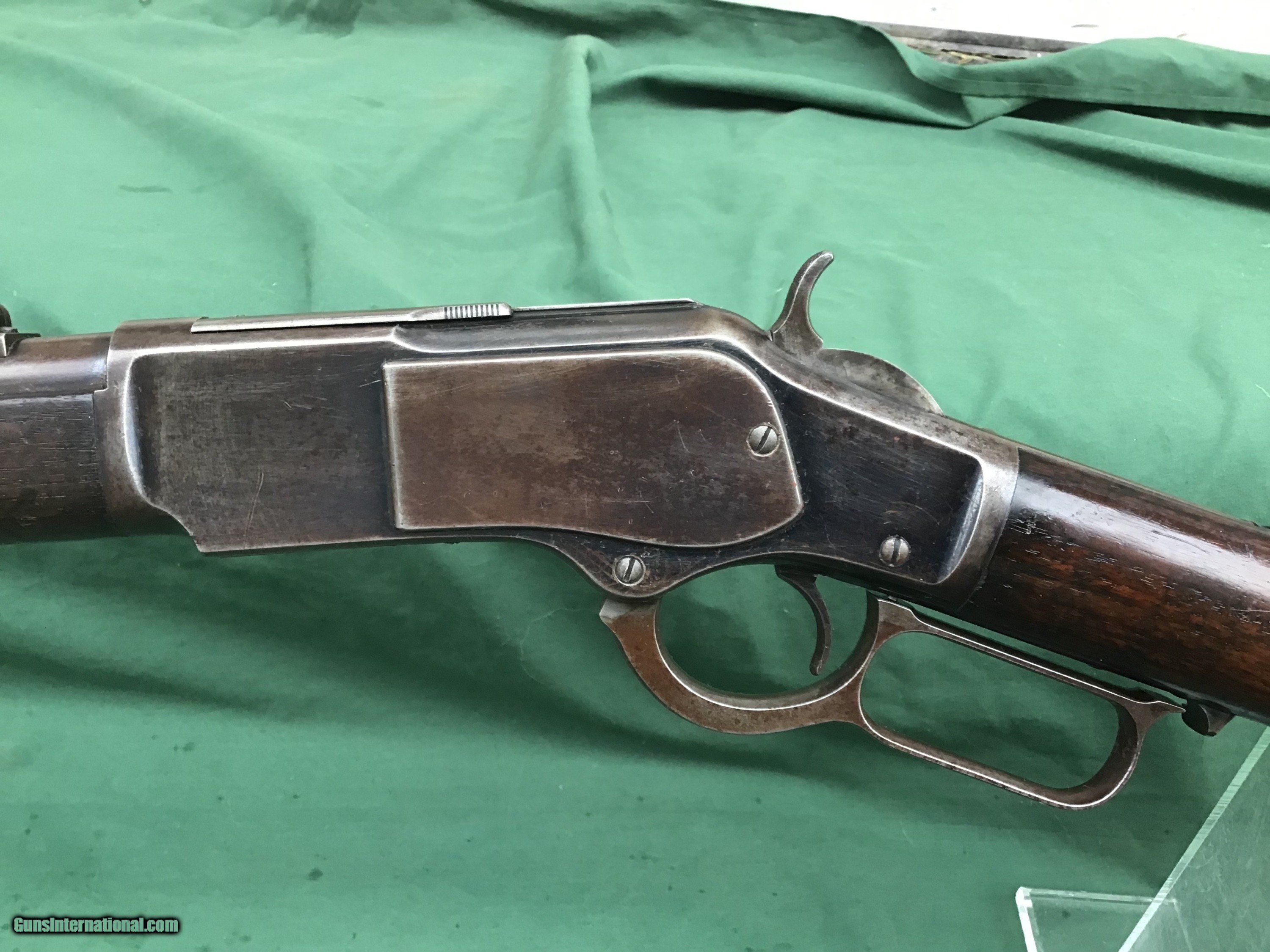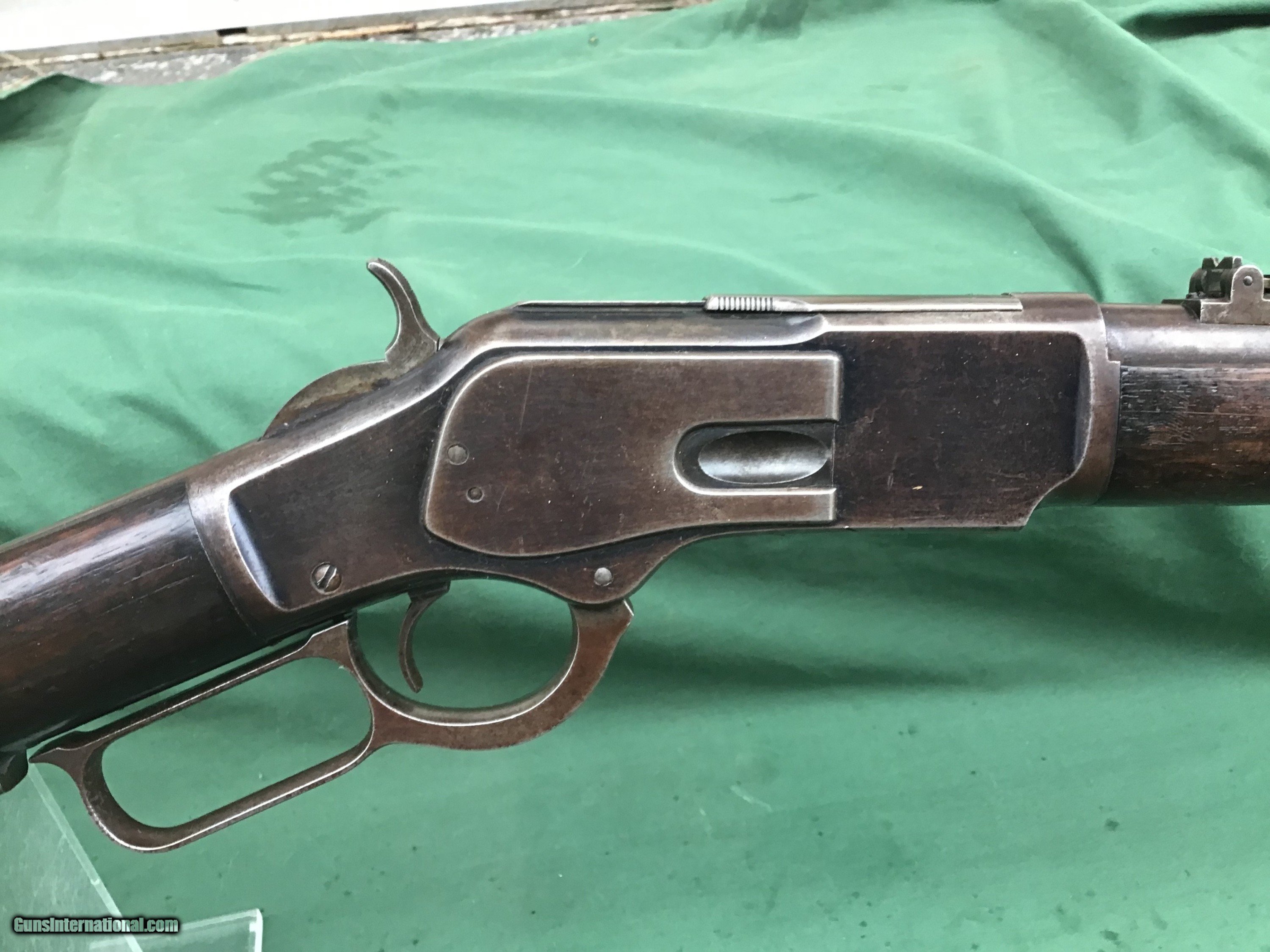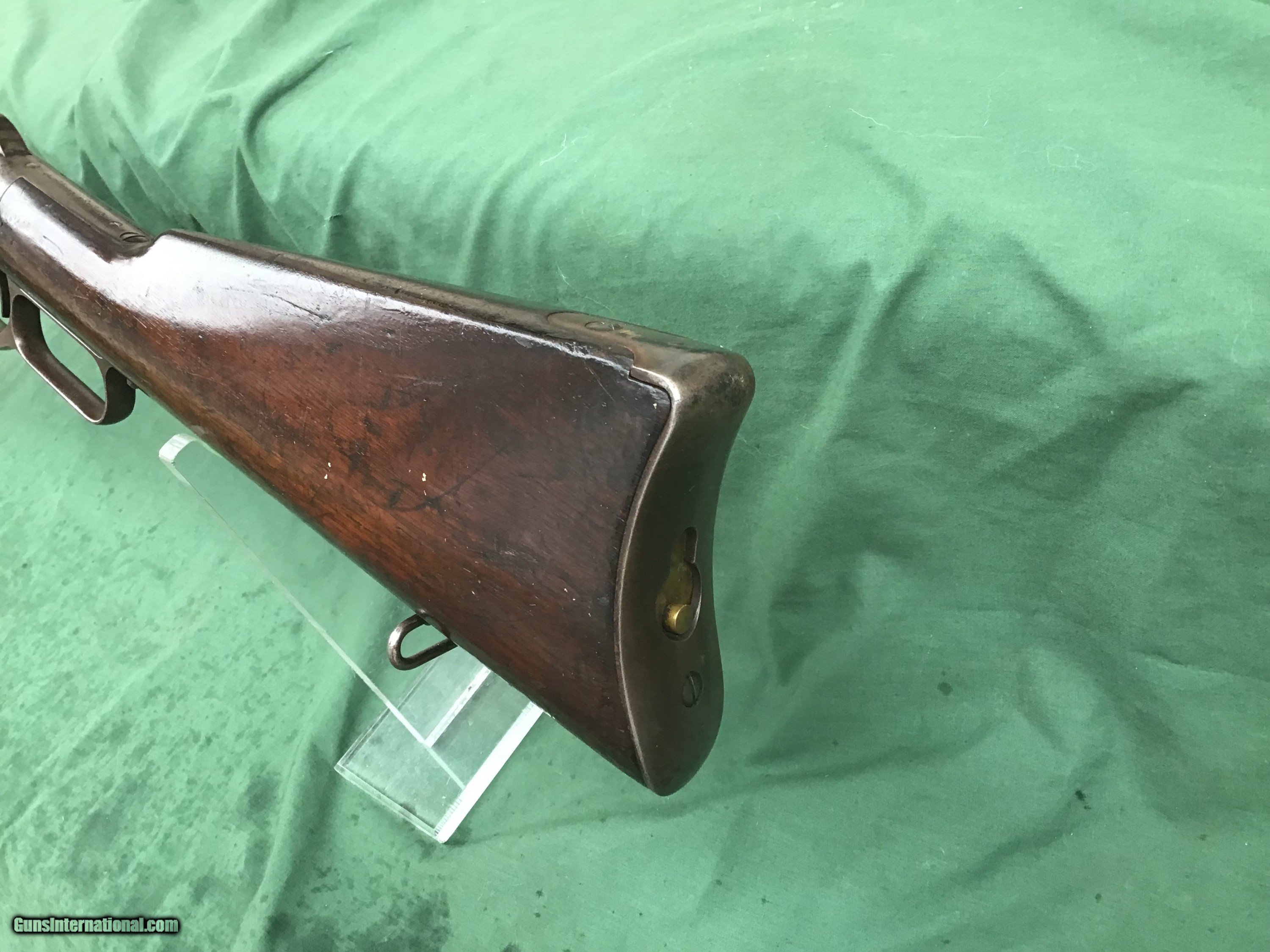 Description: Model 1873 Winchester Musket. 3rd model manufactured in 1888. 44-40 with 30" barrel. Original sights and great markings. Action functions smoothly. Very nice bore, I will rate it a 7.5 / 8 on a scale from 1 to 10. Barrel retains original blue in protected areas and the remainder a gray / brown patina. Receiver retains 55-60% of its original finish. Both forend and buttstock are in good condition showing normal handling marks. All original and in above average condition. Please feel free to ask questions. SOLD Antique: Yes |