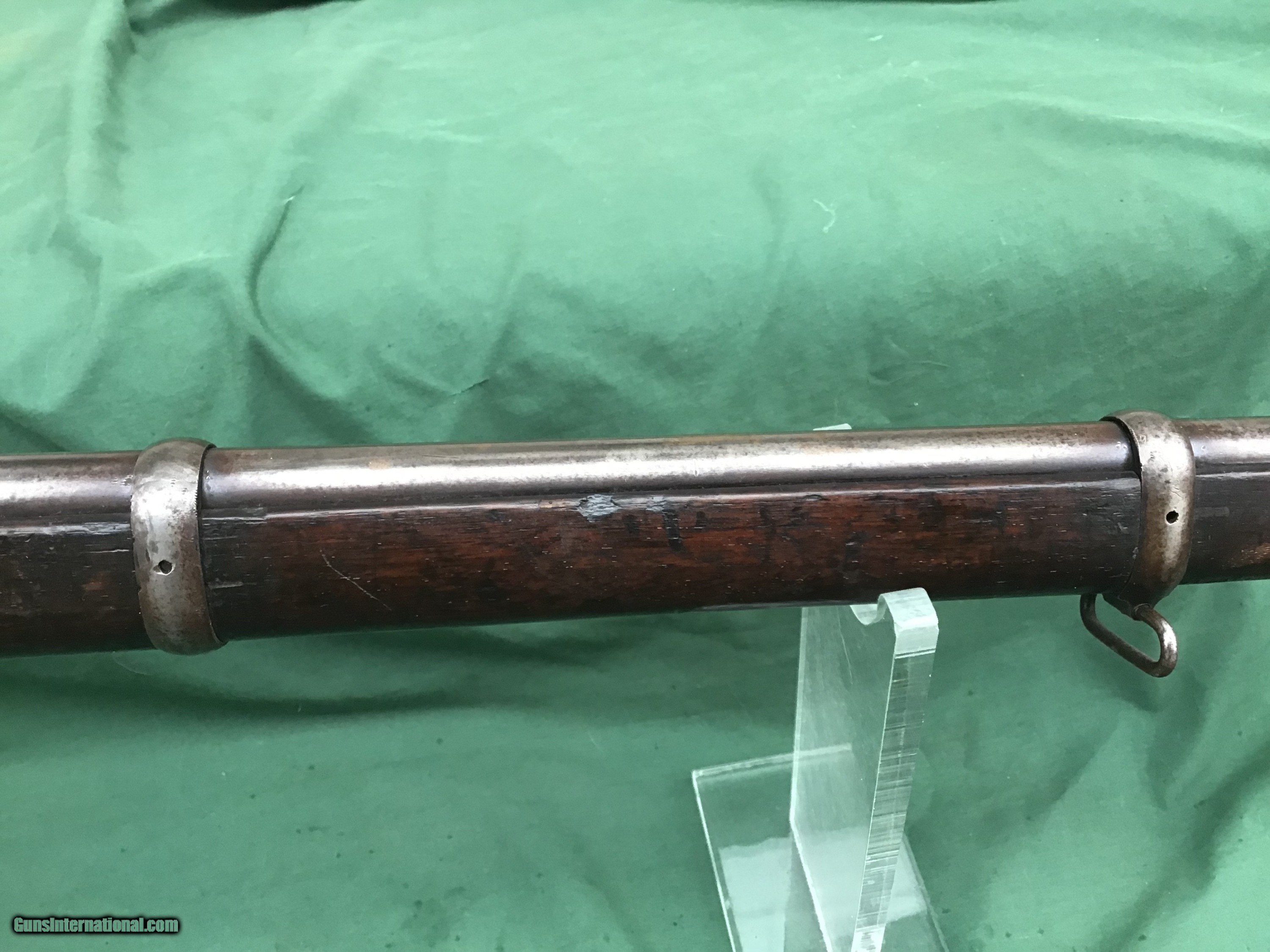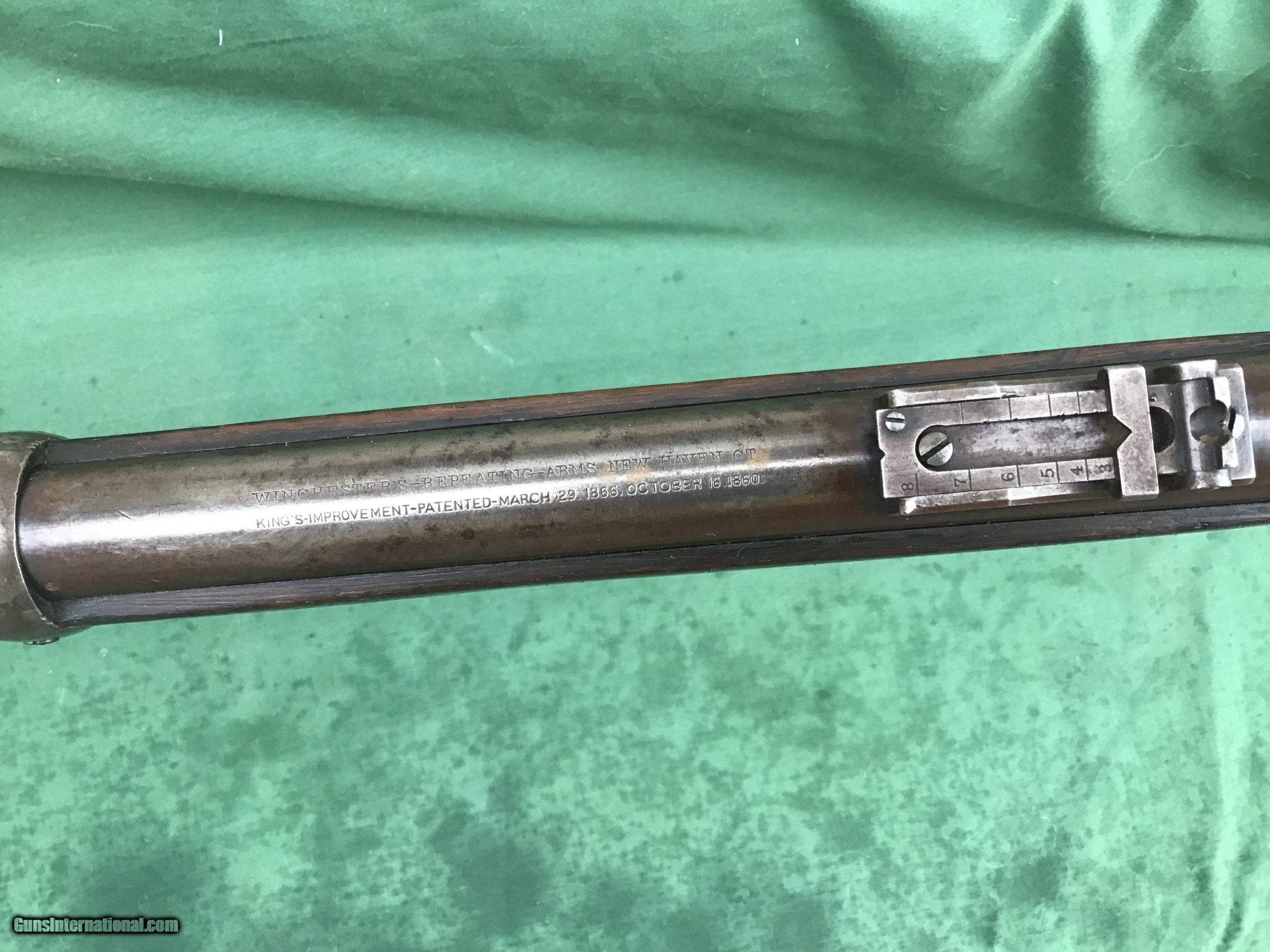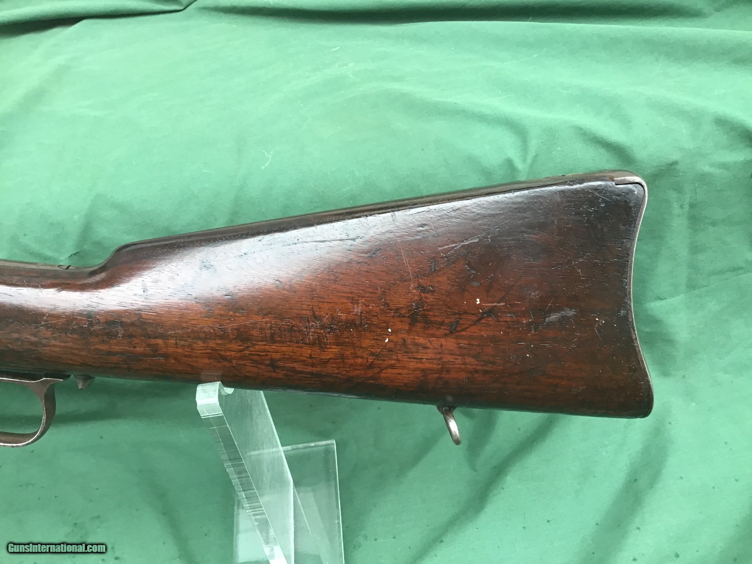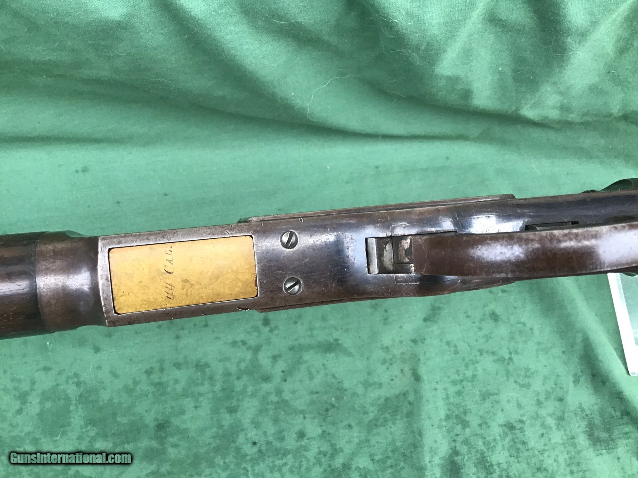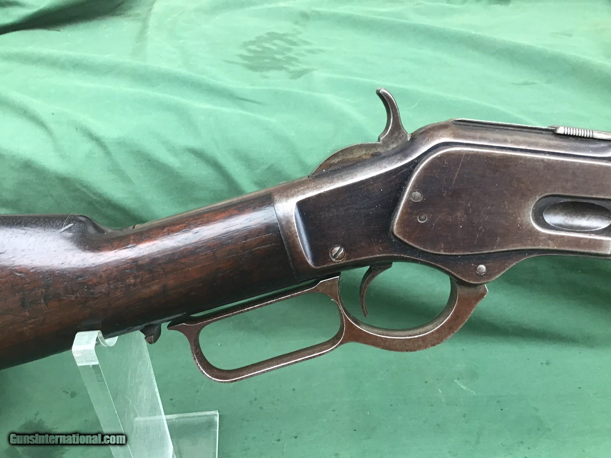 Description: Model 1873 Winchester Musket. 3rd model manufactured in 1888. 44-40 with 30" barrel. Original sights and great markings. Action functions smoothly. Very nice bore, I will rate it a 7.5 / 8 on a scale from 1 to 10. Barrel retains original blue in protected areas and the remainder a gray / brown patina. Receiver retains 55-60% of its original finish. Both forend and buttstock are in good condition showing normal handling marks. All original and in above average condition. Please feel free to ask questions. SOLD Antique: Yes |