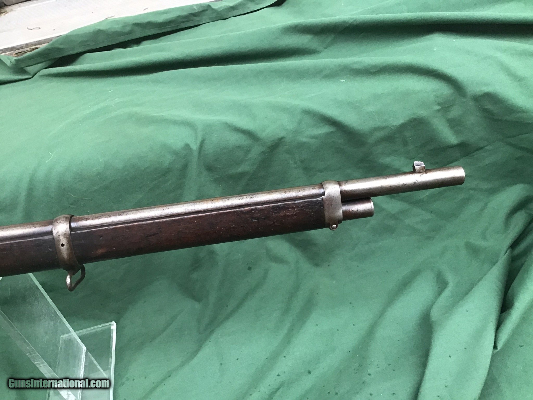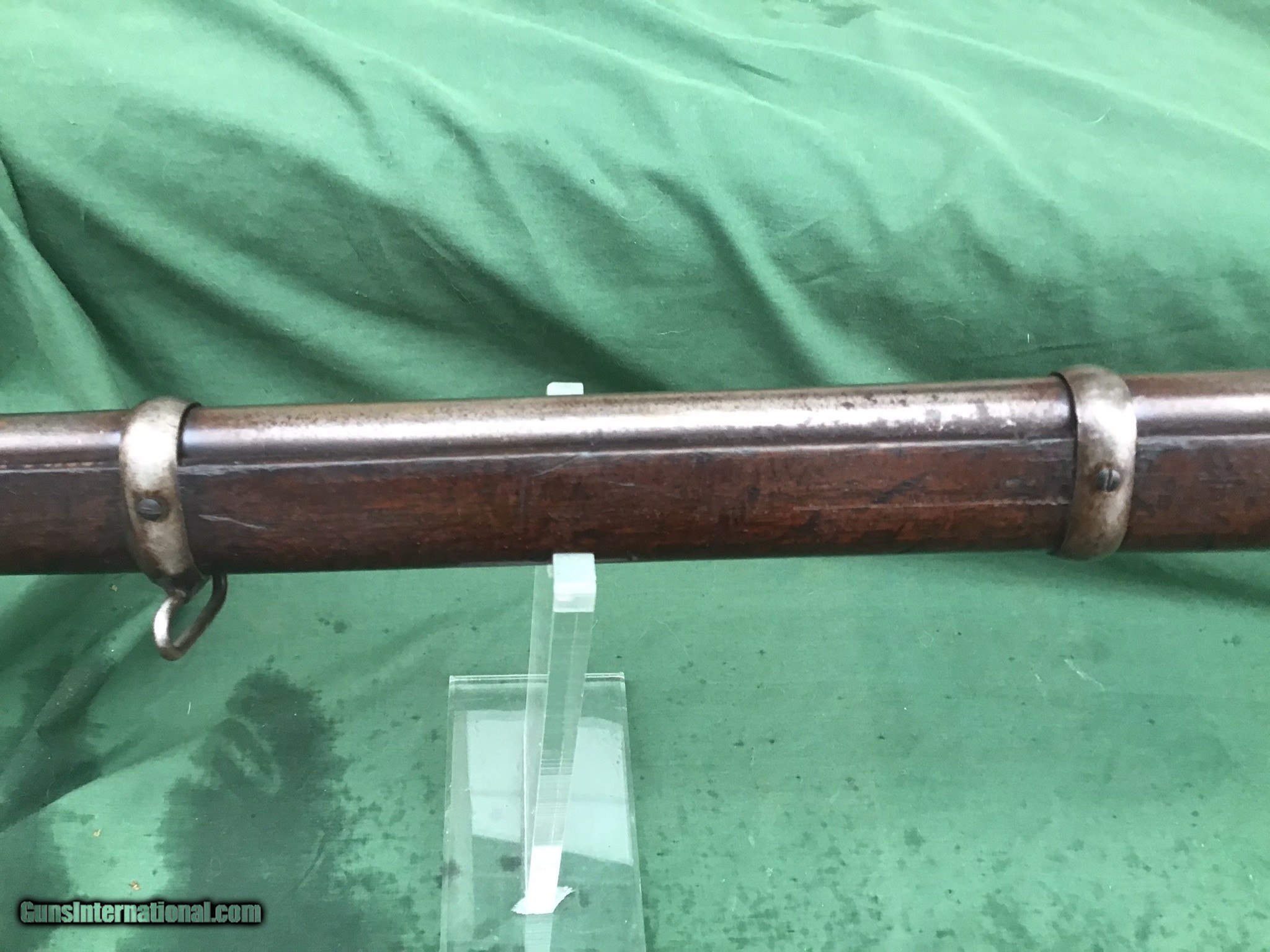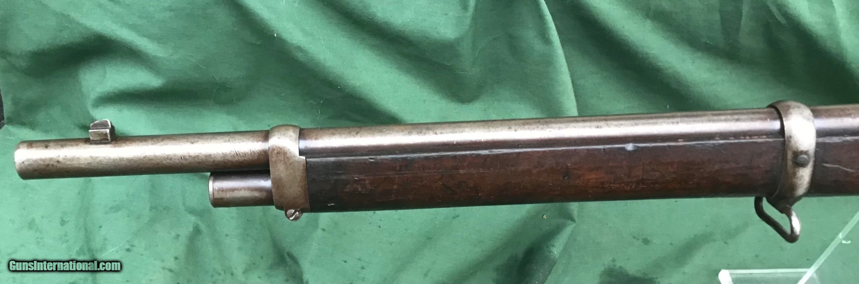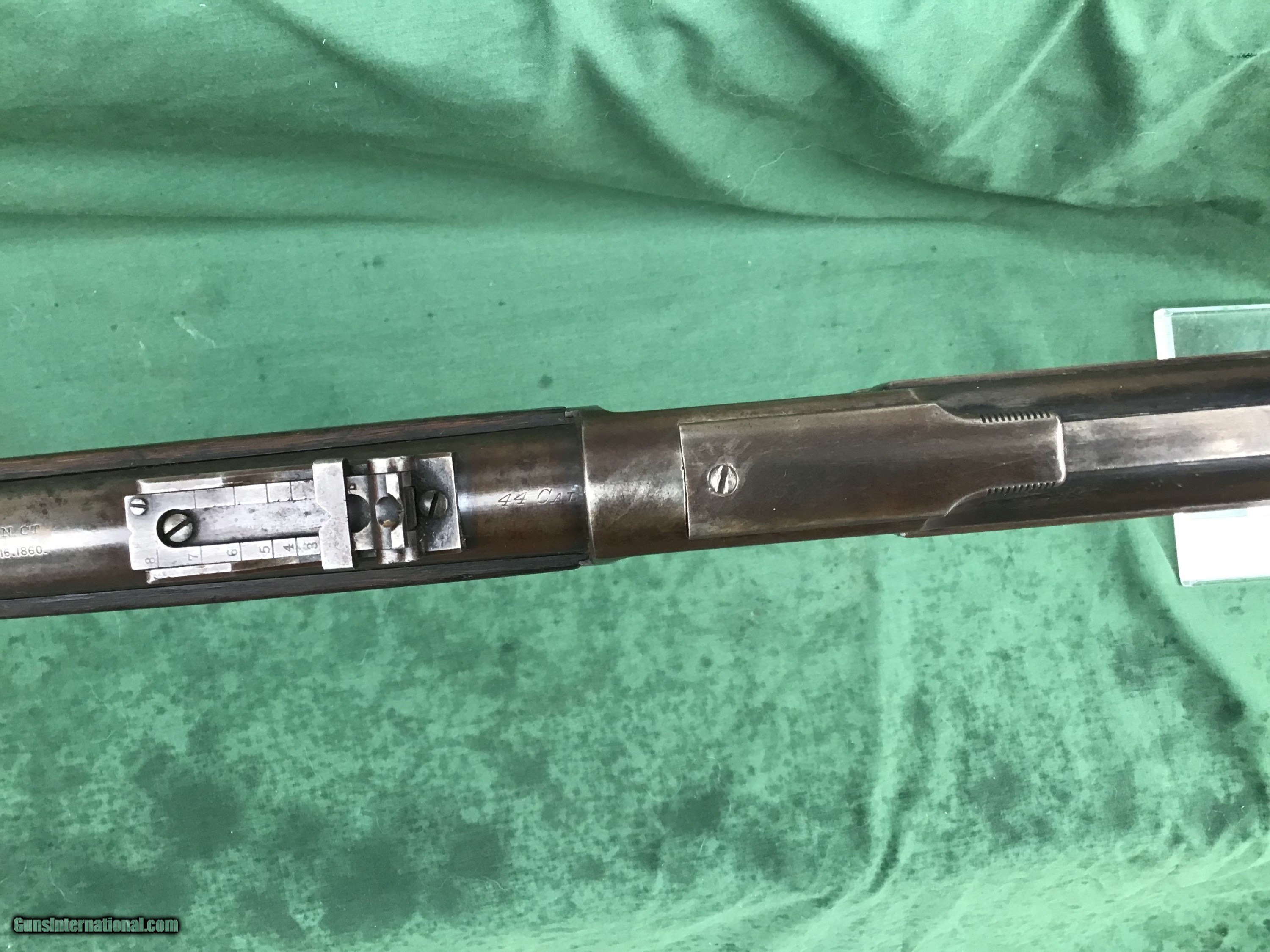 Description: Model 1873 Winchester Musket. 3rd model manufactured in 1888. 44-40 with 30" barrel. Original sights and great markings. Action functions smoothly. Very nice bore, I will rate it a 7.5 / 8 on a scale from 1 to 10. Barrel retains original blue in protected areas and the remainder a gray / brown patina. Receiver retains 55-60% of its original finish. Both forend and buttstock are in good condition showing normal handling marks. All original and in above average condition. Please feel free to ask questions. SOLD Antique: Yes |