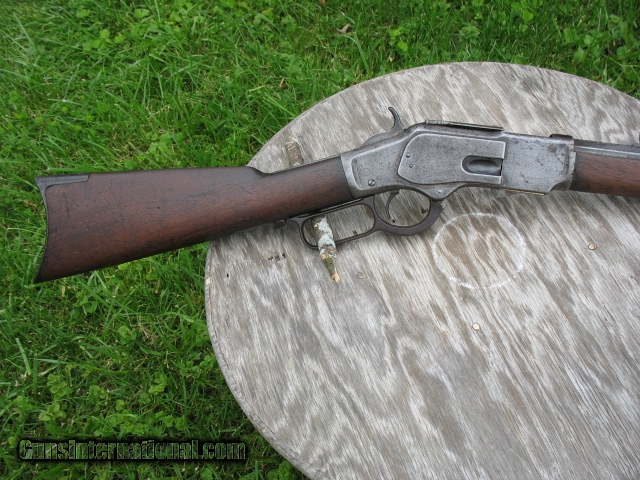 Description: SOLD....Antique 1873 Winchester 44-40 caliber and octagon barrel. Here is a pretty decent ole 1873 in the highly souhgt after 44-40 with an octagon barrel. It has the standard 24" barrel.. S/N 283802 and made in 1888. The bore is just about good. It does show some pitting from black powder but still shoots OK. NO rings or bulges. NO backed out primers or bulges cases. It shoots OK at close ranges but I would not take it to target match at longer ranges. It feeds, fires and ejects just fine. Hammer notches are perfect on half and full cock. Good strong springs throughout and no issues on the mechanics. The metal is a smooth medium gray to brown patina. NO piiting on the gun at all. Both front and rear sights are newer replacements but the dove tails have not been altered in any way so original sights can be installed if so desired. Still has the original dust cover that retracts with the lever throw and is still pretty tight . Most of these in this condition have been robbed of the dust cover but this one is still intact and functions fine. The barrel address markings are all very good but as you can see the upper tang and the caliber markings on the barrel are weak from 120++ years of honest wear. The markings on the brass carrier are weak also but mostly still visible. Just a honestly used ole 73. The wood is pretty good with the forearm showing a tight grain split on the left side from the forearm cap back about 4" but it is still tight. The right side of the forearm shows a sliver missing at the front about a 1/16th" deep and about an 1 1/4" long. NO other splits or cracks. The butt stock is very good with NO splits or cracks but shows a little shrinkage from drying out around the upper tang as you can see in the photo. This is just a pretty honest 73 but for the sights as mentioned. It shows very honest wear and use but absolutely NO abuse. A decent example of this famous and highly sought after configuration in a 73. A good ole 73 that you can take out and plink around with all you want. It does not need $300 to $400 worth of parts and labor to make function again as most of these 73's will need to get up and running. Priced as reasonable as it gets for an actually working 73 !!! I personally test fire all of these rifles before I list the for sale but I have to say I am not liable for anyone who shoots these ole guns without the proper ammo and proper knowledge of the use and firing of any antique firearm.... Call 765-728-8049 for more photos or any questions you may have. $50 insured shipping. Thank you for looking and please check out my other items listed by clicking on the link below and to the right of my description to see all Toms guns that I have for sale. SOLD Antique: Yes |