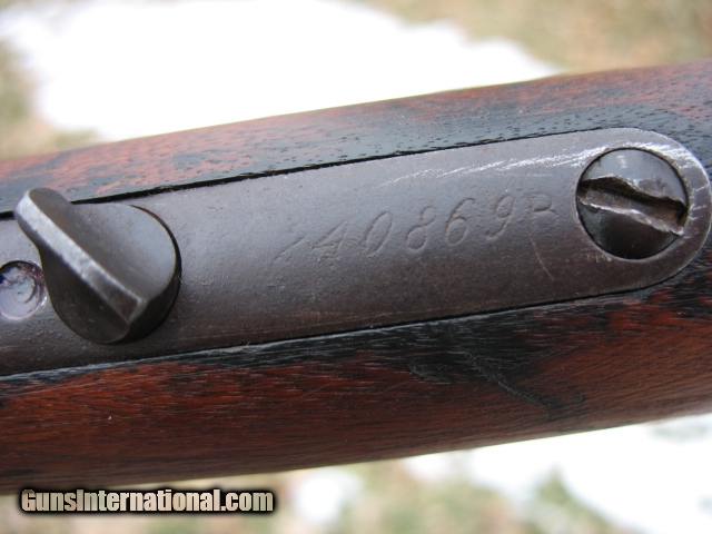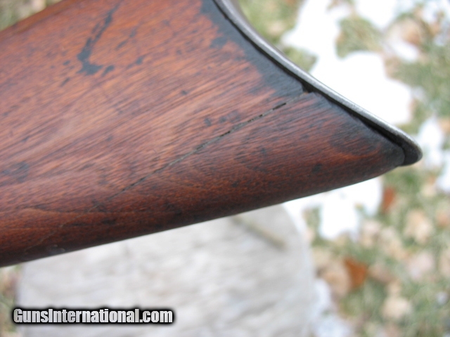Description: SOLD... Antique 1873 Winchester round barrel in 38-40 caliber. Here is a pretty decent entry grade shooter/collector at a reasonable price. Has the standard 24" round barrel. S/N 240869 and made in 1888. The bore is just about good. It does show some wear and some black powder roughness as is very common but has no rings or bulges. The rifling is visible all the way through. It is not pitted deep or craters and it still shoots straight. I have had worse bores than this in 38-40 caliber and they still shot just fine. I like the 38-40 over the 44-40 for just this reason. This caliber is just inherently accurate even with less than perfect bores. If you are a hand loader then the possibilities are endless to find a load this gun likes. Jacketed bullets offer even more accuracy with less then perfect bores also. The mechanics are excellent. It feeds, fires and ejects perfectly with no backed out primers or bulged cases. All the springs are tight and positive as are the hammer notches. The metal is an over all dark chocolate brown patina that has never been cleaned on or messed with. A previous owner has at one time lightly cleaned a little on the barrel address and the upper tang to make the markings stand out better as you can see in the photos. They did not clean the caliber markings on the barrel or the S/N on the lower tang as you can also see. The cleaning is very light and not aggressive or scratched into the metal with any thing abrasive as you can see. The caliber markings are worn off of the brass carrier and the barrel caliber marking is much better in hand than the photos show. It still has the original dust cover. It is loose as most you see and is best to retract it by hand so not to hang up on the bolt when it retracts. Just some very light roughness on the dust cover and a little on the top of the receiver from black powder flash.. The rest of the gun has no pitting and is smooth and never messed with. Has the original front and rear sights. Front sight has a silver blade style. The wood is average to good. The forearm is nice with no cracks or splits. The butt stock has been lightly cleaned at one time as it is lighter in color than the forearm but still fits very well to the metal. It has had a pretty good sized chunk that has been knocked off and repaired at the toe of the stock as you can see in the photos. It is the original piece of wood and has simply been glued back on. It is a solid and pretty good repair that would last with normal use for many years to come. Nothing fancy here but an honestly used ole 73 with a shootable bore that is priced about as cheap as you will find that does not need $300 to $400 worth of parts and repairs. As you know, all of my Winchesters are ready to shoot as I go through them and test fire every one of them before I list them for sale. Call 765-728-8049 with any questions or more photos. $50 shipping insured mail. I don’t think you will be disappointed in this one for the price. SOLD Antique: Yes |
