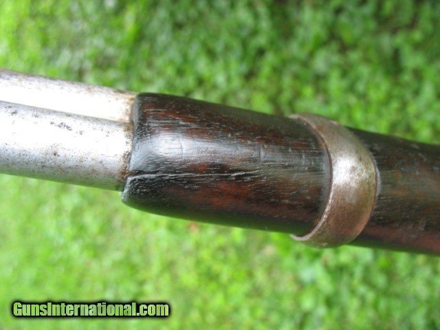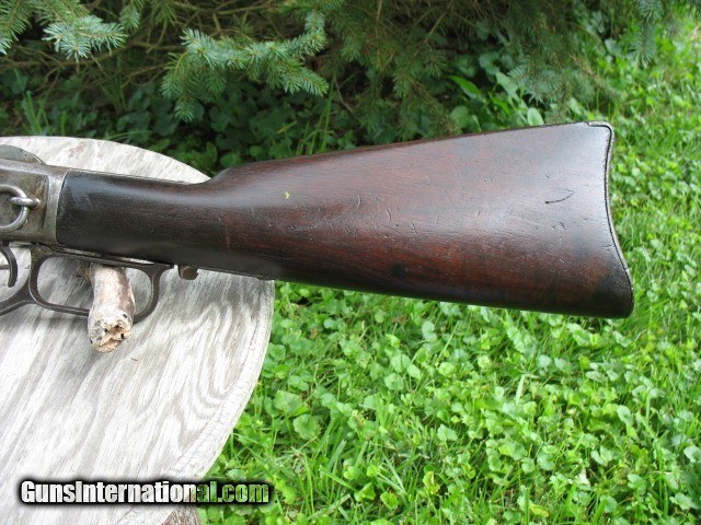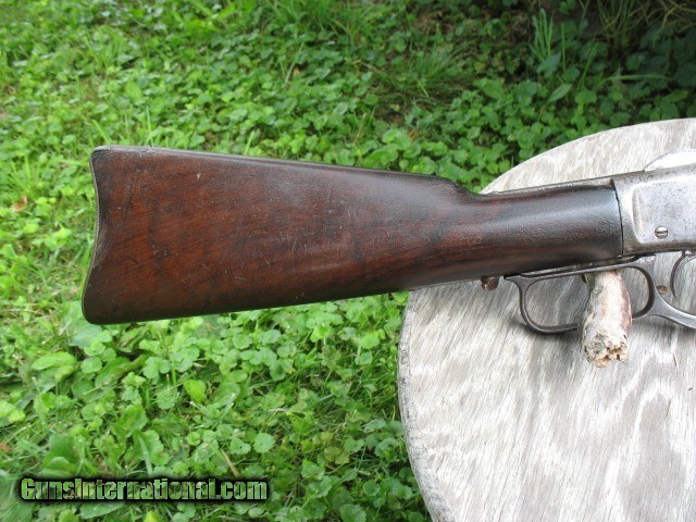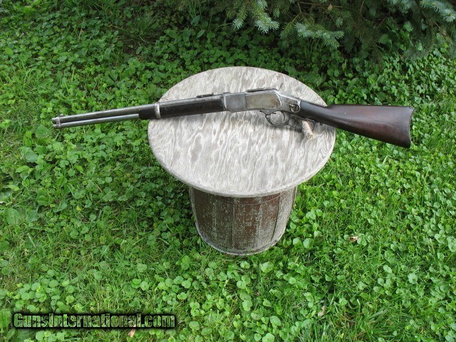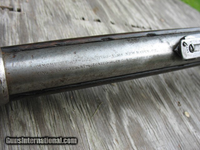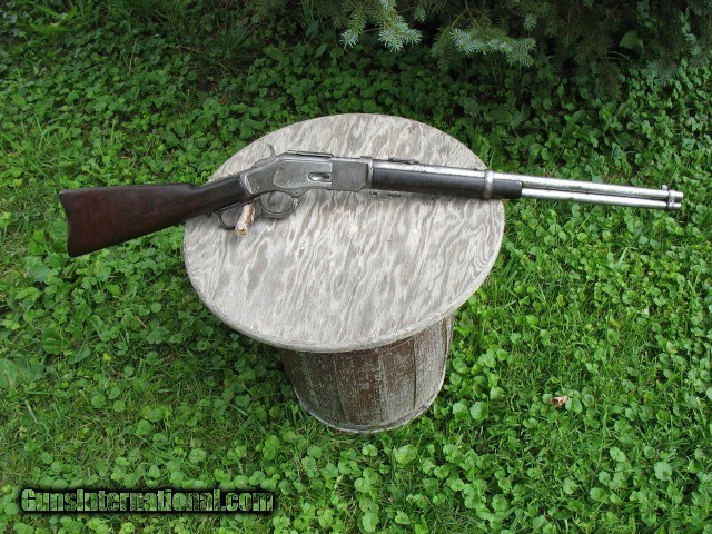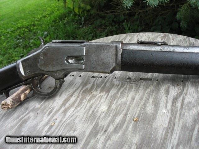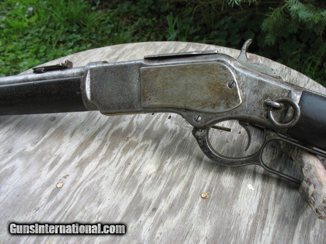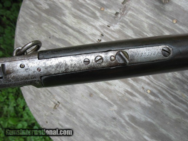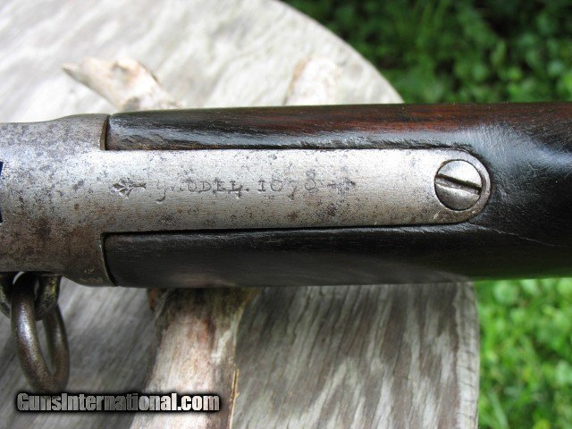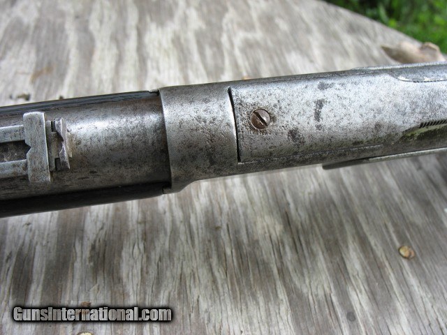 Description: SOLD...Special order nickel plated antique 1873 Winchester saddle ring carbine. A most honest 1873 SRC 100% original and complete. Factory letter states nickel plated. Caliber is 44-40. Standard 20” barrel. S/N 115198 so it is a fairly early 3rd model MFG in 1883. Letter states in warehouse March 7th 1883 and left warehouse the very next day. This ole 73 has seen some used but never abused. The bore is very nice with sharp clean rifling all the way through and shows just frosting and minor roughness. NO big pits or craters and NO rings or bulges. The bore on this gun is well above average for a SRC as most of these are rougher than a cob. The over all finish of this gun shows some original nickel finish remaining. The barrel and mag tube has no finish remaining. The receiver has very good traces of nickel on the side plates and around the side plates where protected. The hammer has about 75% nickel. The lever has traces of nickel also. The brass carrier still has some flakes of nickel remaining.. I have had this gun apart for cleaning and inspection and all the internal parts are nickel plated as well. The inside of both side covers has most all the nickel finish as does the carrier lever, ect.. The balance of the gun is a cleaned gray color with some scattered pin prick to mild pitting but nothing deep or too bad.. The mechanics are excellent. It feeds, fires and ejects just fine.. No backed out primers or bulged cases. The gun is still accurate for a 44-40.... Still retains the original rear SRC sight marked 1873. Original front sight.. . Original dust cover that still retracts with the lever throw and is still reasonably tight. Original saddle ring and stud. The screw heads are still very good and sharp and nothing burred up but some do show some minor turning. All are very serviceable. The wood shows use but not abused. The forearm fits tight, full and proud to the receiver but is just even at the bottom from carry and saddle wear. Nothing underside, sanded on or messed with. It does show the typical grain split on the very front of the forearm where the wood is thin. {see photos }.. This is very common on this model. Shows some common and minor dings and scratches. Nothing detracting at all.. The butt stock fits tight and mostly even with the metal but a little shy at the upper tang from normal wear and shows a small sliver out on the upper right tang as you can see in the photos. Dings and scratches also and a very small and tight grain split off of the upper rear tang as you can see in the photo of the upper tang markings. It is less than one inch long and really not worth mentioning but I want to write full and detailed descriptions..The butt plate is pitted and I can send photos of this or any other area you might want to see. The wood at the butt plate is still full and proud to the butt plate.. No chunks or slivers missing in the toe area. Not bad wood at all but does show some use around the upper tang as you can see. The markings are very good and all readable but the upper tang marking is a little light and shows wear from handling. Barrel address markings are very good and all in tact. NO caliber markings on the barrel or brass carrier as this is totally correct for early 3rd models. I have had these 73's up into the 118,xxx range with no caliber markings and all is correct. You do see some of these 73's with special order nickel plating as it was thought to hold up to the elements and black powder better than the blue ones. It probably did do it's job as intended but nickel finish does wear. Makes you wonder what this gun would look like if it had not been nickel plated!!!! All in all, this is not a bad ole SRC. Has a very nice bore and traces of finish. It has been used but not abused and it still shoots and functions great. . It is a most honest gun and not messed with or altered.. Most of these SRC have seen a very hard life and tremendous amounts of hard use so I think I have this one priced very reasonable as per condition.. Factory letter included of course. Call 765-728-8049 with any questions or more photos. $50 insured shipping. Thank you for looking and check back often.. SOLD Antique: Yes |