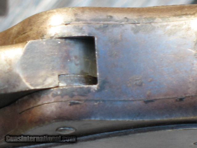 Description: SOLD..A decent Antique 1873 Winchester. In the very desirable 44-40 caliber. Has the standard 24" round barrel. S/N 113811 so it is a very early 3rd model. This gun also retains some of the 2nd model features including no caliber markings on the barrel or the brass carrier. These features are absolutely correct for this S/N range. The bore is very fine with nice strong rifling and no major pitting, rings or bulges. Just has some very light roughness from shooting black powder but no craters or breaks in the rifling. Very fine bore here and I am sure with some shooting and scrubbing it will clean up even better. Mechanics are excellent.. Strong springs throughout with no dropping lever. Hammer notches are excellent and hold on half and full cock with no problems.. It shoots great and is still accurate. It feeds, fires and ejects with no problems. No backed out primers or bulged cases. The metal is an over all smooth medium dark brown patina that has never been cleaned on or messed with. Traces of blue on the bottom tang in the protected areas and a little case coloring on the lever where it has been protected also. No pitting on the gun anywhere. One burred up lever spring screw on the bottom of the receiver {see photo} and one burred up upper tang filler screw {see photo}. In no way do either effect the functioning of the gun at all. Barrel address is a little weak in some places from honest wear but all is readable. Upper tang markings are excellent as is the S/N on the lower tang. The rear sight is a newer replacement and the front sight is a period replacement with a brass blade. The forearm does have a small sliver out at the top on the left side behind the forearm cap. It measures about 1" long and 3/16" deep and you can see in the photo. Another much smaller sliver on the right side same location. It measures 3/4" long and 1/16" deep. Has a grain split on the bottom of forearm but it is solid with no signs of any repairing. The forearm is solid and stable all around. The butt stock is very good with no splits or cracks and no repairs. Never sanded or cleaned on. It fits perfectly tight to the metal all around with no gaps. Still sits proud to the metal on the bottom tang and the receiver. All in all not a bad ole 73. Still has a very nice bore, smooth metal and is in the very desirable caliber. I have this one priced very reasonable as it does have a couple warts but still way better than most you will find in this price range that works and functions like it should and not needing any costly parts or repairs. $50 insured shipping. Call me at 765-728-8049 or e-mail with any questions or more photos. I will not be held responsible for any miss use or any lack of knowledge of loading or shooting by the buyer of any antique firearms I sell. SOLD Antique: Yes |