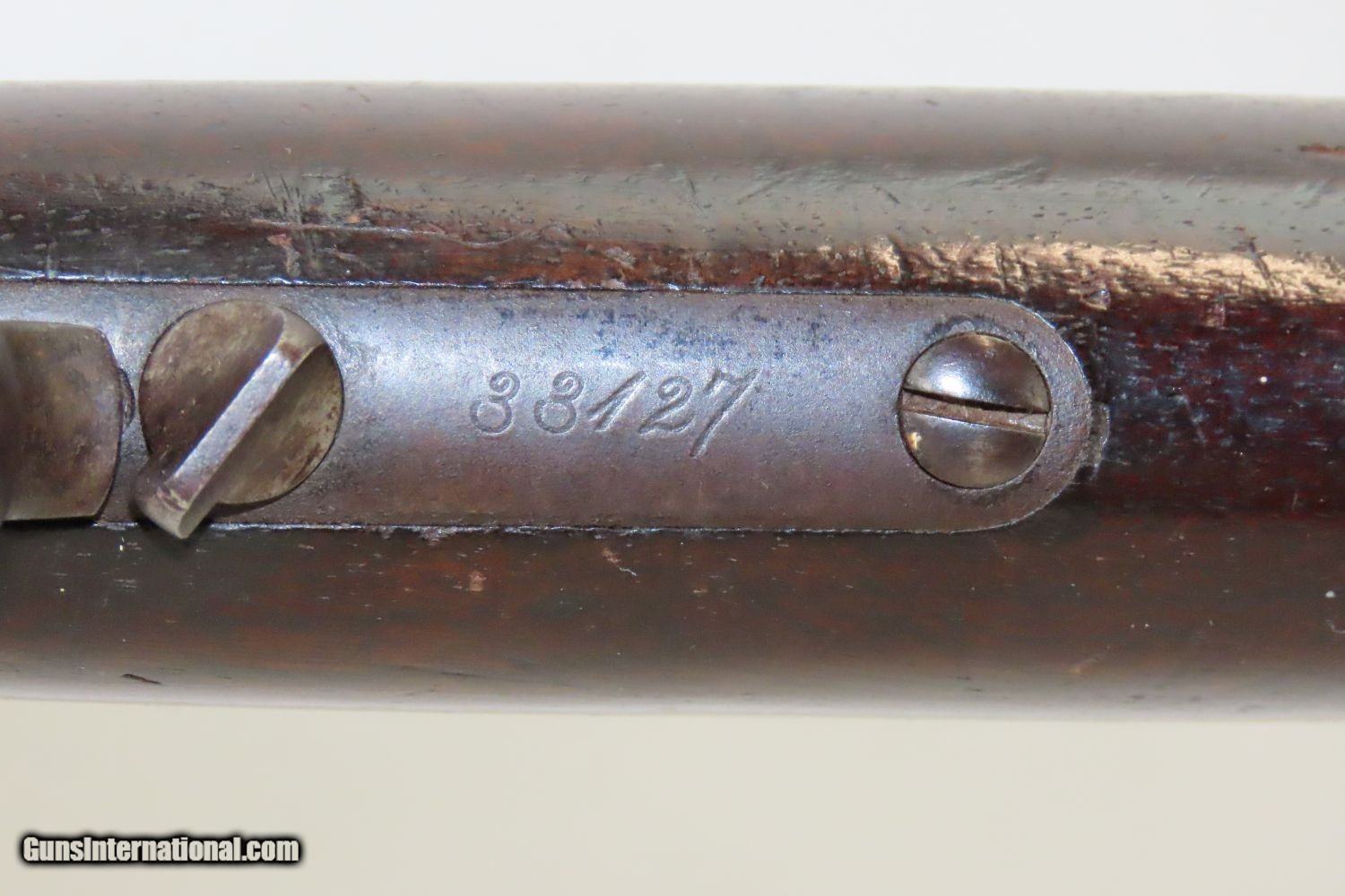 Description: Antique WINCHESTER Model 1873 Lever Action .44 Caliber WCF Repeating RIFLE EARLY SECOND MODEL Made in 1879 and Chambered In .44-40! Here we present an antique Winchester 1873 Lever Action Rifle in .44-40 WCF, made in 1879 in New Haven, Connecticut. The Model 1873 is one of the most iconic of American rifles. Given the moniker “The Gun that Won the West”, the 1873 was there during the Indian Wars and Range Wars of the late 19th century. Cowboys, Natives, settlers, miners, law enforcement, express companies and hunters all found these rifles and carbines useful tools. These rifles made excellent companions to revolvers at the time as they were chambered for the same ammunition, meaning that the user only had to keep one type to feed both guns. One could easily defend the homestead and provide for his family with this versatile weapon. The Model 1873 really was the quintessential Western rifle, handily outpacing all the muzzle-loading and Civil War surplus guns that also made their way to the frontier. Still an icon in the modern day, it was manufactured between 1873 and 1923. It was originally chambered for the .44-40 cartridge, which was the first centrefire cartridge and which became immensely popular. The 1873 was later produced in .38-40, .32-20, and .22. The Model 1873 was produced in three variations: a 24-inch barrel rifle, a 20-inch barrel carbine, and a "musket", which was aimed at military contracts and only made up less than 5% of production. In all, over 720,000 Model 1873s were produced. The overall condition is very good. The action is strong. The bore is bright and remains in good shape. All marks are clear and legible. The finish on this example is maturing to a pleasing brown patina. The stock is solid. This is a great example of a second model. It was used but remains in remarkable shape after 140 years! Own the original! This is a legitimate antique and not a reproduction. Barrel is 24 inches. Caliber: .44-40 Winchester Center Fire Overall condition as seen in photos. Very Fast. Very Safe. FREE SHIPPING WORLDWIDE. Delivered directly to your door by express mail! Guaranteed AUTHENTIC & Includes CERTIFICATE OF AUTHENTICITY. ancestryguns $4645 #201461 SOLD Antique: Yes |