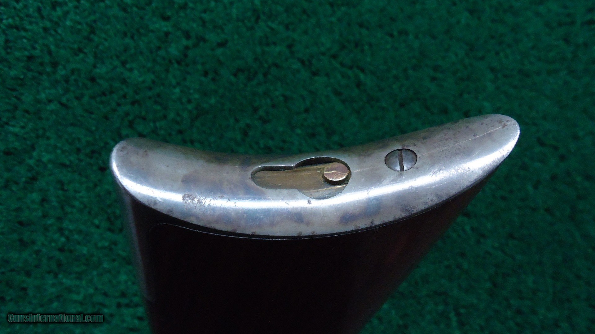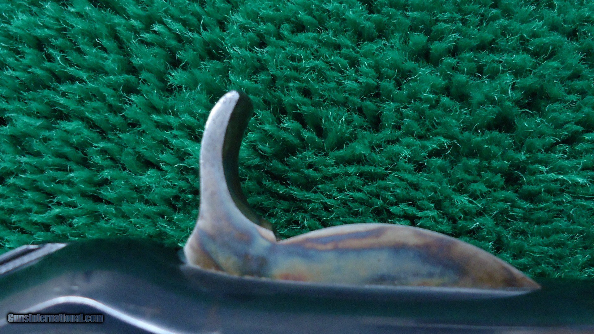 Description: Standard 24 inch octagon barrel chambered in 44 WCF caliber with a bright shiny bore. Barrel and full length mag tube retain nearly all of the original bright blue. Sharp corners and crisp markings. Original sights include a German silver blade front and a Winchester sporting rear. Receiver has most all of it's original blue. Tight fitting dust cover has thinning blue. Loading gate has bright fire blue. Hammer and lever retain good case colors with some more vivid in protected areas. Crescent rifle style buttplate also shows good color. Walnut stocks are in very good condition while retaining most varnish. Crisp action. Copy of a factory letter verifying configuration. This is a fantastic example of a beautiful 3rd Model 1873 rifle in the desirable 44-40 caliber made in 1889. Hard to improve upon. Leroy Merz Antique Firearms specializes in antique and vintage Winchesters and other fine American firearms. Since 1965 Mr. Merz has taken part in the world of firearms and has been a contributor to many well known reference books. We have hundreds of additional guns in every price range at our home online. Search for Merz Antiques in google. SOLD Antique: Yes Rifle Caliber: .44-40 Winchester |