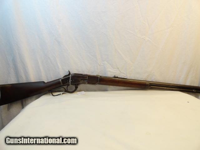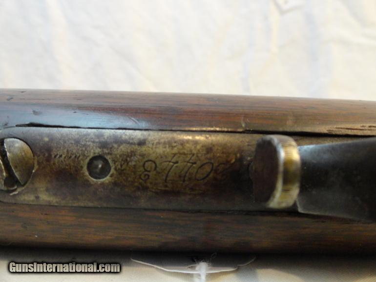 Description: Here is a very rare fine condition First Model 1873 rifle in 44-40 caliber. It is a standard rifle with 24" round barrel. First model thumb print dust cover with cut in rail. Barrel and tube are a nice clean and smooth blue brown while receiver is basically the same with nice blue brown finish remaining at least 60% coverage. Excellent stocks fit tight as glove and proud to metal having never ever been touched up. Excellent shiny bore. Works like new. Most of the fire blue still on loading gate. Far, far above average condition. SOLD Antique: Yes Manufacturer: Winchester Model: 1873 Serial Number: 20443 Condition: FINE Bore Condition: fine & shiny Barrels: 24" round Manufacture Date: 1877 |