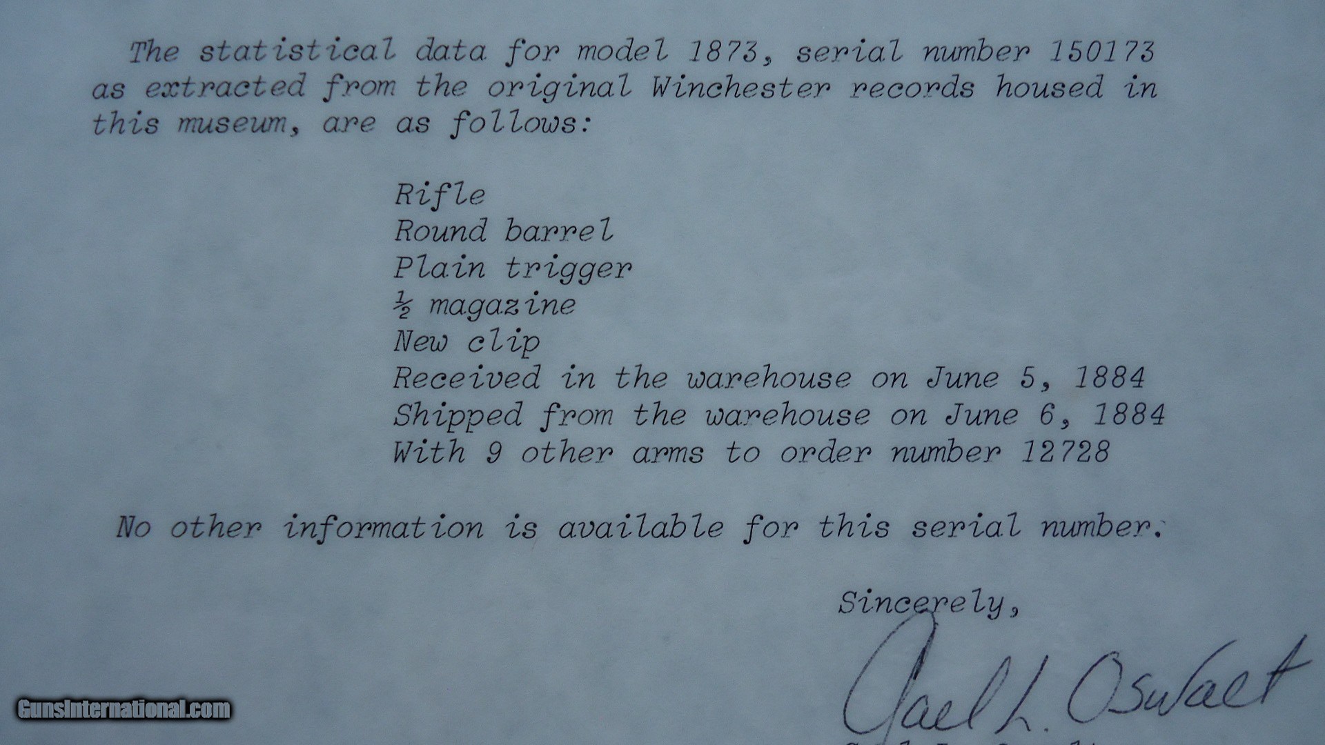 FINE WINCHESTER MODEL 1873 RIFLE IN 44 CAL