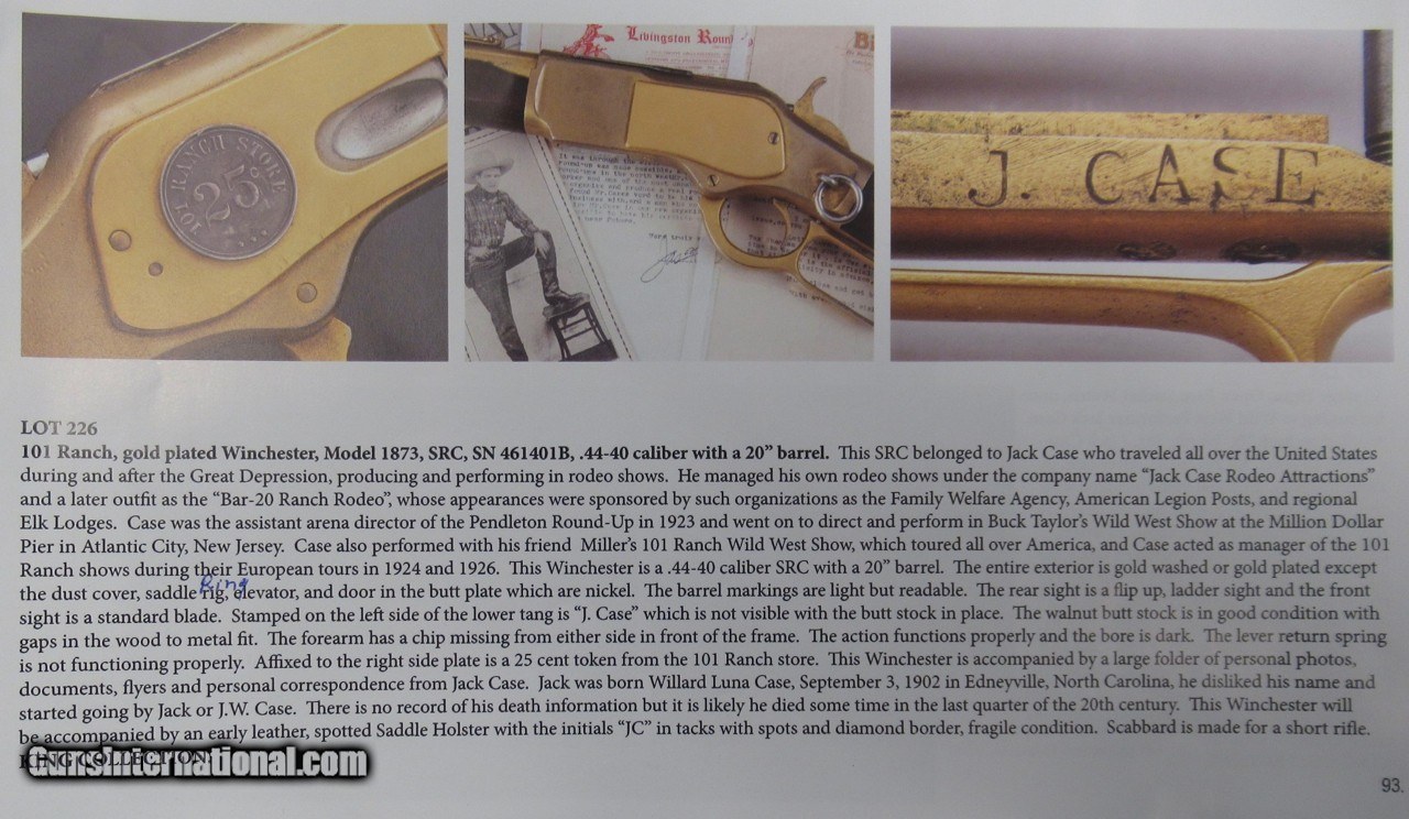 JACK CASE 101 RANCH GOLD PLATED WINCHESTER 1873 SADDLE RING CARBINE from COLLECTING TEXAS – COMES with VINTAGE POCKET WATCH
