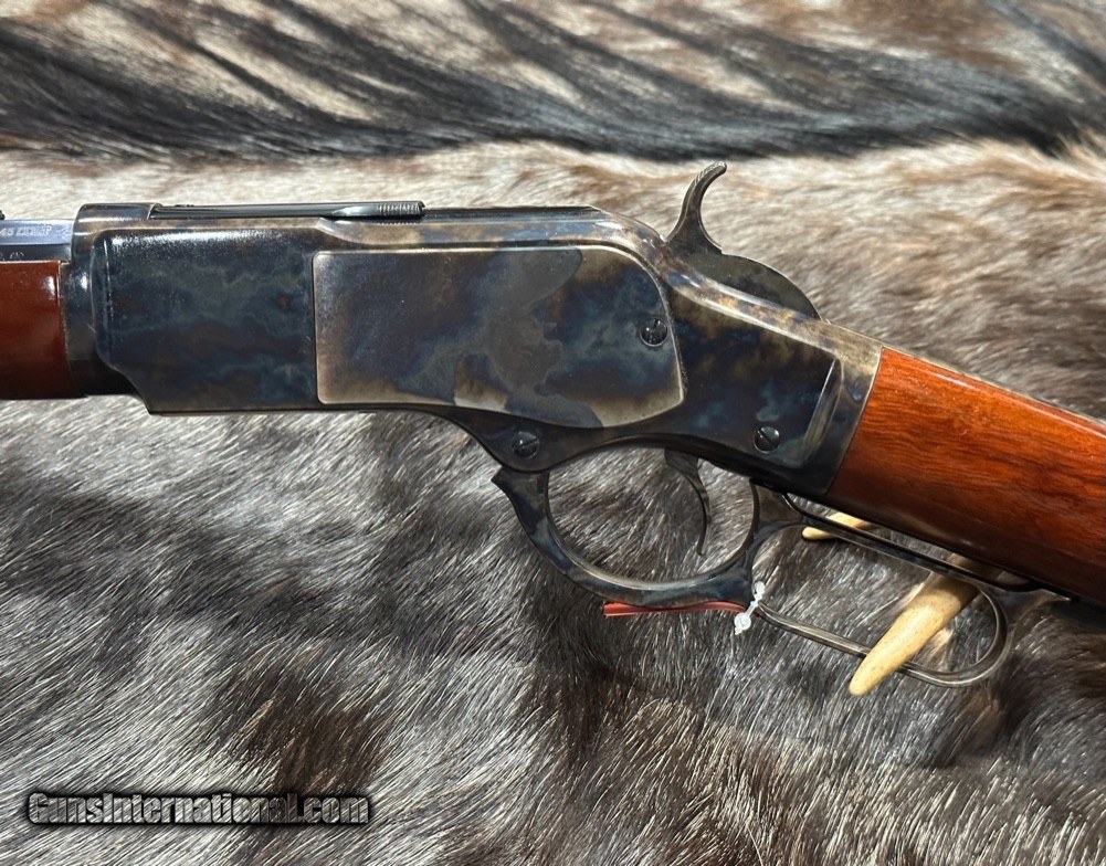 Description: NEW 1873 WINCHESTER SPORTING RIFLE WITH STRAIGHT STOCK, 20" BARREL, IN 45 COLT BY UBERTI - LAYAWAY AVAILABLE UNLIKE OTHER SELLERS, JD OUTFITTERS DOES NOT DROP-SHIP FROM A THIRD-PARTY WAREHOUSE OR USE STOCK OR GENERIC PHOTOS. THE RIFLE YOU SEE IS IN INVENTORY, READY TO SHIP, AND IS THE RIFLE YOU WILL RECEIVE! Features Of This GREAT Lever Action Rifle Include: