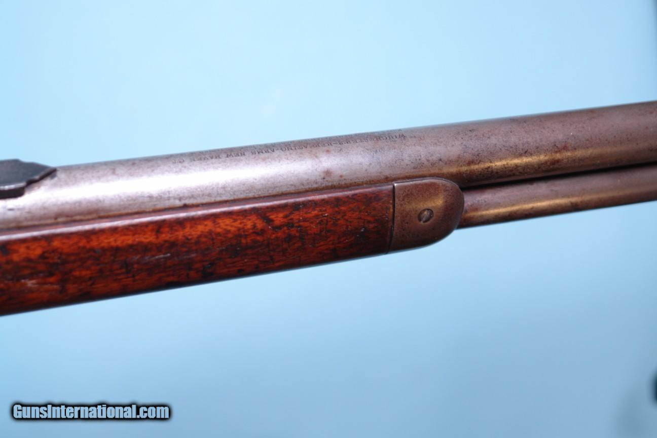 Description: ORIGINAL ANNIE OAKLEY/FRANK BUTLER OWNED AND USED WINCHESTER 1873 LEVER ACTION .22 RF CAL. RIFLE. Best documented and previously unknown rifle used by Annie and her husband Frank Butler during the late 1800’s and early 1900’s including when they lived in South Orange and later in Nutley, New Jersey while performing with the Buffalo Bill Wild West Show internationally as well as performing in other events closer to home. The nearby events included numerous shooting demonstrations held at the Steel Pier in Atlantic City, New Jersey and the Smith Gun Club in Newark, New Jersey. One of their best friends at the time and for many years after was fellow Smith Gun Club member Louis Daum of New Jersey to whom Frank gifted Winchester model 1873 22rf caliber rifle serial number 308616B as a token of their friendship. The rifle was seen by Mr. Daum being used by both Annie and Frank on numerous occasions during demonstrations at the Smith Gun Club. Attested to in a notarized letter dated August 27, 1957 from Mr. Daum’s Grandson, Mr. Charles T. Day III to whom it descended it states “THIS RIFLE WAS LEFT TO ME BY MY GRANDFATHER, MR. LOUIS DAUM, TO WHOM IT WAS GIVEN BY MR. FRANK BUTLER, HUSBAND OF ANNIE OAKLEY/THE RIFLE WAS USED BY HER AND MR. DAUM SAW HER USE IT ON SEVERAL OCCASIONS DURING SHOOTING DEMONSTRATIONS SHE GAVE AT THE SMITH GUN CLUB, THEEN LOCATED IN NEWARK, N. J.”. The letter further states “THERIFLE WAS GIVER TO MR. DAUM ABOUT 1912. MR. DAUM WAS A PERSONAL FRIEND OF THE BUTLER’S.” The rifle was sold by Mr. Day in 1957 to collector-dealer Gedney Godwin of West Chester, Pennsylvania. This rifle was obviously one of Annie and Frank’s favorites showing the long use in the very handsome well used condition it is in today. Not a fancy gun presented to them as so many were but one of the only guns known actually used by them in their performances over the years. Additionally it is one of the best documented Frank Butler and Annie Oakley guns attested to as having been seen in use in their performances on “SEVERAL OCCASIONS” indicating it was one of the Butler’s most important ones and frequently shot. Wonderful and historic in every respect. Price on request SOLD Rifle Caliber: .22 Short |