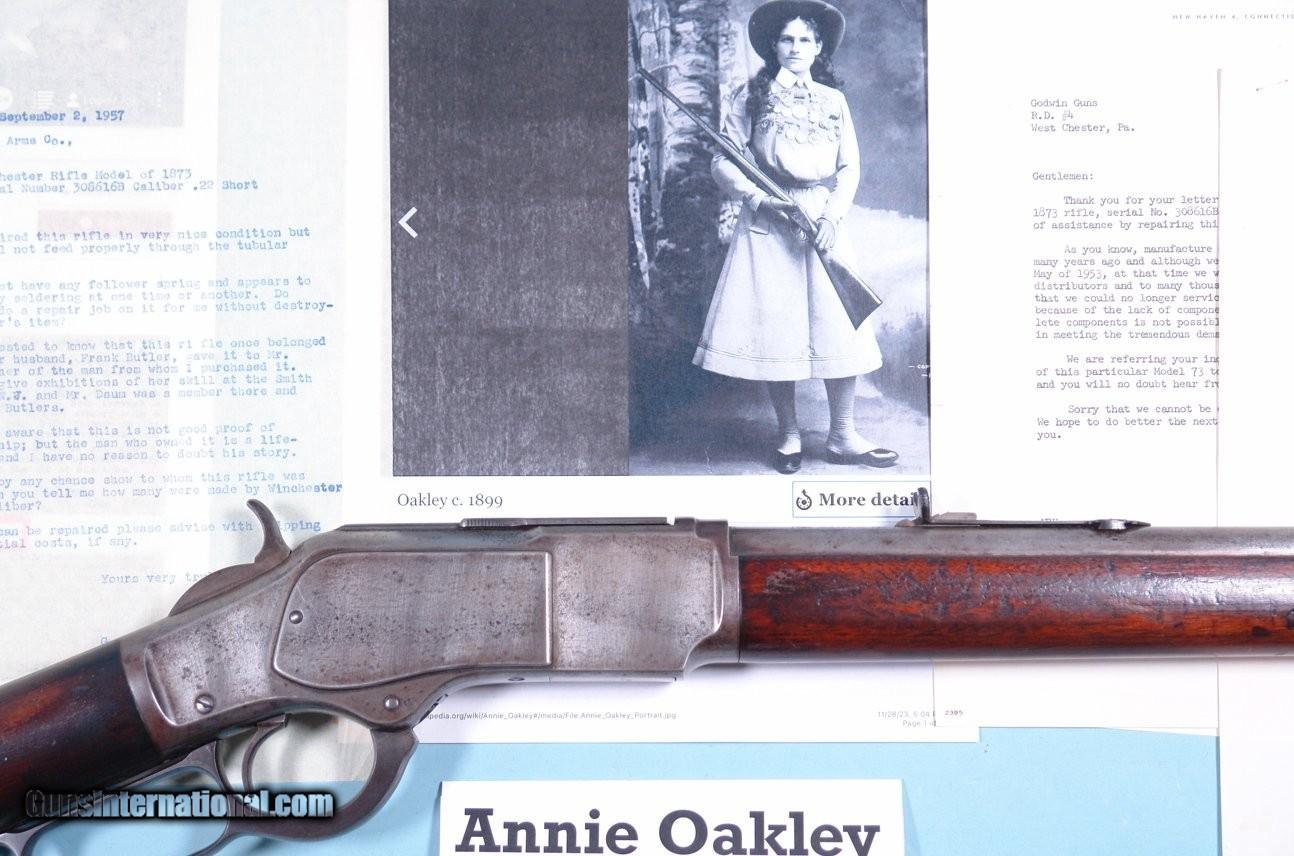 ORIGINAL ANNIE OAKLEY/FRANK BUTLER OWNED AND USED WINCHESTER 1873 LEVER ACTION .22 RF CAL. RIFLE.