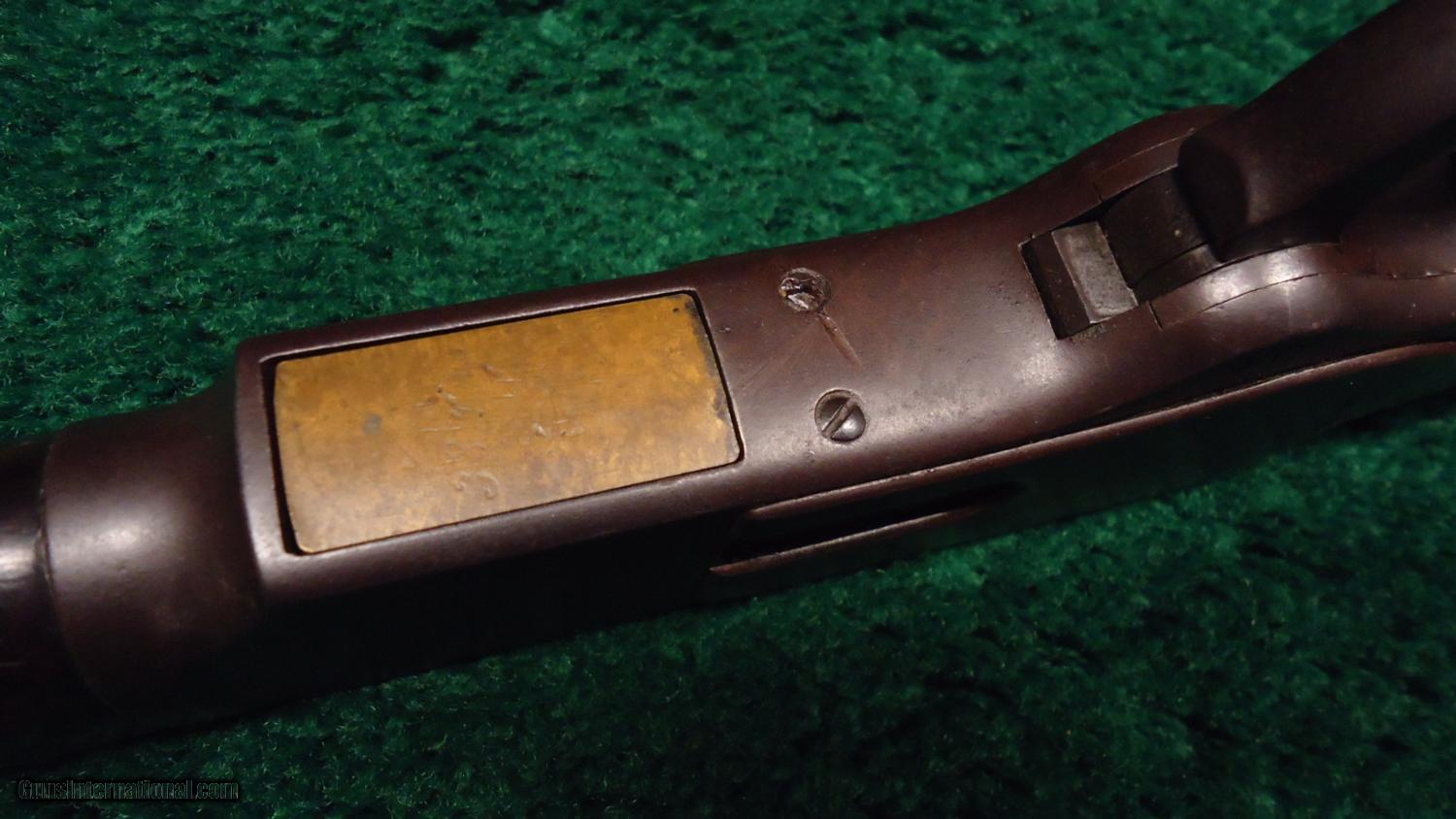 Description: Oct bbl in rare 26" , full length mag tube and crescent butt plate. Cal 38. A pretty decent old gun with mostly a brown patina overall. Good bbl markings. Original sights. Metal is smooth. Bore is in fair to good cond. Some pitting and roughness. There is a ring in the bbl about 1-1/2" from the muzzle. Wood is good overall cond. The fit to frame and tangs is good. A couple of age cracks to the buttstock. It looks like it has had a coat of some kind of finish put on years ago and has aged. Wood is quite dark and looks good. A replacement dust cover. Gun has a few faults but is a decent rare gun. Leroy Merz Antique Firearms specializes in antique and vintage Winchesters and other fine American firearms. Since 1965 Mr. Merz has taken part in the world of firearms and has been a contributor to many well known reference books. Just recently we mailed the 125th edition of our privately-published catalog. We have hundreds of additional guns in every price range at our home online. Search for Merz Antiques in google. SOLD Antique: Yes |