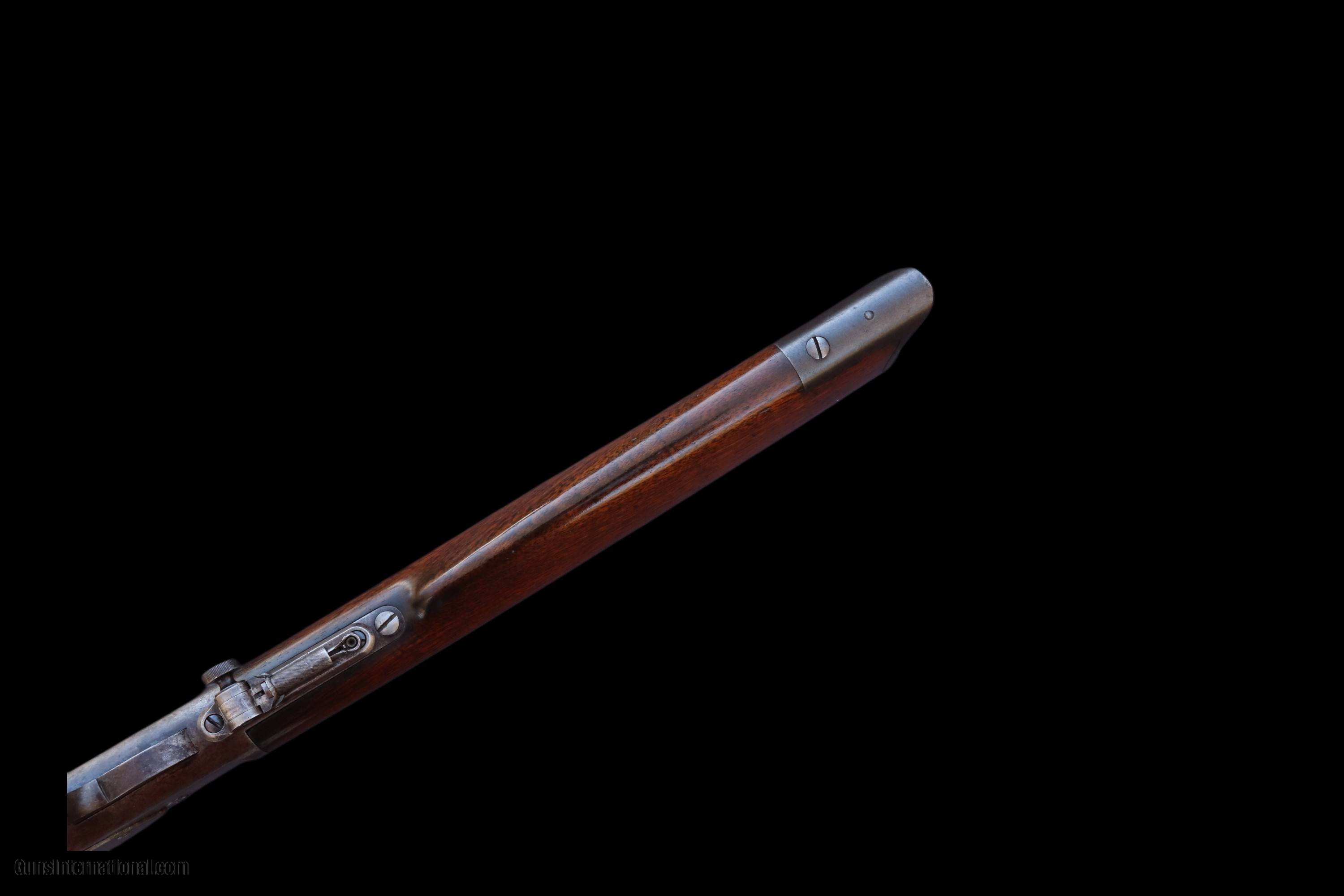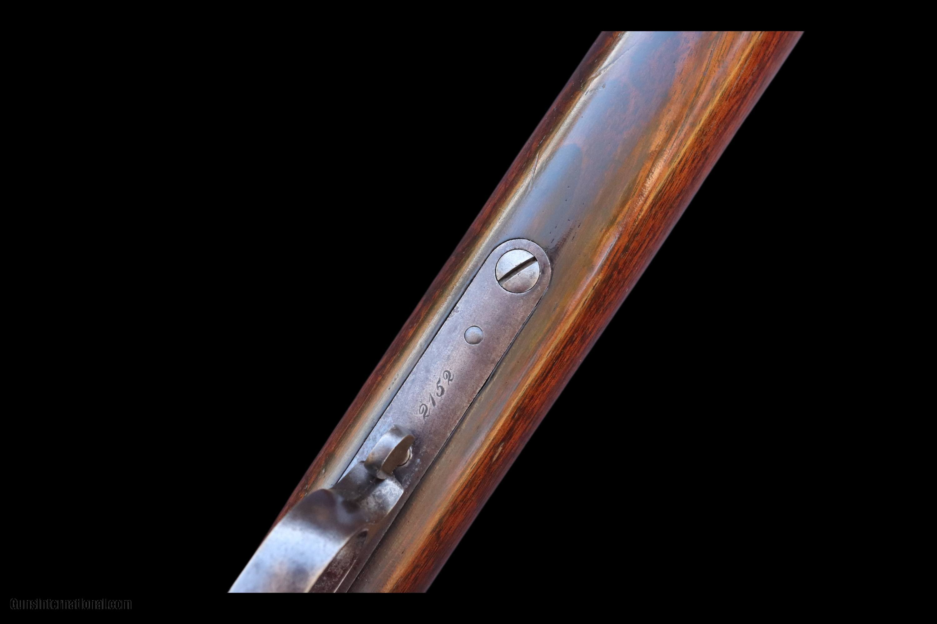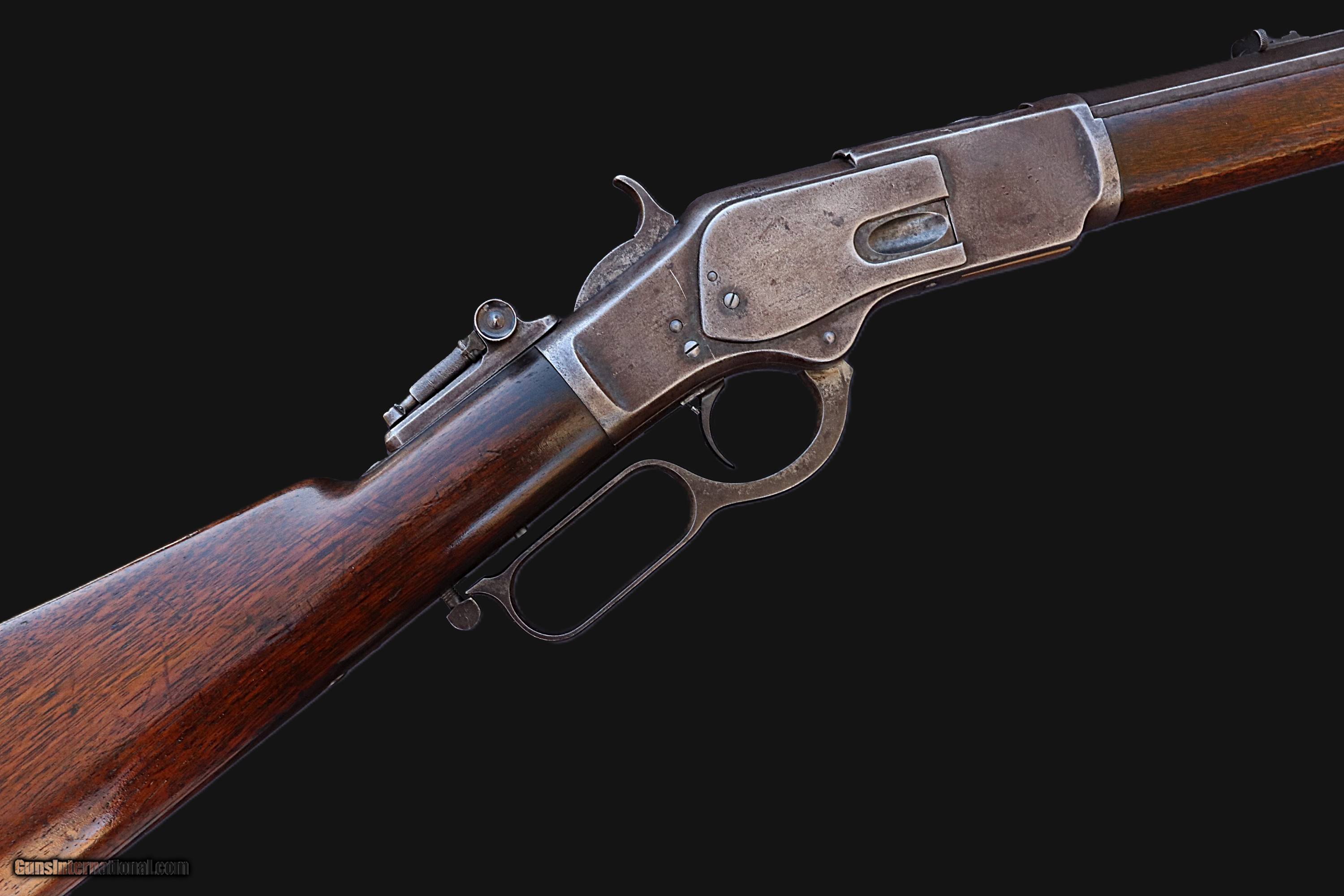 Description: For sale we have a very early production Winchester 1st Model 1873 lever action rifle in .44-40. This rifle is in very good condition for the vintage with trapdoor crescent steel buttplate, straight grip walnut stock and forend, set trigger, and 24" octagon barrel. The gun has the early raised thumbprint dust cover and hand engraved 4-digit serial number. Bore is very good for an 1874 manufactured gun with very strong rifling. Trace amounts of original bluing are showing in protected areas, revarnished stock is in excellent condition. Sights are aGerman silver front blade with rear semi-buckhorn sight and period peep sight on upper tang. Gun is mechanically excellent. Included is a Cody Letter with a specific order number for this rifle in its current configuration, received and shipped on September 16, 1874. Antique, no FFL required. Yes, we will accept firearms on trade. Email us for details. Please contact us with any questions, or for purchase options. We accept AmEx, VISA, MC, and Discover. All items ship fully insured. The gun in the photos is the gun you will receive. Ask us about expedited shipping. Price reflects 3% Cash Discount. Check us out online at lanefirearms Have firearms to sell? Ask us about our consignment program. We also purchase firearms and firearm collections. RETURN POLICY: Lane Firearms will accept returns on firearms that arrive at the transferring dealer in a condition other than advertised in the listing. Returns MUST be left with the transferring dealer. If a customer completes a 4473 and/or takes possession of the firearm, Lane Firearms considers this acceptance of condition, and no refund will be offered. We do not refund shipping costs, and will not pay for return shipping. Antique: Yes Rifle Caliber: .44-40 Winchester Manufacturer: Winchester Model: 1873 1st Model Serial Number: 2152 Barrel Length: 24 Price: $8,499.99 Shipping: $55.00 Buy Now Contact Seller |