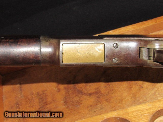 Description: Winchester Model 1873 special order rifle in caliber 38 WCF (38-40), one of the most accurate calibers Winchester manufactured. This rifle sports a 30" full octagon barrel 6" longer than standard and a working single set trigger. Also equipped with a full magazine, crescent butt with trap door butt plate, semi-buckhorn rear sight and Rocky Mountain front sight, plain walnut stocks. Features are confirmed by the included Cody Museum email sheet showing serial number 167374 was received in the warehouse October 5, 1885 and shipped on November 20, 1885 to order number 1932. CONDITION: All metal surfaces are a mix of gray and brown patina with some plum showing in the protected areas of the barrel flats by the mag tube. Some pitting is found on the left side of the barrel. Original walnut stocks are sound with no splits or cracks and no extra holes, never sanded or refinished. Trap door butt cover slides as it should. No cleaning rods present in trap. Set trigger functions perfectly, as does the half cock safety. Very good shootable bore, no rings, no bulges, no craters, defined rifling with typical light black powder wear. Mag tube is tight with no wobble. Grades NRA Antique Very Good. TERMS: No international sales. Antique so it can ship directly to you assuming your local laws allow it. Please be aware of what is legal in your state. 3 day non-firing inspection and sold as a collector item only. Not warranted safe to fire until checked out by a competent gunsmith. Buyer pays return shipping. Payment by bank check, personal check or money order. All major credit cards accepted with 4% convenience fee added. Shipping will be USPS Priority Mail with tracking and insurance included in the fees. Always interested in used long guns and used antique handguns so please contact me if you have anything for sale or trade. 315.251.4799 with questions or concerns. SOLD Antique: Yes Manufacturer: Winchester Model: 1873 Serial Number: 167374 Barrel Length: 30" Octagon Condition: Very good Metal Condition: Good Wood Condition: Very good Bore Condition: Very Good Triggers: Single Set Stock: Walnut Butt Pad: Steel Manufacture Date: 1885 Item Location: New York |