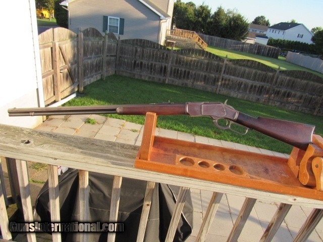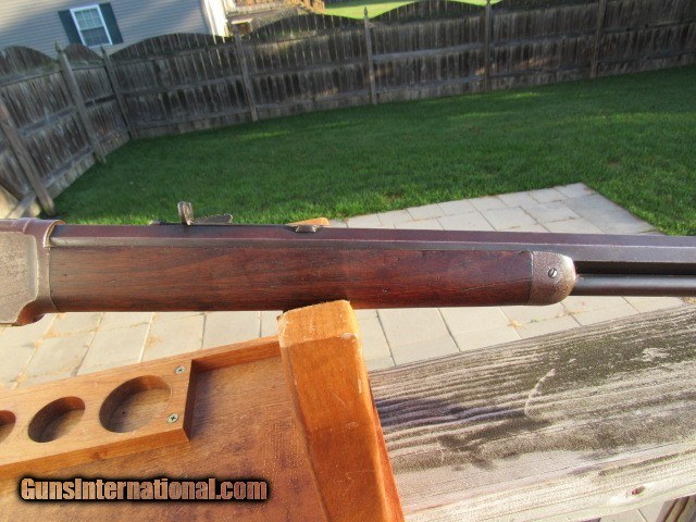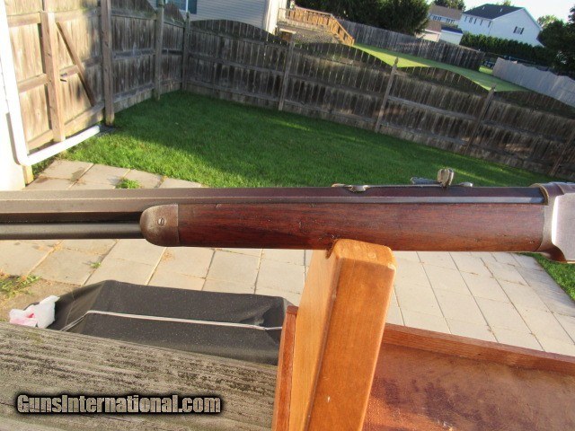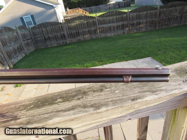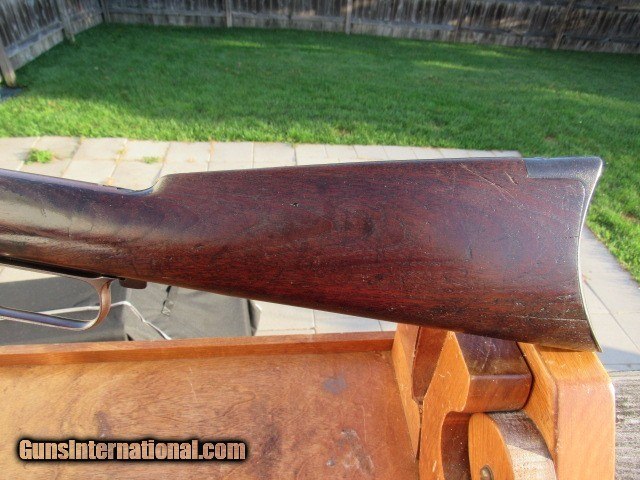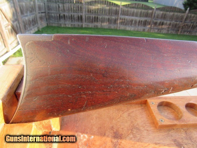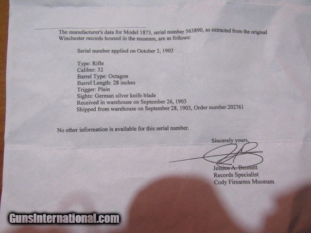 Description: DESCRIPTION: Winchester Model 1873 rifle with special order 28" full octagon barrel and full magazine, standard crescent butt, caliber 32 WCF aka 32-20, plain trigger, correct butt plate without trap door, semi-buckhorn rear sight with thumb print elevator and standard German silver blade front sight. Copy of factory letter included with rifle shows the serial # 563890 applied on 10/2/1902, confirms the features, received in warehouse 9/26/1903 and shipped 9/28/1903 to order # 202761. Recently acquired from a local collector. CONDITION: Receiver shows traces of original blue around the sideplates, otherwise has turned patina. Brass carrier is a mellowed mustard color. Traces of case color on hammer. Lever, butt plate and fore end cap silver/patina mix. Barrel retains 60% fine aged blue/plum and magazine tube has 80% of same with some brighter blue present. Very small dent in bottom of mag tube does not affect function. Bore is very good, no pits or craters, no rings or bulges, just consistent but used rifling, about a 7 of 10 and previous owner stated it's a "good shooter." Fore end wood is sound with no splits or cracks, just normal dings and scratches, never sanded or refinished. Butt stock has a crack coming in from the lower butt plate screw hole, otherwise it's in the same condition as the fore end. No extra holes anywhere. Factory letter mentions "German silver knife blade" front sight but that is long gone and a standard front sight installed. Mag tube is tight with no wobble and original dust cover is also tight with no side-to-side play. Action is strong and half cock safety functions properly. Grades NRA Antique Very Good and is a way better than average 1873 for this caliber and configuration as most were beat and shot out. Nice collector and shooter!! TERMS: No international sales. Must ship to FFL or C&R license holder. Payment by bank check, money order, personal check, or all major credit cards with 3% surcharge. 3 day non-firing inspection. Buyer pays return shipping. Layaway available with 25% down and equal payments over 90 days. Offers considered. Thanks for looking. SOLD Curio/Relic: Yes Manufacturer: Winchester Model: 1873 Serial Number: 563890 Caliber Info: 32 WCF Condition: Very good Metal Condition: Very good Wood Condition: Very good Bore Condition: Very good Barrels: 28" Octagon Action: Lever Triggers: Standard/plain Stock: Walnut Manufacture Date: 1902 Item Location: New York |