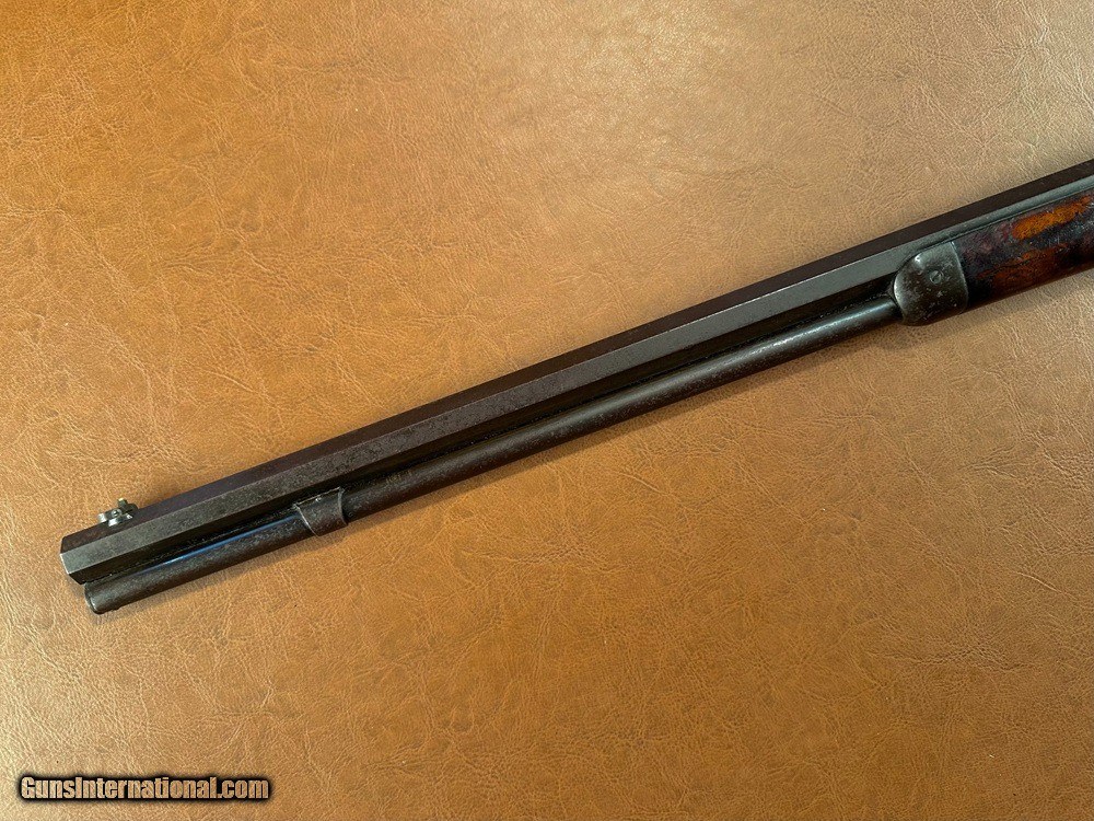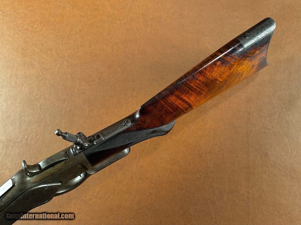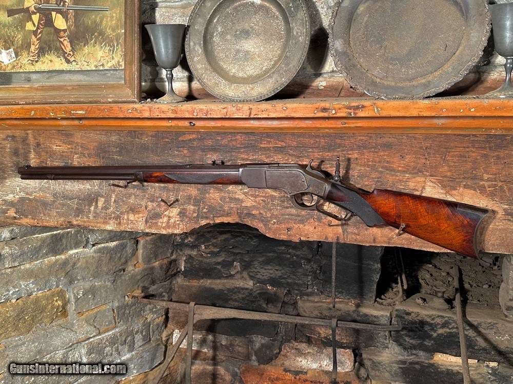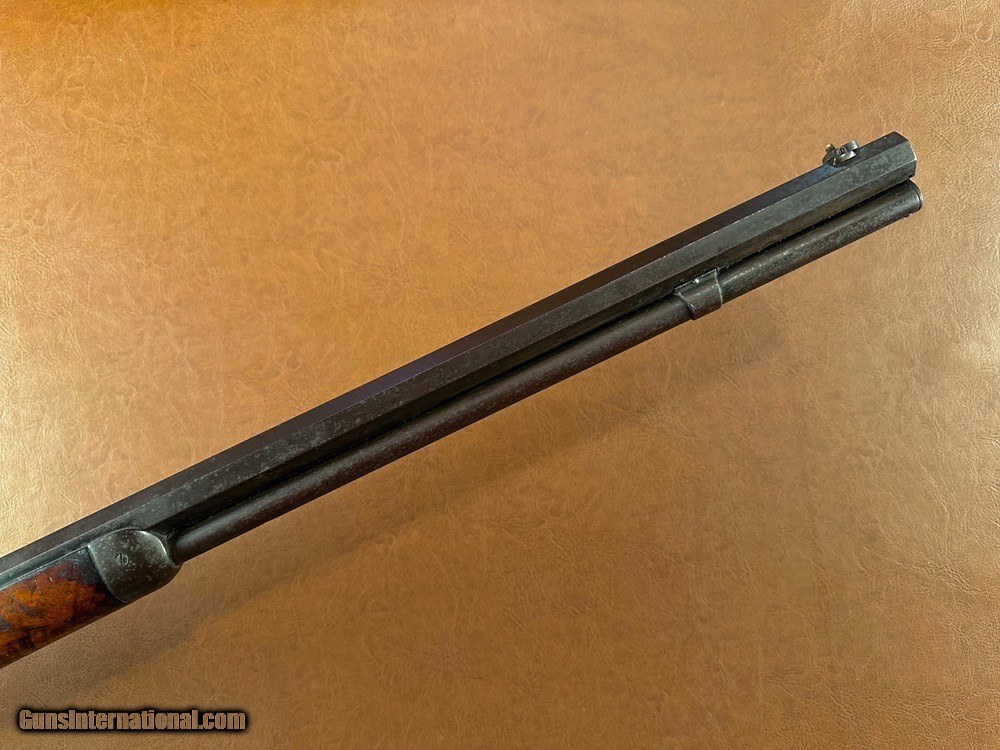 Description: Untouched Documented Special Order Model 1873 Winchester Deluxe Lever Action Repeating Rifle with Fancy Checkered Stock, Pistol Grip, & Casehardened Frame, .32-20 WCF, mfg. 1888. This rifle was obtained directly from the family who owned it for generations and has never been publicly offered for sale. Pictures don't do it justice, it's just as honest and unmolested as one could ever hope to find! The 24" long octagon retains it's original adjustable buckhorn rear sight with an 1890's vintage Lyman #5 flip-up globe front sight fitted in period. Likewise a Lyman No. 1 adjustable tang sight probably intended for a Marlin or Stevens was also installed which has clearly been on the gun forever. Base of staff is marked “PAT. JAN. 29 79”. We have not removed it but can see that only the factory front screw was used to mount the sight and luckily the tang was not drilled for the rear screw of the shorter base. Barrel and magazine tube have turned a dark plum/chocolate patina with traces of original bluing remaining between the two and along the forearm. Special order casehardened frame has largely faded to a silvery/plum patina but has some very vivid swirls of case color visible along the top and rear sides and on the hammer. Sharp edges throughout with very fine surface oxidation freckling scattered overall. Fancy checkered pistol grip stock is highly figured (probably XXX grade) with beautiful fiery grain and rich dark color. It retains about 80% factory original finish with perfect wood-to-metal fit, extremely sharp original checkering, and no chips or cracks whatsoever. Complete with original ebony pistol grip inlay. Clear barrel address, caliber markings, and serial number “284381” stamped on lower tang. Original buttplate, screws, hammer, trigger, lever & locking but, dustcover, forend cap, and magazine tube band. The band has some very very minor lateral movement to one side which is hardly worth noting. The action is perfectly crisp and functions flawlessly in every regard. One of the best actions I've felt on a ‘73 in some time, it feels like new. The dustcover even clicks shut. Bore is fairly bright with very sharp rifling and light/moderate superfine blackpowder frosting throughout. Factory letter included. A very very sharp “newly discovered” Deluxe ’73 with a fantastic look that's never been fooled with or taken apart! Jeremiah Johnson Trading sells antique arms manufactured prior to 1899 and muzzleloading blackpowder reproductions only. For the purpose of these conditions the term "antique arms" will also include muzzleloading blackpowder reproductions. Buyers must be 21 years of age or older and have no felony convictions to purchase antique arms. Antique arms do not require Federal licensing and may be shipped directly to the buyer with the following exceptions. No antique arms will be shipped to Washington D. C. or any of the five boroughs of New York City (or residents thereof). Some restrictions may apply to antique firearms shipped to California and will be noted in the item description if applicable. Any antique arm shipped to New Jersey or Ohio must ship to a licensed FFL holder, no exceptions. Any muzzleloading blackpowder reproduction rifle, shotgun, or handgun shipped to Illinois must ship to an FFL holder. Items containing antique ivory will not be sold or shipped to residents of California, Hawaii, Illinois, Nevada, New Hampshire, New Jersey, New York, Oregon, or Washington. Antique muzzleloaders and antiques which fire obsolete cartridges may be shipped internationally however it is the responsibility of the buyer to know and abide by their local laws and provide proof that the antique arm is legal to receive and own. Payment can be made by money order, banker's check, personal check, credit card (no additional fees), or bank wire. Please allow 7-10 business days for clearance on personal checks. If paying by credit card please call us directly to process your order. Items are professionally packed and shipped USPS Priority Mail with insurance coverage for the sale price and signature required for delivery. Items valued over $5,000.00 are shipped Registered Mail. Buyer pays actual shipping costs with no added charge for packing materials or handling. We describe items accurately and thoroughly. If an item has been misrepresented or significant defect overlooked you may return it for a full refund (minus return shipping costs) within 3 days of having received it. This timeframe begins once the package is delivered by the carrier. Buyer's remorse or concerns over issues noted in the description and/or pictures is not a valid excuse for return. Returned items must be received in the same condition as originally shipped - cleaning, disassembly, alteration, or damage of any kind will void inspection privileges. Occasionally a post-1898 firearm from my personal collection may be sold under this account and any such transaction is a personal sale in no way affiliated with Jeremiah Johnson Trading. Any such arm will be shipped to a licensed FFL or C&R holder in accordance with Federal law. All antique arms are sold as collector's items and are not warranted safe for shooting. Please consult a competent gunsmith prior to shooting any firearm. SOLD Antique: Yes Rifle Caliber: .32-20 Winchester Manufacturer: Winchester Model: 1873 Serial Number: 284381 Barrel Length: 24 Barrel Type: Octagon Stock: Fancy Checkered Pistol Grip Finish: Blue/Casehardened Sights: Lyman Manufacture Date: 1888 Extras: Factory Letter |