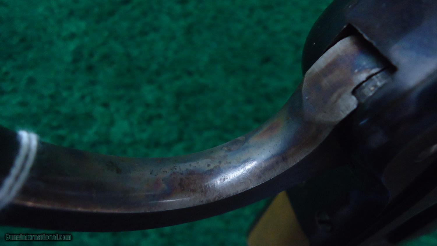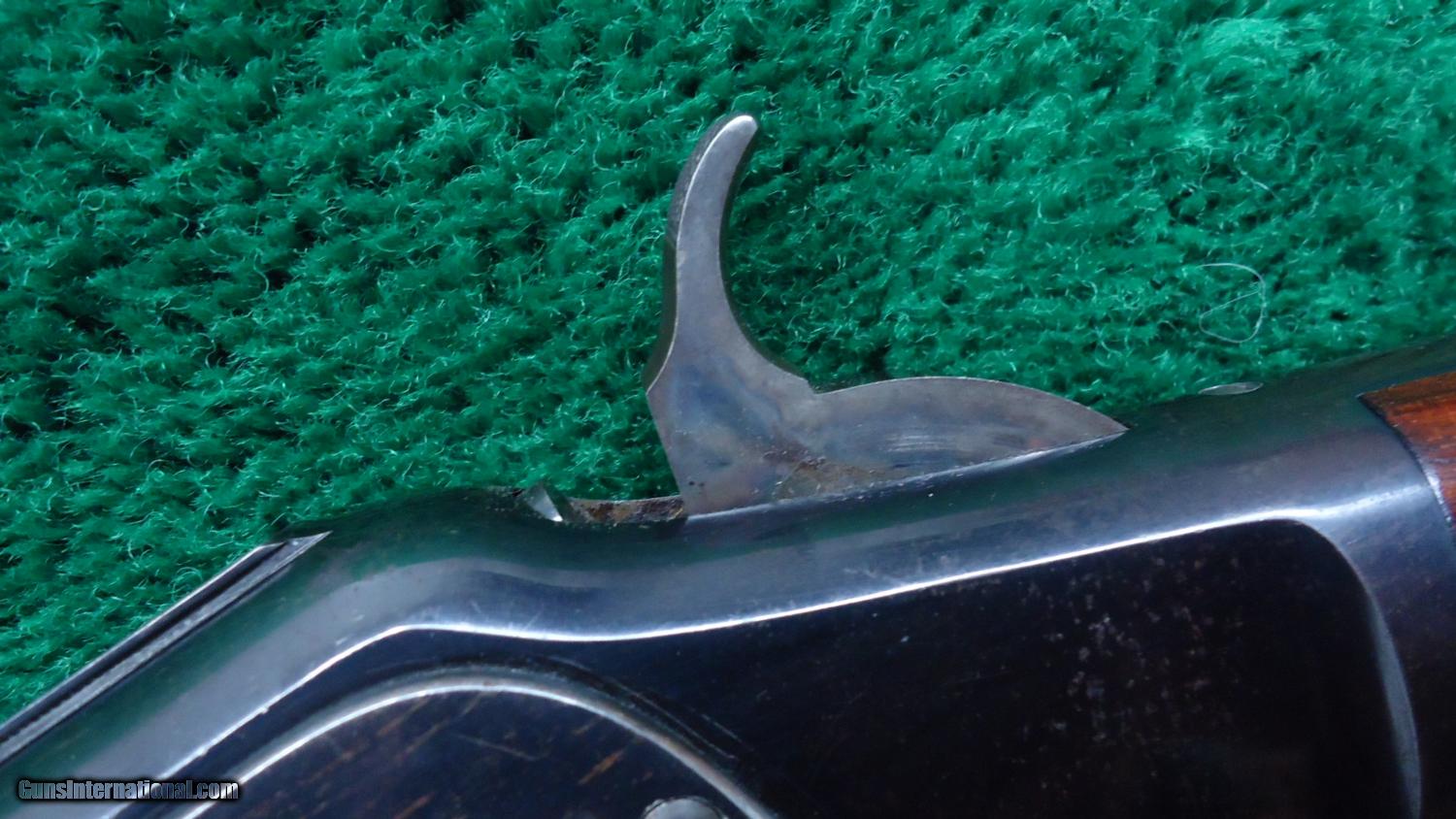 Description: This 44 cal 73 has a standard 24" round bbl which is in exceptional condition with nearly all orig blue. Just a couple of light spots. Has the 3-leaf express sight. Inside the bore is absolutely wonderful! Bright and shiny. 9.8 out of 10! Also has full length mag tube and crescent buttplate. A somewhat early gun being under 200k. It has the deep rich factory blue on the receiver with some aged serration lines that look very nice. Blue is at 90%+ and it is that lustrous blue. Very attractive. Wood condition is also exceptional. Case colors on hammer and lever. Nice aging to the dust cover. A very good collectible 1873! Leroy Merz Antique Firearms specializes in antique and vintage Winchesters and other fine American firearms. Since 1965 Mr. Merz has taken part in the world of firearms and has been a contributor to many well known reference books. Just recently we mailed the 126th edition of our privately-published catalog. We have hundreds of additional guns in every price range at our home online. Search for Merz Antiques in google. SOLD Antique: Yes |