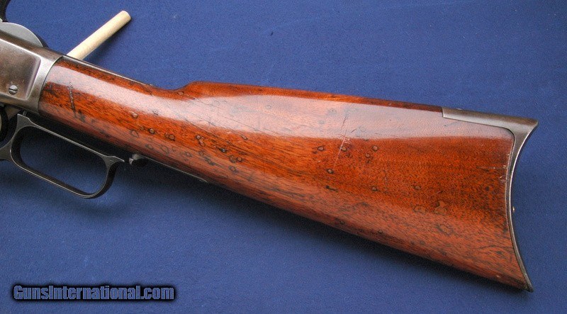 Description: Ok. So I am far from an expert on these rifles. I will do my best to describe it, hopefully the pictures with help with the rest. This one is a standard 24" octagon barrel rifle, 3rd series, in caliber 38-40, born in 1886. Rifling is visible but very worn, the barrel is clean, front sight blade may be very old ivory, just don't know for sure. Rifle is fully functional and tight. No dents in the magazine, but there is a little bit of pitting in the middle towards the muzzle. I would suggest that the wood is original, as the fit is very nice overall. Fairly certain a couple of the screws have been replaced. It appears that the buttstock sustained some damage at some time, as there is evidence of repairs and wood filler around the upper tang. Also numerous small dots that have been filled. Pretty well done, but odd. Wood worms? Buttplate fits very nicely. Wood is tight to the rifle. Caliber marking on brass lifter is very worn. Barrel markings are strong. Mostly a brown gun, as you can see. Overall a very attractive '73, that likely could be shot if you wanted to. It has been stored properly for many, many years. $55 shipping to the lower 48, 3% surcharge for using a CC. If you choose to pay with a personal check, we will hold the item for up to 10 days to make sure that it clears. Please expedite such pymts as we will hold an item on your word for 5 days. SOLD Rifle Caliber: .38-40 Winchester |