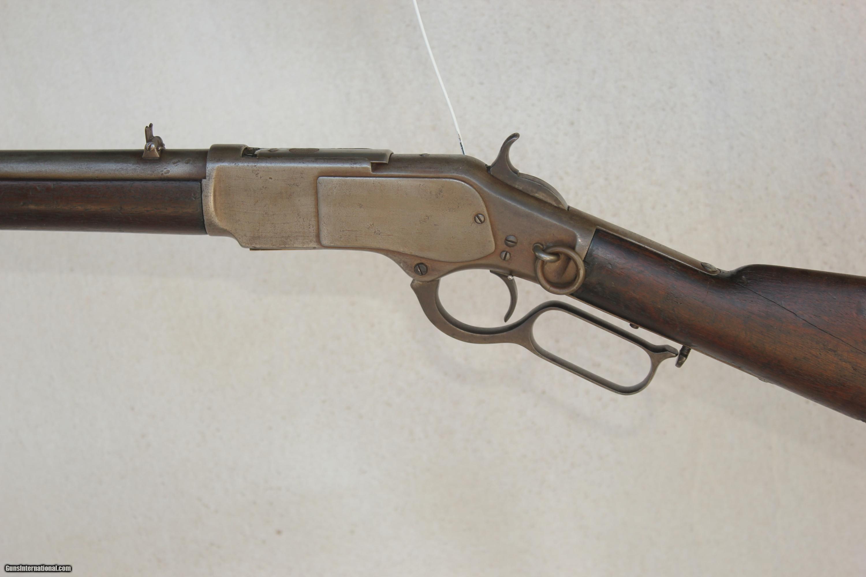 Description: This is a super rare 1873 carbine that letters with a long musket forend. In 44-40 caliber, with a 20" barrel, and carbine butt stock. The metal has a consistant grey patina , an action that funtions well, a nice original thumbprint dust cover, and nicely fitting wood with an attractive rich medium color. It comes with a Winchester letter verifying its features. SOLD Antique: Yes Manufacturer: Winchester Model: 1873 Serial Number: 22xxx Caliber Info: 44-40 |