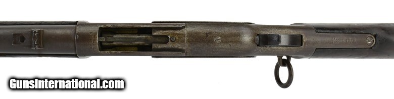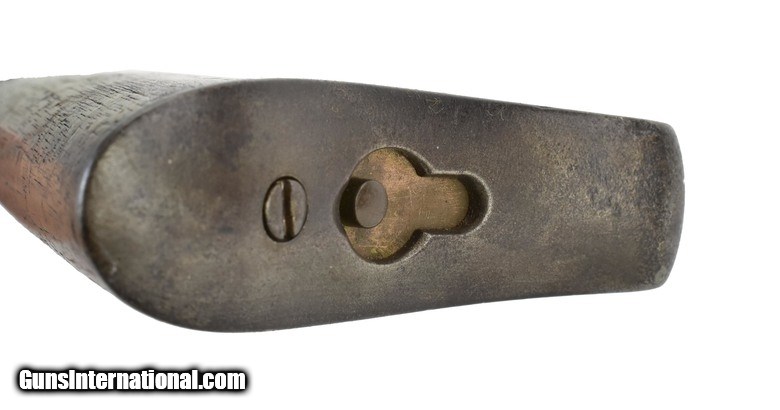 Description: Winchester 1873 1st Model Saddle Ring Carbine. Made in 1875. .44-40 Caliber with a 20” barrel. Metal has a brown patina and shows normal use. Wood shows some use and has some repairs. Dust cover is missing. This gun should have a raised thumbprint dust cover. Very rare carbine to find this early. SOLD Antique: Yes |