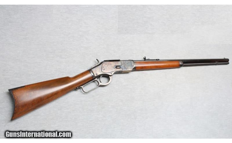 Description: Winchester Model 1873 chambered in .32 Winchester Center Fire (.32-20 Winchester). This is a lever-action repeating rifle designed by John Browning. It was one of the most successful Winchester rifles of its day, with Winchester marketing it as "The Gun That Won the West". It was manufactured between 1873 and 1923. This rifle appears to be professionally refinished with a 24-inch octagonal-shaped barrel and a color case-hardened receiver. The bore is dark but has strong rifling. In all, over 720,000 Model 1873s were produced. The .32-20 Winchester, also known as .32 WCF (Winchester center fire), was the first small-game lever-action cartridge that Winchester produced. .32 WCF SOLD Metal Condition: Excellent Wood Condition: Excellent Bore Condition: Dark with good rifling Barrels: 24 Inches Triggers: Factory Stock Dimensions: LOP 12 1/2 Inches Fore End: Smooth walnut Butt Pad: Semi-crescent Sights: Adjustable Semi-Buckhorn and blade front sight Item Location: La Vista, NE |