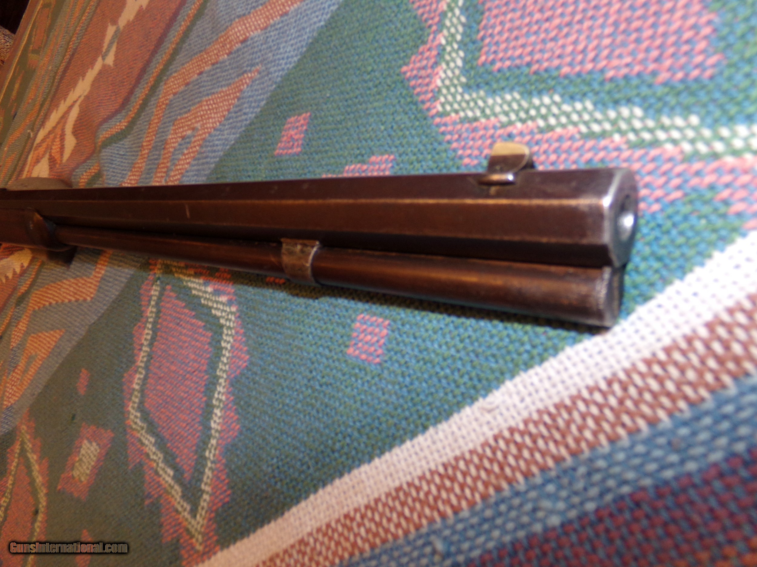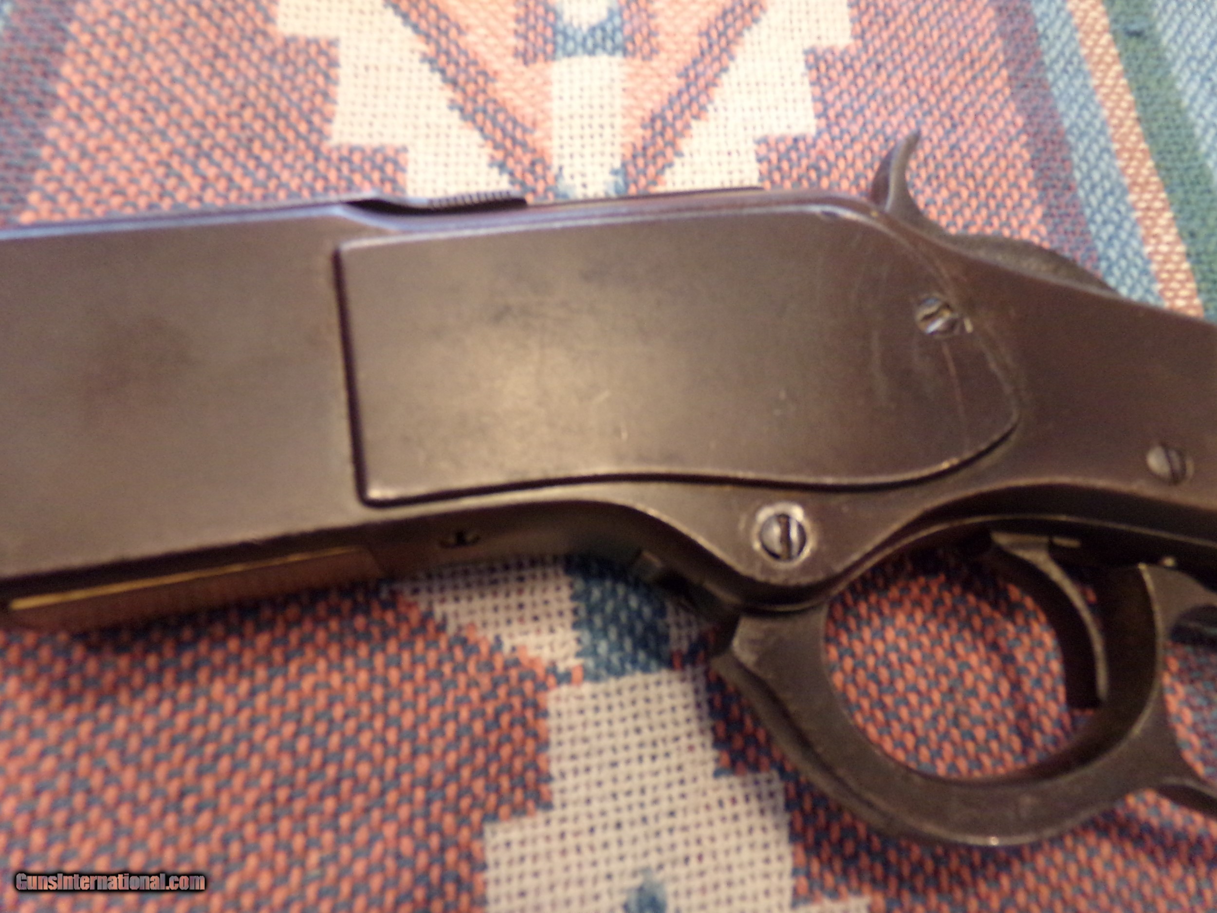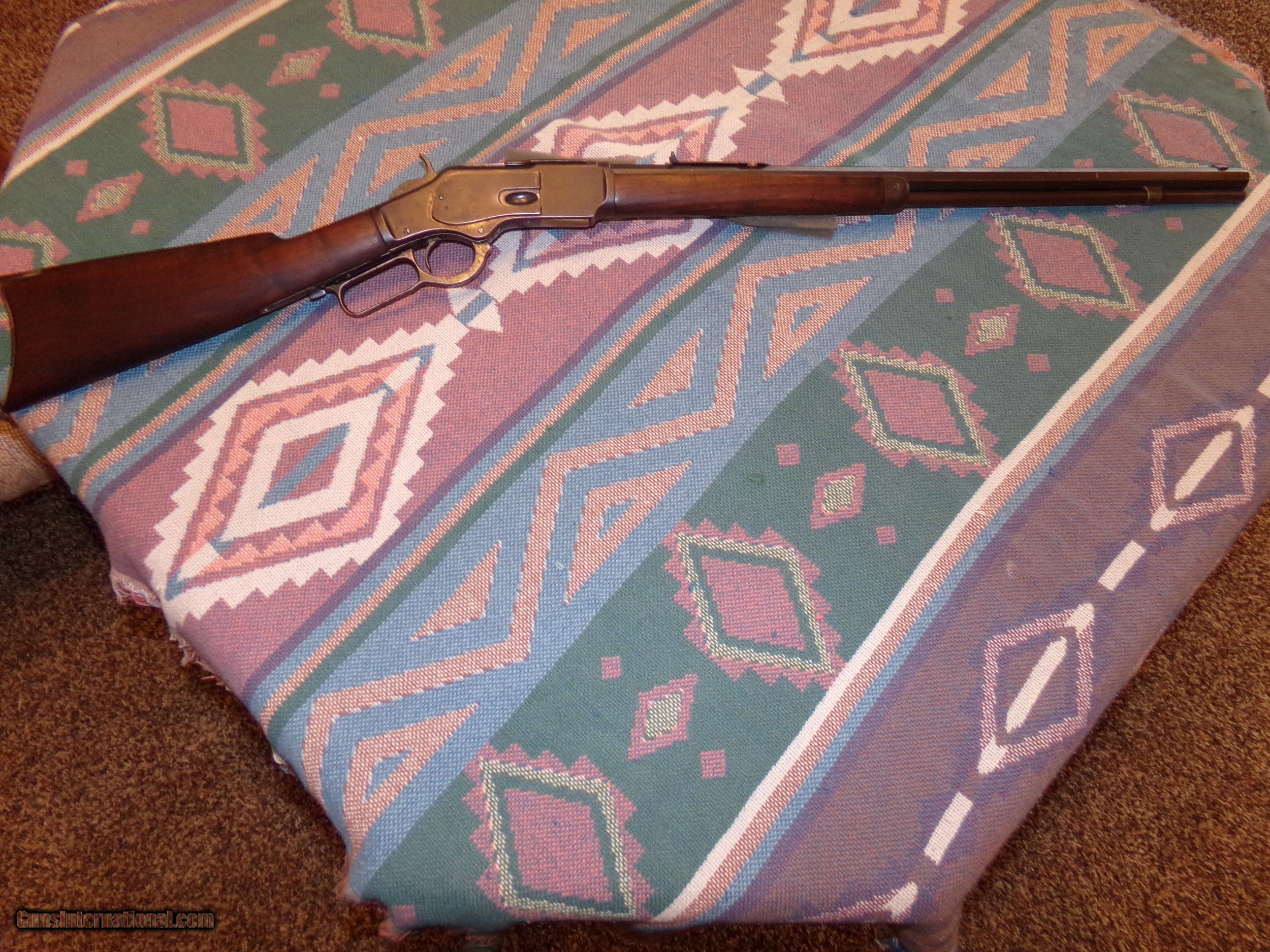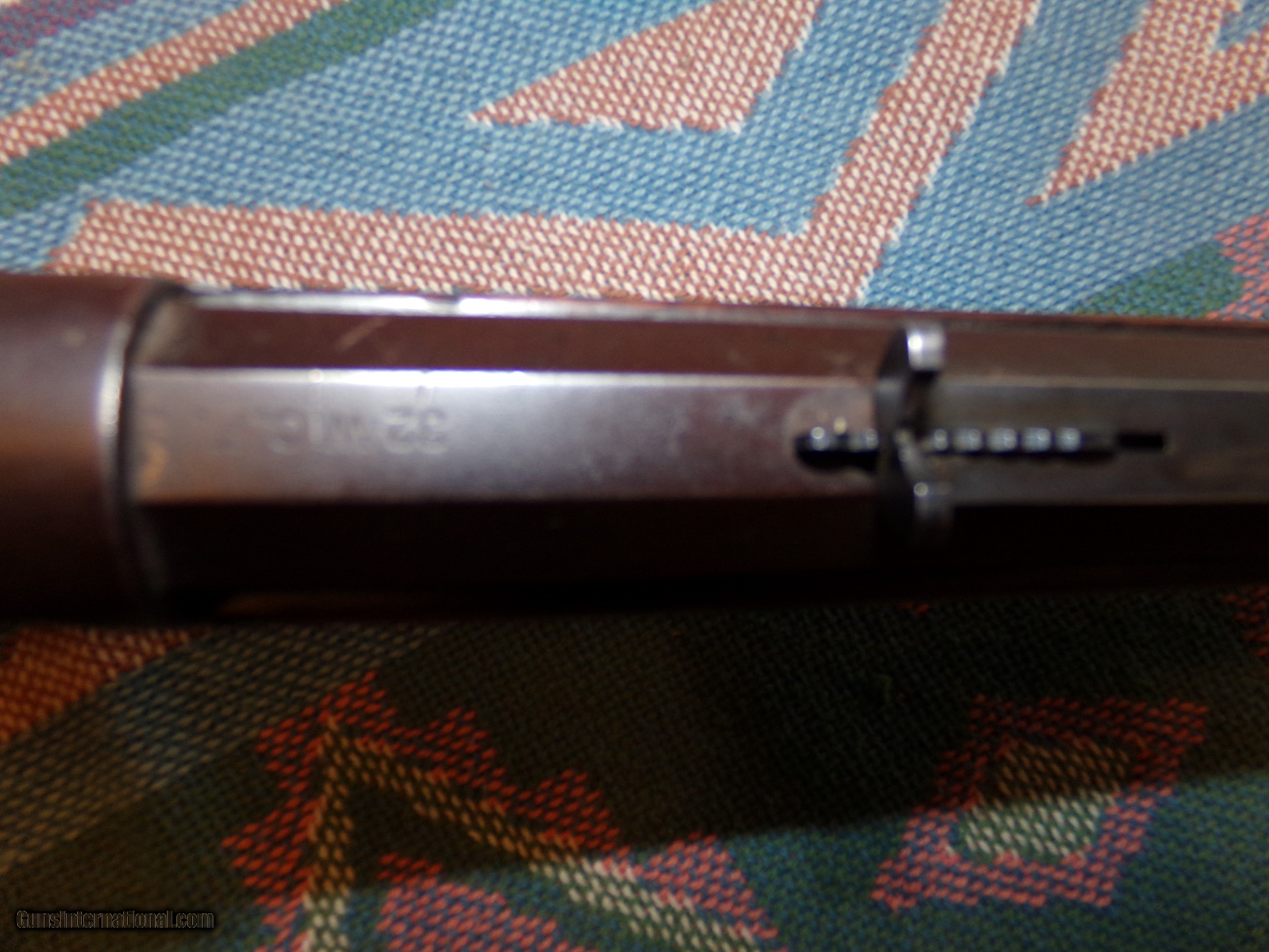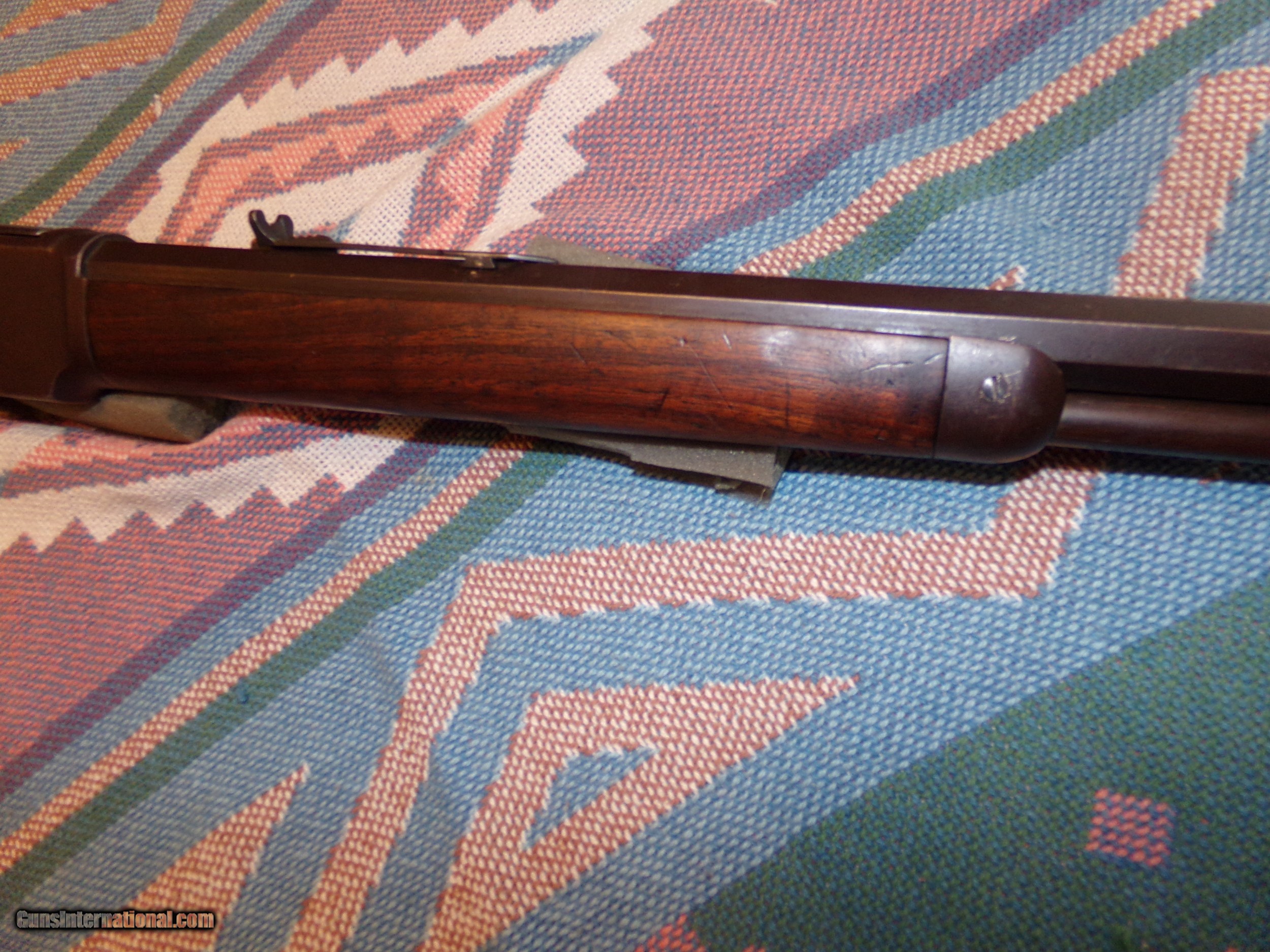 Description: Winchester 1873 Octagon barrel standard rifle. 24" barrel, full octagon, has fair rifling showing with some dull spots. Wood is good with no cracks or repairs and fits well to metal. Dark patina finish. All markings are good and very readable. Mfg 1890. antique. Shipping $65.00. SOLD Manufacturer: Winchester Model: 1873 Serial Number: 357788B Caliber Info: .32WCF Condition: G Metal Condition: G Wood Condition: G Bore Condition: F |