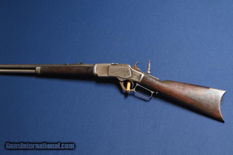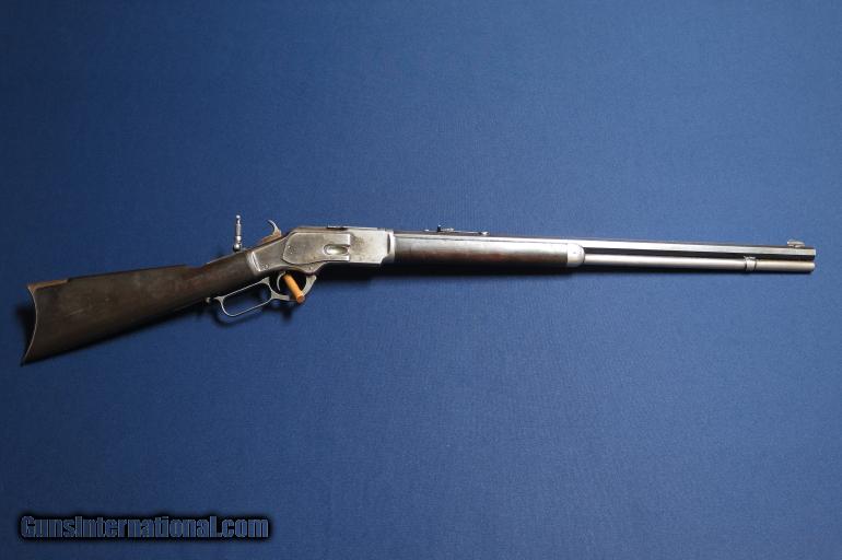 Description: Winchester 1873 38-40 rifle. 24" octagon barrel. SN 273,XXX. 30% case coloring on lever and hammer. 40-50% blue. Very good wood. No cracks. Excellent bore. Factory tang peep. SOLD |