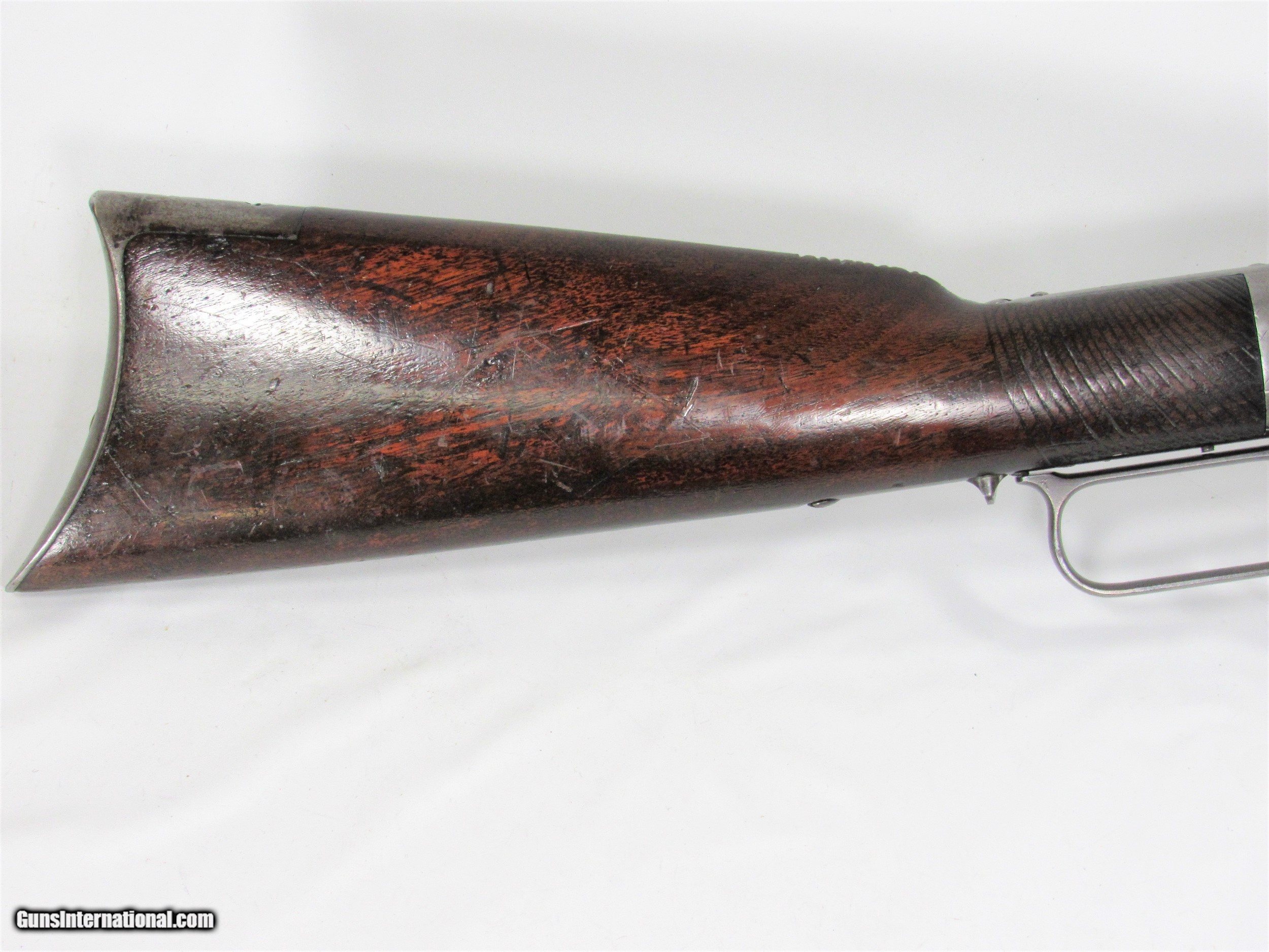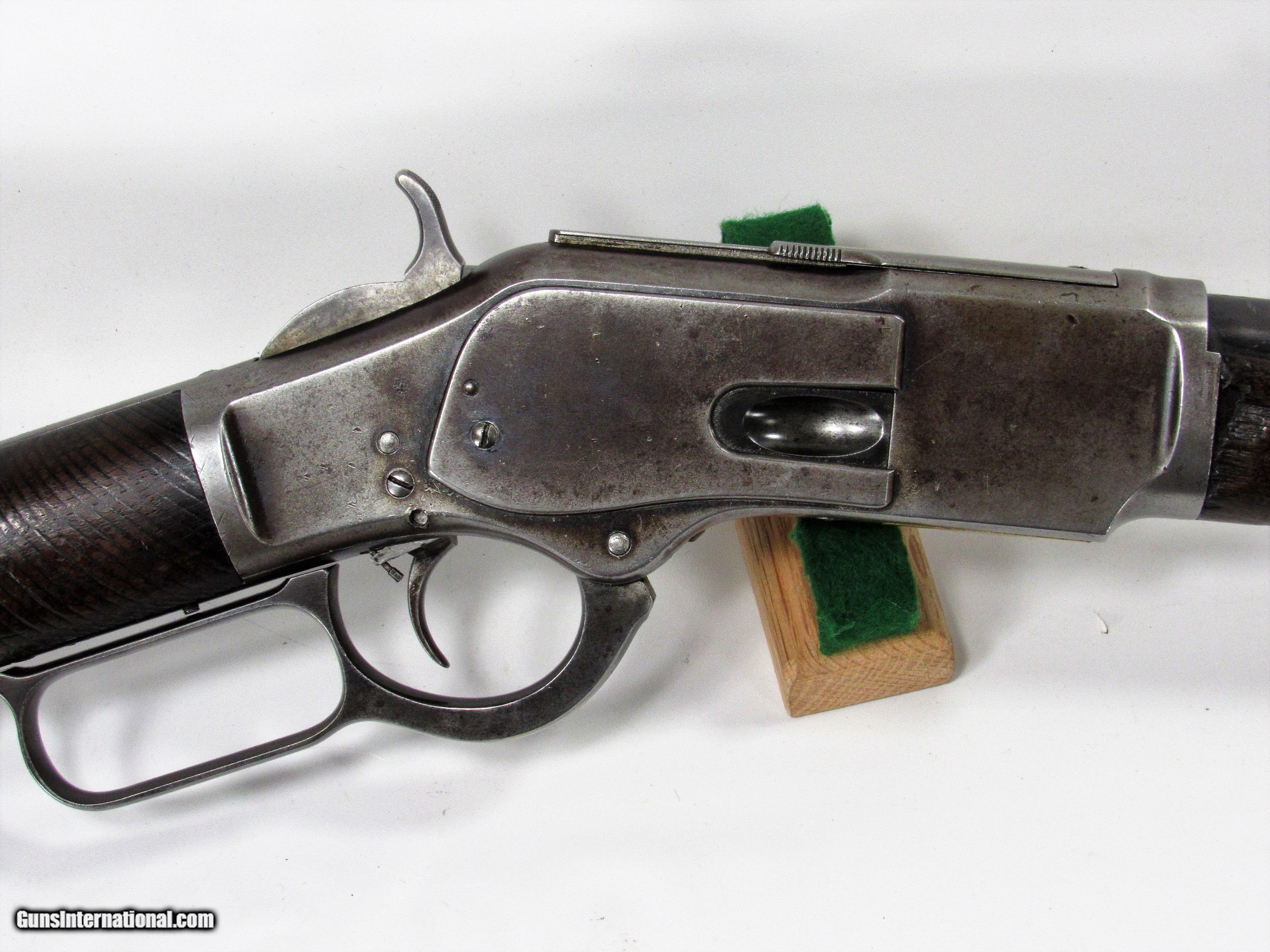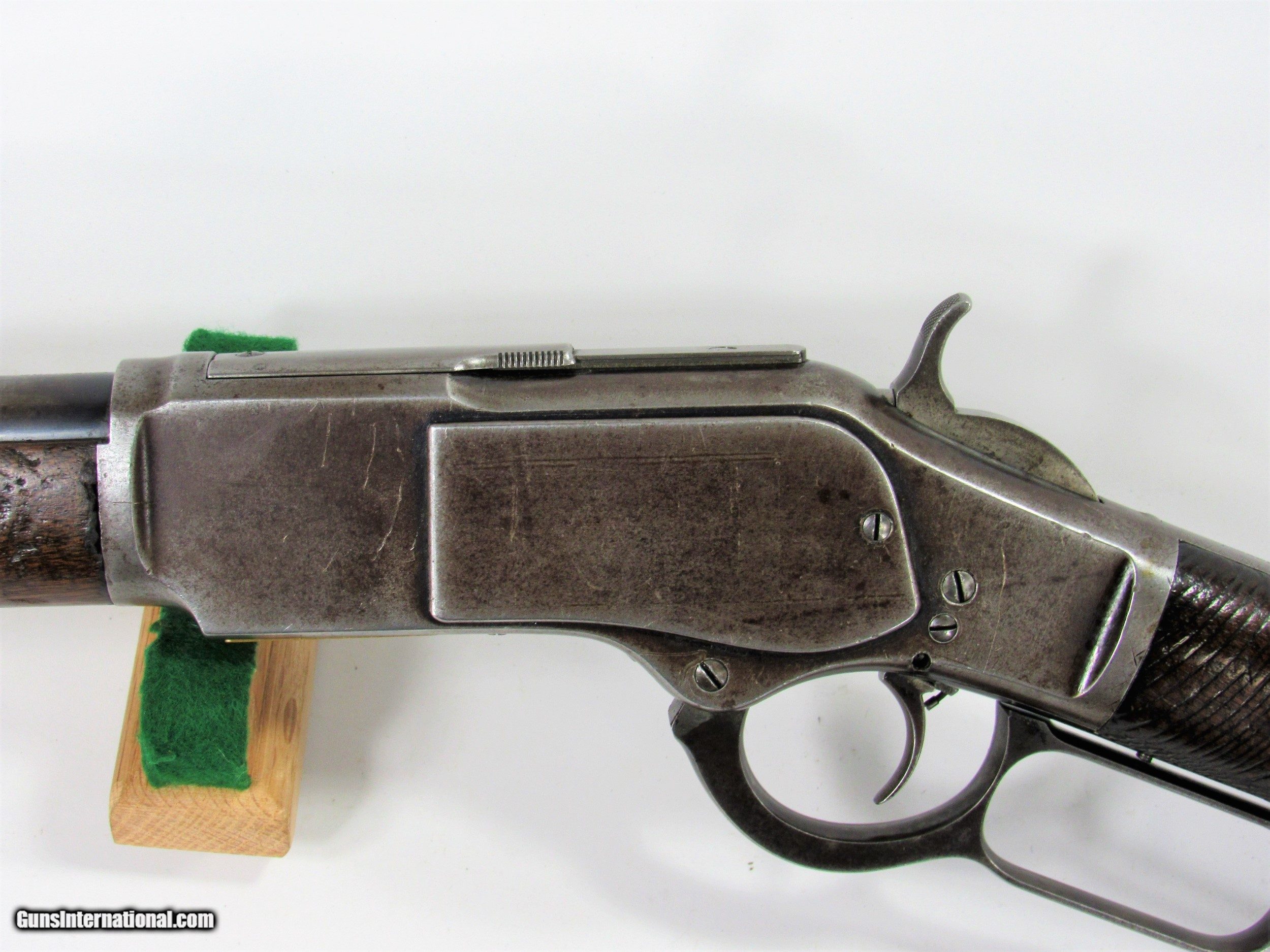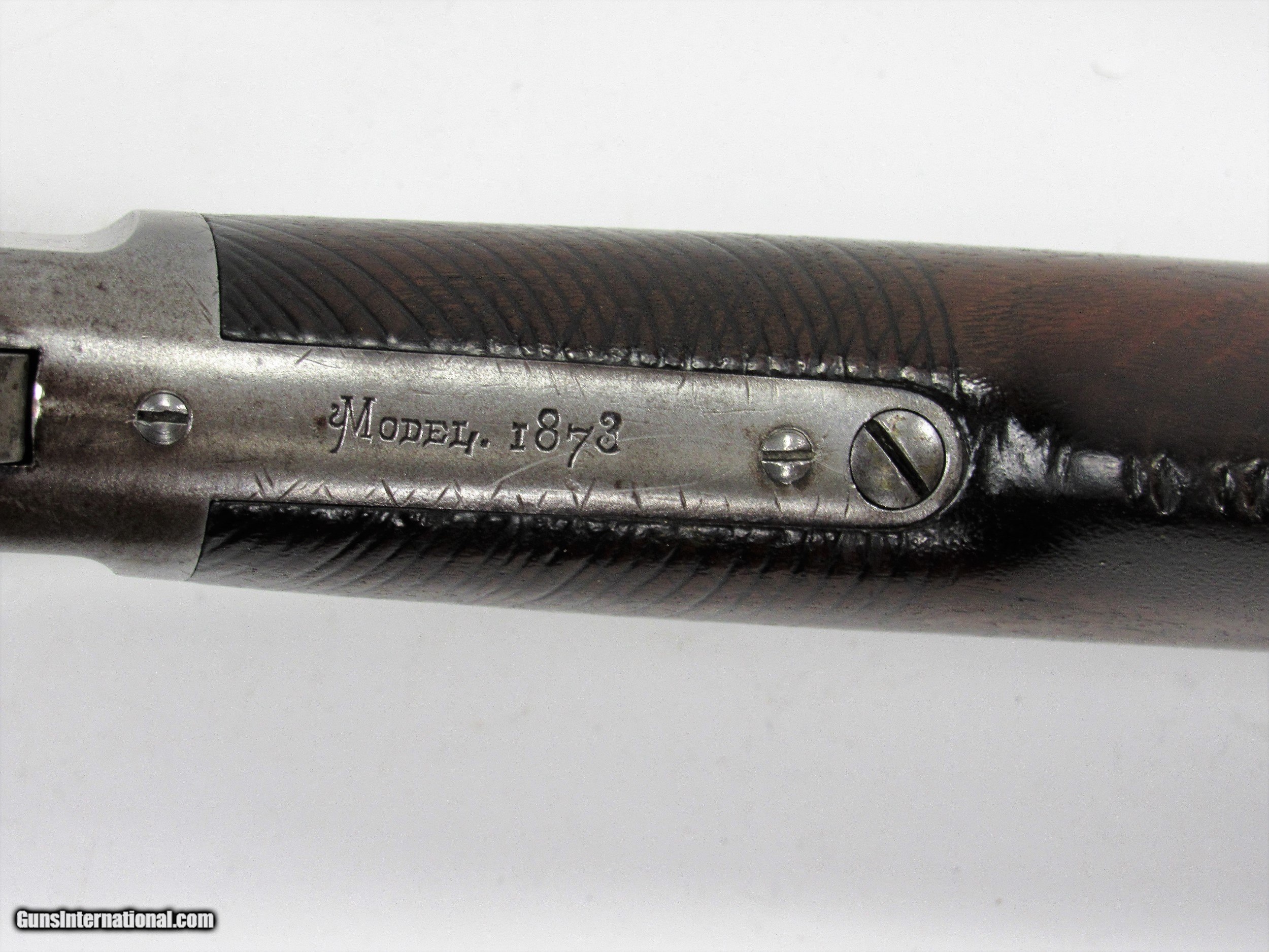 Description: WINCHESTER 1873 38-40 ROUND RIFLE, 50% BARREL AND MAG, RECEIVER HAS TRACES OF BLUE, FAIR WOOD SOMEONE STARTED TO CHECKER, NON-FUNCTIONAL SET TRIGGER, EXCELLENT BORE, ANTIQUE, MADE IN 1881, WITH FACTORY LETTER SOLD Antique: Yes |
