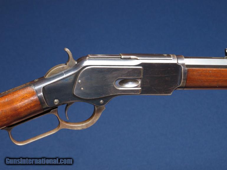Description: Winchester 1873 38-40. 24in oct barrel. SN 297,XXX. 1889 manf. 60-70% cc on lever, hammer, and crescent butt. 90-93% blue and varnish. Excellent bore. All original. SOLD |