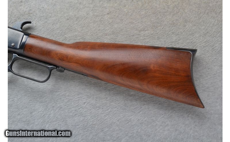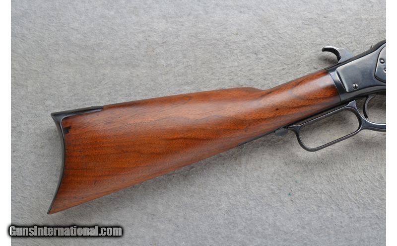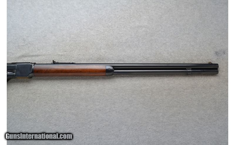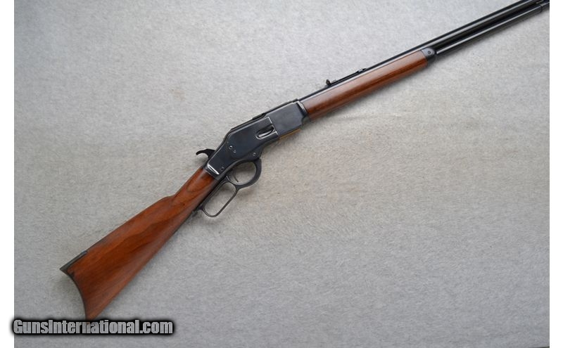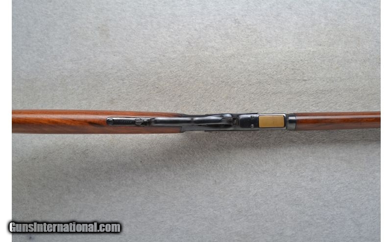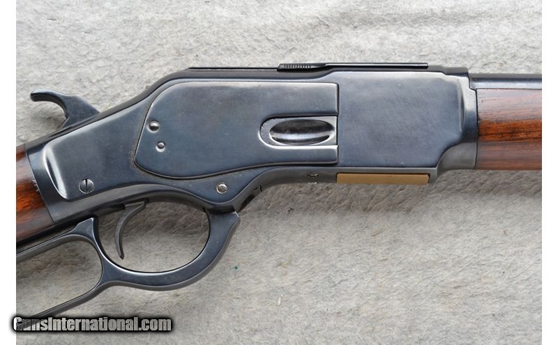 Description: This Winchester Model 1873 is a lever action repeating rifle in .38 WCF Cal. It has a 24 inch barrel. A blade front sight and an adjustable notch middle sight. The butt stock is a smooth grip walnut straight grip. The forearm is a smooth grip walnut with a steel cap. This gun has been reblued. S/N 537734B (1899). .38 WCF SOLD Chambers: 7 round tube magazine. Metal Condition: Very good. Has been reblued. Wood Condition: Very good. A few minor handling marks. Bore Condition: Good. Barrels: 24 inch. Stock Dimensions: 12 5/8 inches. Fore End: Smooth grip walnut with a steel cap. Butt Pad: Steel crescent with a brass sliding door storage compartment. Weight: 8 Lb. 0 Oz. Sights: Blade front. Adjustable notch middle. Item Location: Richfield, WI |