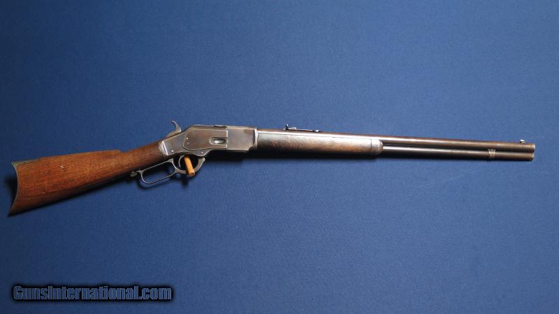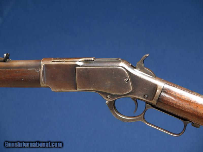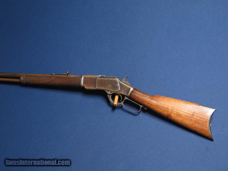 Description: Winchester 1873 44-40 rifle. Factory letter. 24" round barrel. 1884 mfg. 70% blue on receiver. 50% on barrel and mag. Very good bore. SOLD |