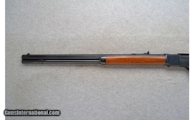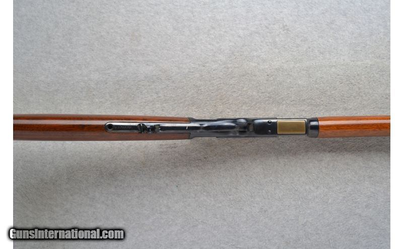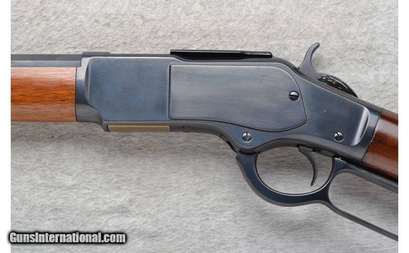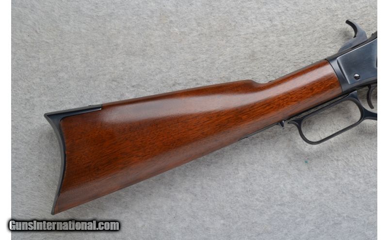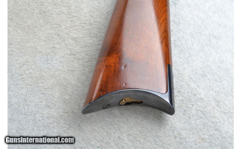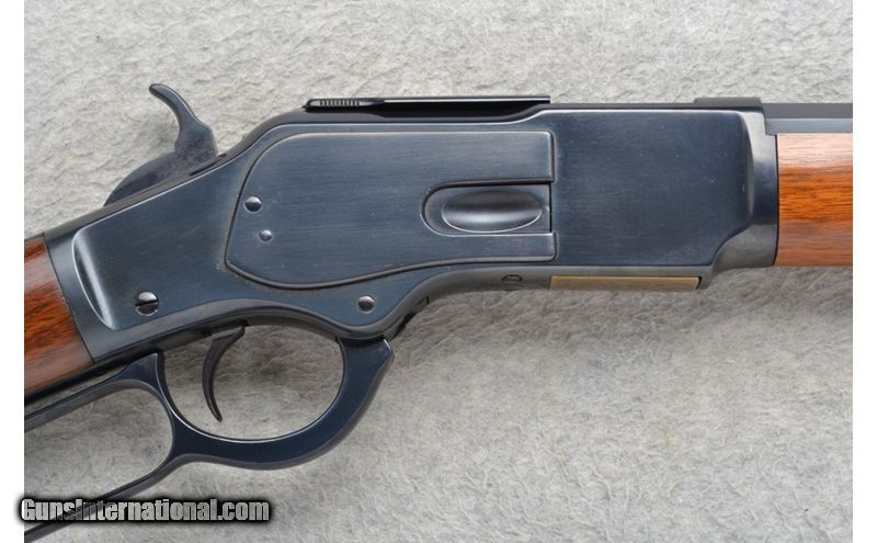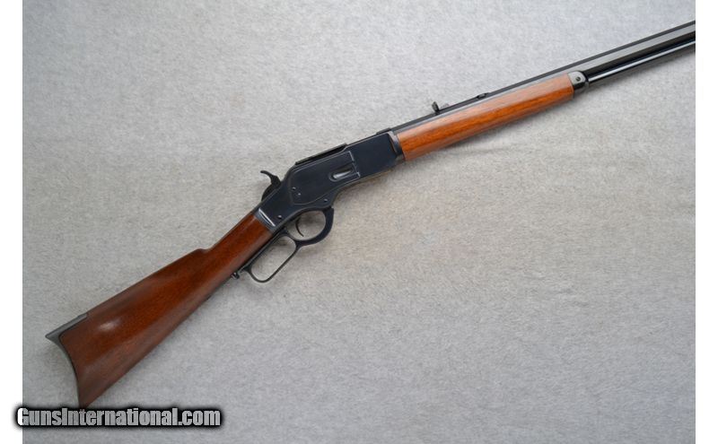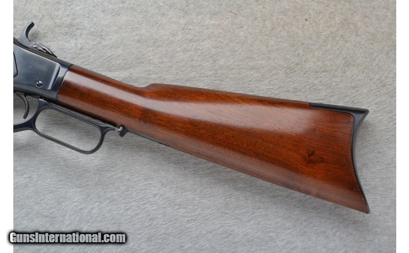 Description: This Winchester Model 1873 is a right hand lever action repeating rifle in .44 WCF Cal. It has a 24 inch octagon barrel. A blade front and adjustable notch middle sight. The butt stock is a smooth grip walnut straight grip. The forearm is a smooth grip walnut with a steel cap. S/N 222610B (1886). This rifle has been reblued and refinished. SOLD Antique: Yes Chambers: Lever action 7 round tube magazine. Metal Condition: Very good. Has been reblued. Wood Condition: Very good. Has been refinished. Bore Condition: Has light pitting. Barrels: 24 inch octagon barrel. Stock Dimensions: LOP 12 5/8 inch. Fore End: Smooth grip walnut with a steel cap. Butt Pad: Smooth steel crescent with a brass sliding door storage compartment. Weight: 8 lb. 6 oz. Sights: Blade front. Adjustable notch middle. Item Location: Richfield, WI |
