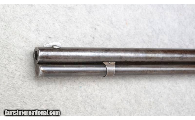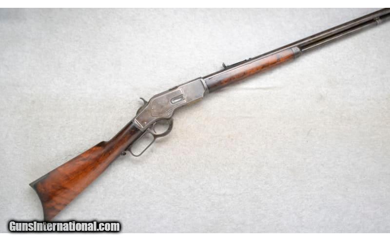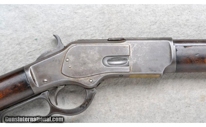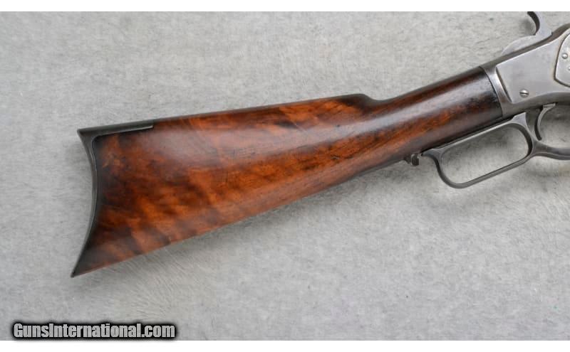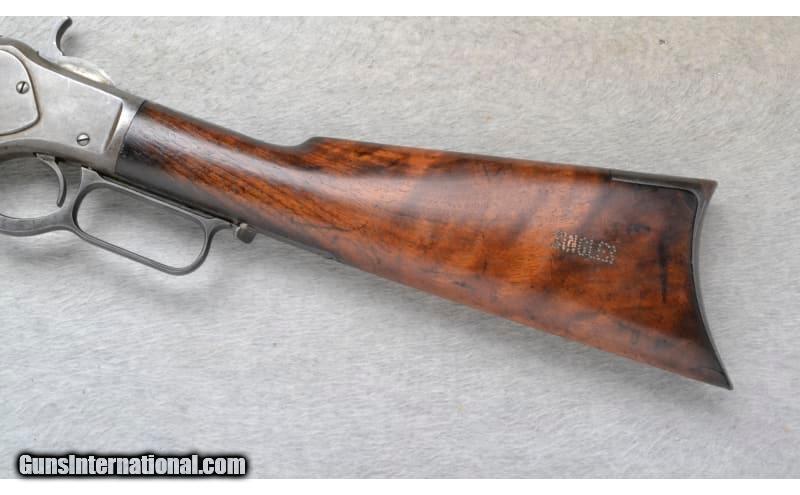 Description: This Winchester Model 1873 is a right hand lever action repeating rifle in .44 WCF Cal. It has a 24 inch barrel. A blade front sight and an adjustable notch middle sight. The butt stock is a smooth grip walnut straight grip with a butt plate storage compartment. The forearm is a smooth grip walnut with a steel cap. Serial Number 315527B. SOLD Antique: Yes Chambers: Full barrel length tube magazine. Metal Condition: "Fair. Shows age, use and wear. Wood Condition: Fair. Has some light handling marks. Has the word SINGLES embedded on the left side of the butt stock. Appears to have been refinished. Bore Condition: Fair. Barrels: 24 inch. Stock Dimensions: LOP 12 3/4 inches. Fore End: Smooth grip walnut with a steel cap. Butt Pad: Smooth steel crescent with a sliding door storage compartment containing a cleaning rod. Weight: 9 lb. 0 oz. Sights: Blade front. Adjustable notch middle. Item Location: Richfield, WI |