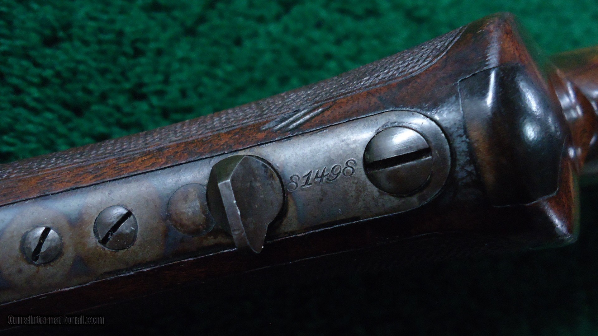 Description: 44 WCF caliber. Special order 26 inch half octagon barrel and half length magazine. Original sights include a German silver blade front and Winchester sporting rear. Case colors are still present on frame, hammer and lever. Barrel retains most of the original blue that is thinning and turning plum. Fancy checkered walnut pistol grip stock looks good. Forearm has had some light repairs long ago. Not a bad example of a 2nd Model Deluxe Winchester. Leroy Merz Antique Firearms specializes in antique and vintage Winchesters and other fine American firearms. Since 1965 Mr. Merz has taken part in the world of firearms and has been a contributor to many well known reference books. We have hundreds of additional guns in every price range at our home online. Search for Merz Antiques in google. SOLD Antique: Yes Rifle Caliber: .44-40 Winchester |