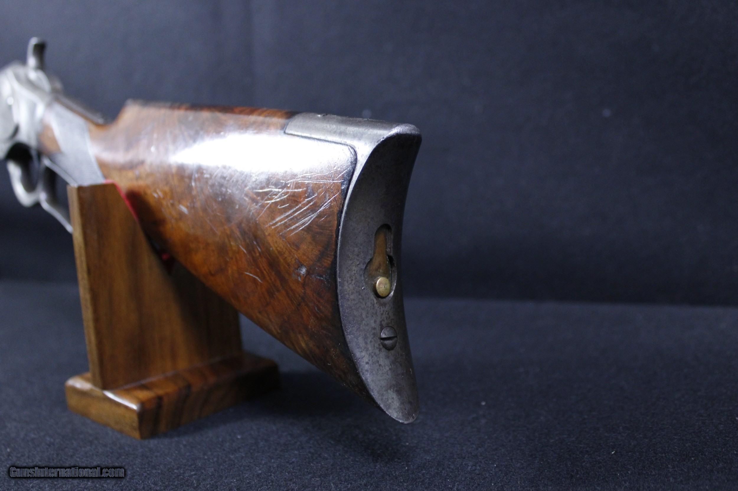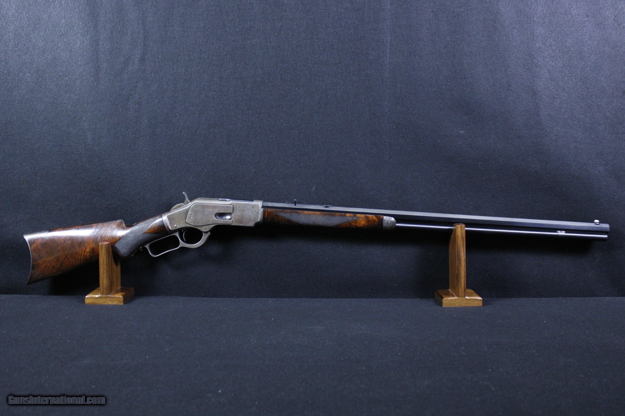 Description: Beautiful Winchester 1873 Deluxe chambered in .44 W.C.F. (.44-40 Win), manufactured in 1896. Restoration by Jim Wiegand in 2020. This rifle has set triggers, an extra-long barrel, pistol grip, and upgraded wood. The factory letter that comes with the rifle states such. Beautifully crafted and wonderfully restored. Something you want in your collection. Dimensions are as follows; BBL. 28" Octagon WT. 9lb. 5oz. Dim. 12 3/4" L.O.P. On Sale!! Was $11995 Now $9599.95 SOLD |