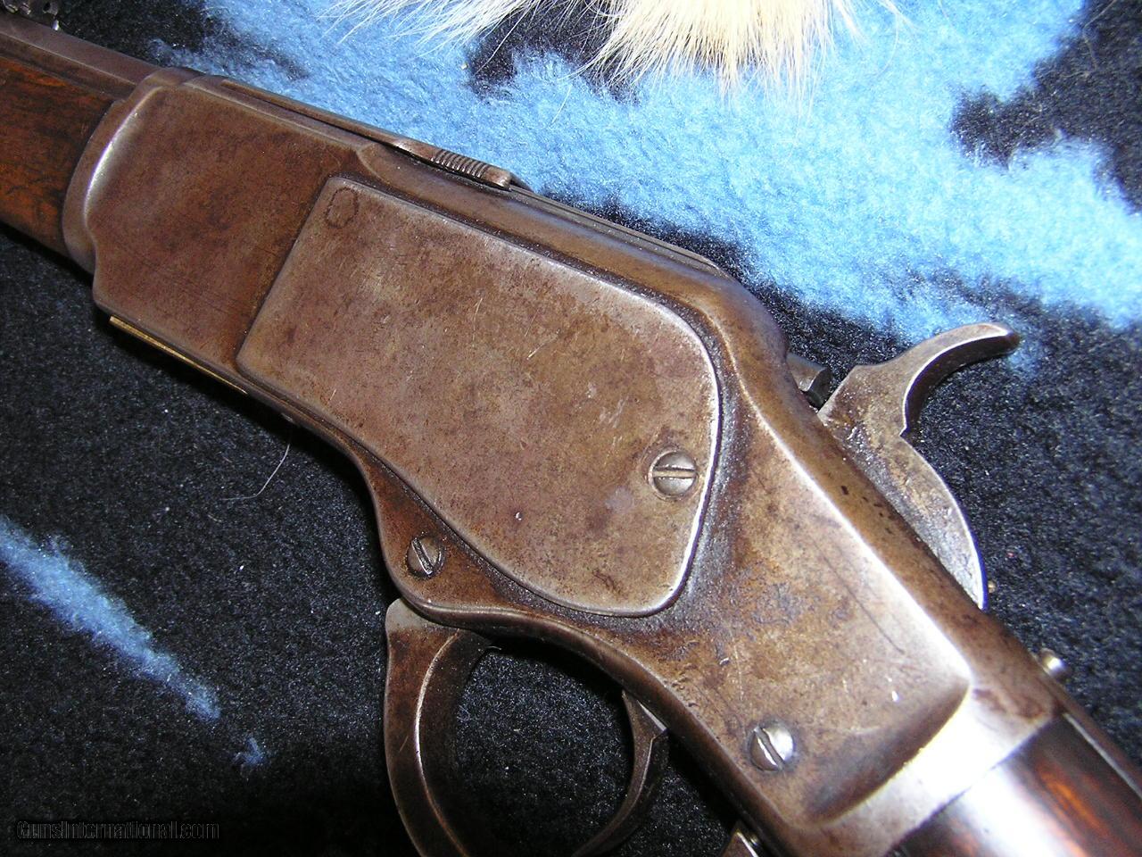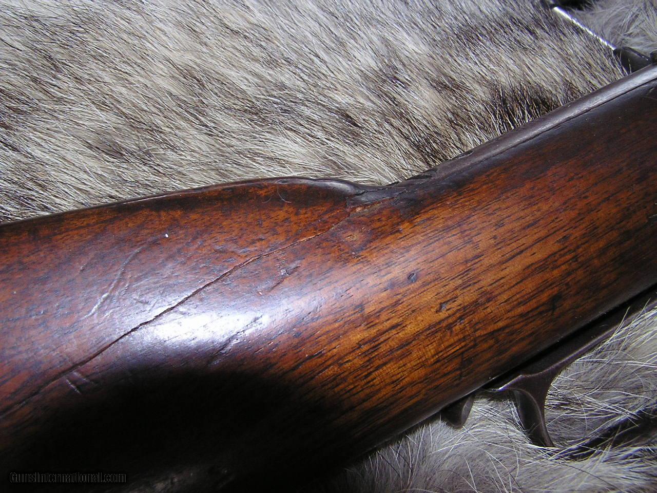 Description: From a local estate a nice '73 Winchester full length rifle in 38/40 cal. As shown the mag tube has a gentle bend in it and the butt stock has been repaired at some point. The butt stock is sound and orig to the gun. Forend has a minor crack, also shown. This gun has not been cleaned externally but I did clean the bore, it is mirror bright with strong lands and grooves throughout. Some VERY minor pitting can be seen in a few places, but overall a very desirable bore for this age group. 24 1/4" bbl with a very clean muzzle, DOM 1901 and this is also stamped on the rear sight elevator. Pleasing brown patina overall with no visable pitting or erosion, pictures tell the rest. This gun was owned by a local icon a Mr Vern Phillips, Champ boxer in the military then guide, outfitter and trapper here in the mountains of Wyoming. I'm sure it has many head of game to it's credit. I fired 8 rds of HSM 180 gr to check accuracy and function, 3 shot 1-1/2" 50 yds with 70+ eyes and open sights. $45.00 S&H to the FFL or C&R holder of your choice in the lower 48, others higher. I am not a FFL holder. This gun is also for sale locally. Certified funds only please. Postal MO or paypal, no personal checks please. All reasonable offers considered. Remember to send your prayers to the men and women of our Armed Forces. PS I took a pronghorn this season with this old gun at 70 yds. Double lunged. Now that was fun! SOLD Curio/Relic: Yes Manufacturer: winchester Model: 1873 Caliber Info: 38/40 Bore: very good Wood Condition: fair Bore Condition: shiney Barrels: oct Barrel Type: steel Action: lever Triggers: 1 Manufacture Date: 1901 |