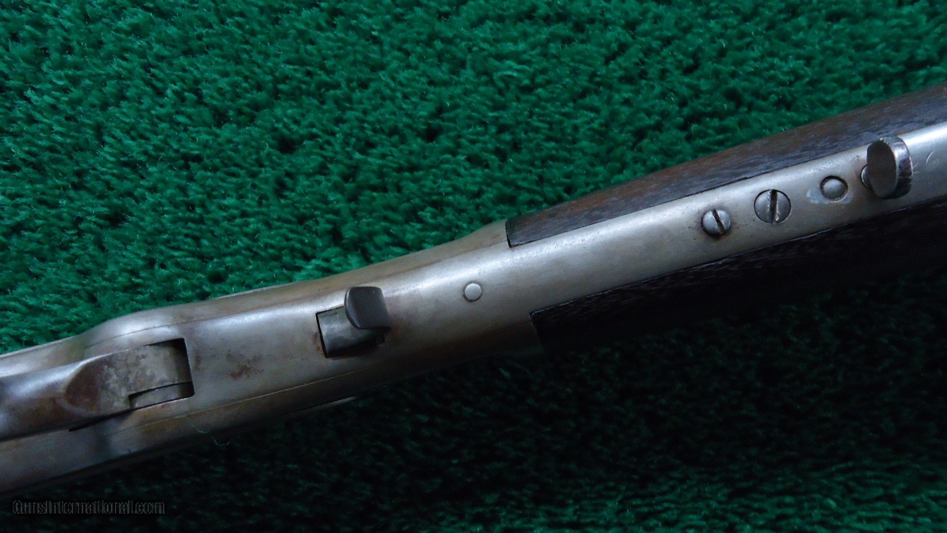 Description: 20k serial range with a thumbprint dust cover. 24 inch octagon barrel and full length mag tube. This gun has an unusual rear reverse sight that is only about 2 inches in length. Appears to be original on the gun. Correct front sight. Bright shiny bore with strong rifling. Wood shows some wear but sound and solid. Trapdoor for a cleaning rod. Overall metal is a light brown patina. Some rounding to the corners. Perhaps from a lot of saddle use. Functions nice. Leroy Merz Antique Firearms specializes in antique and vintage Winchesters and other fine American firearms. Since 1965 Mr. Merz has taken part in the world of firearms and has been a contributor to many well known reference books. We have hundreds of additional guns in every price range at our home online. Search for Merz Antiques in google. SOLD Antique: Yes Rifle Caliber: .44-40 Winchester |