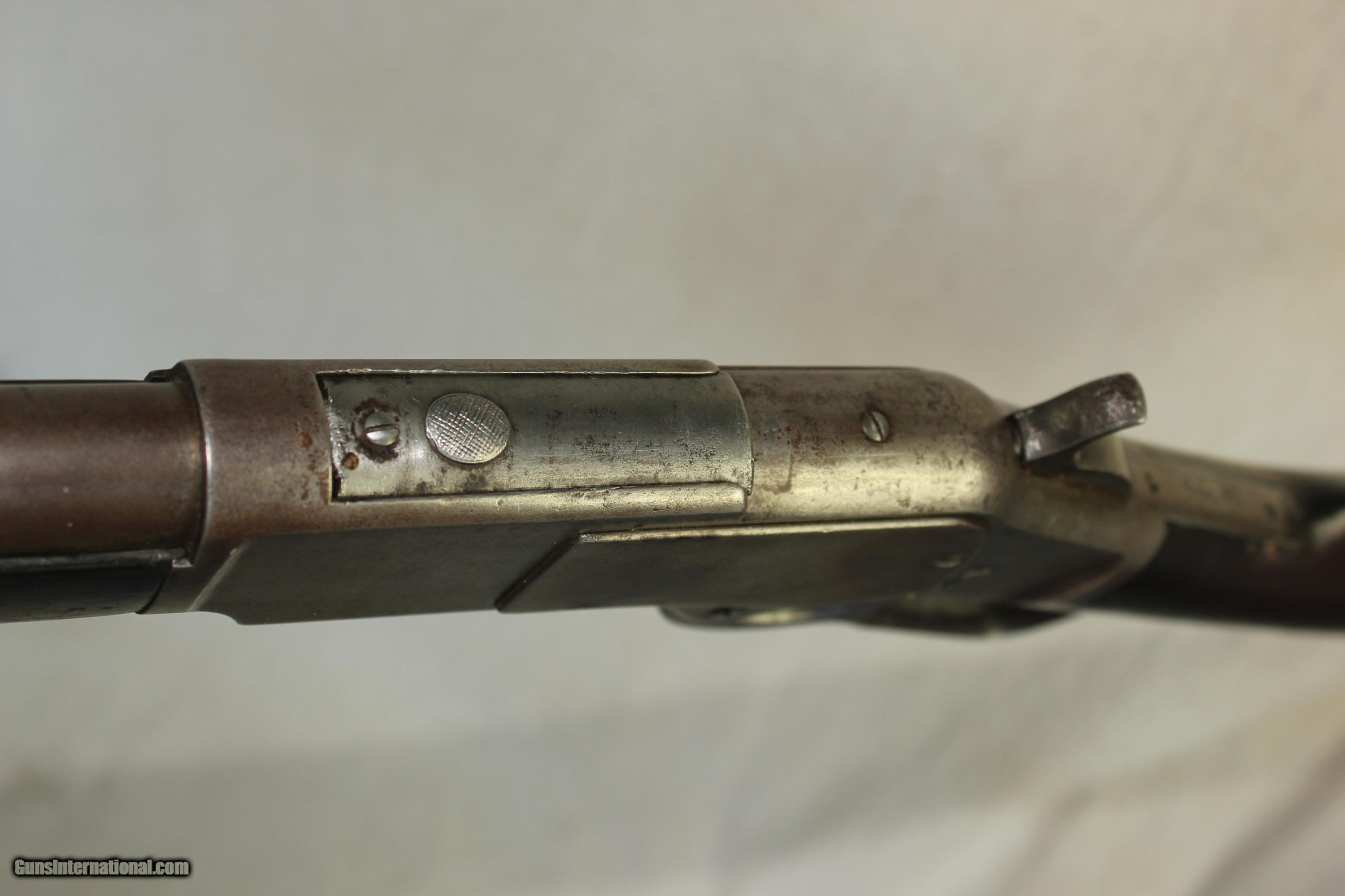 Description: This is a very scarce and early First Model 73" in the 2000 serial range with a raised thumbprint dust cover, and happens to have its original dust cover, which is a commodity in itself. It has a 24" round barrel with strong rifling, and with a full magazine. The action functions well, it shows an even gray patina overall and has solid wood that fits well. A must for any 1873 collector. SOLD Antique: Yes Manufacturer: Winchester Model: 1873 Serial Number: 2XXX Caliber Info: 44-40 |