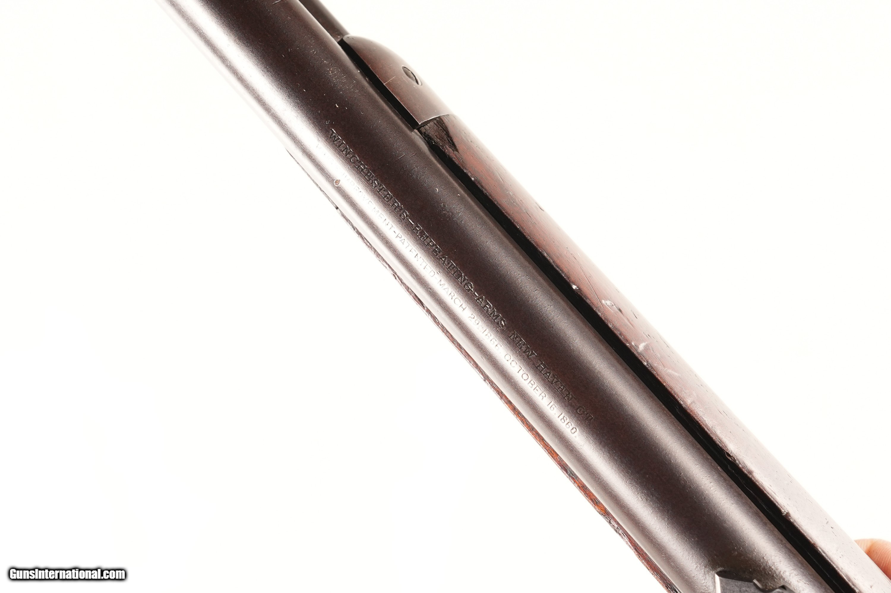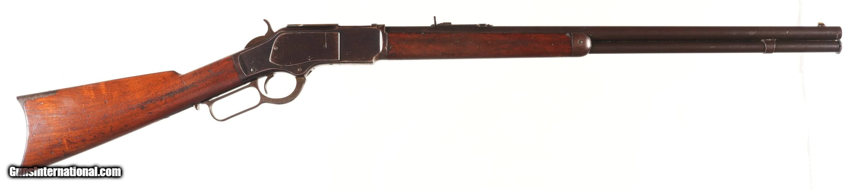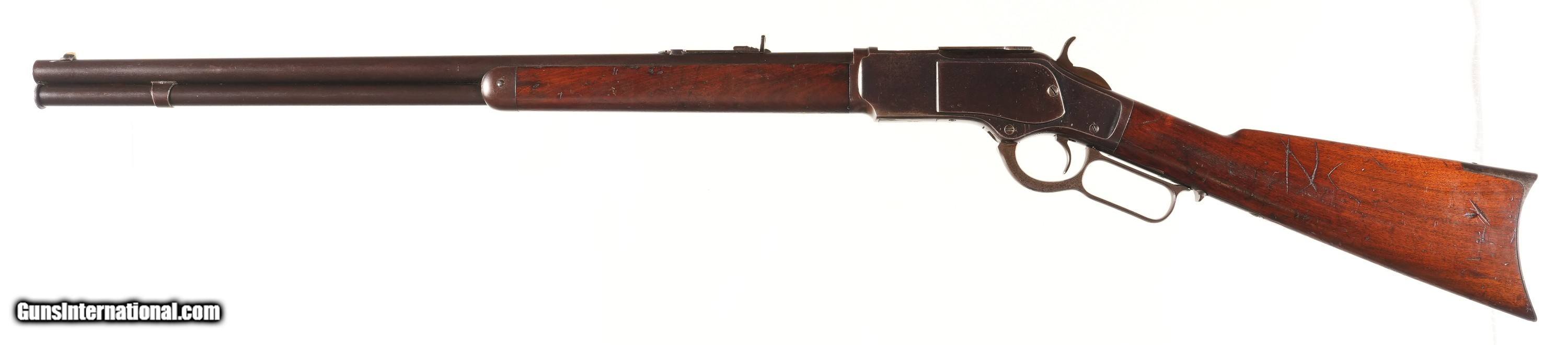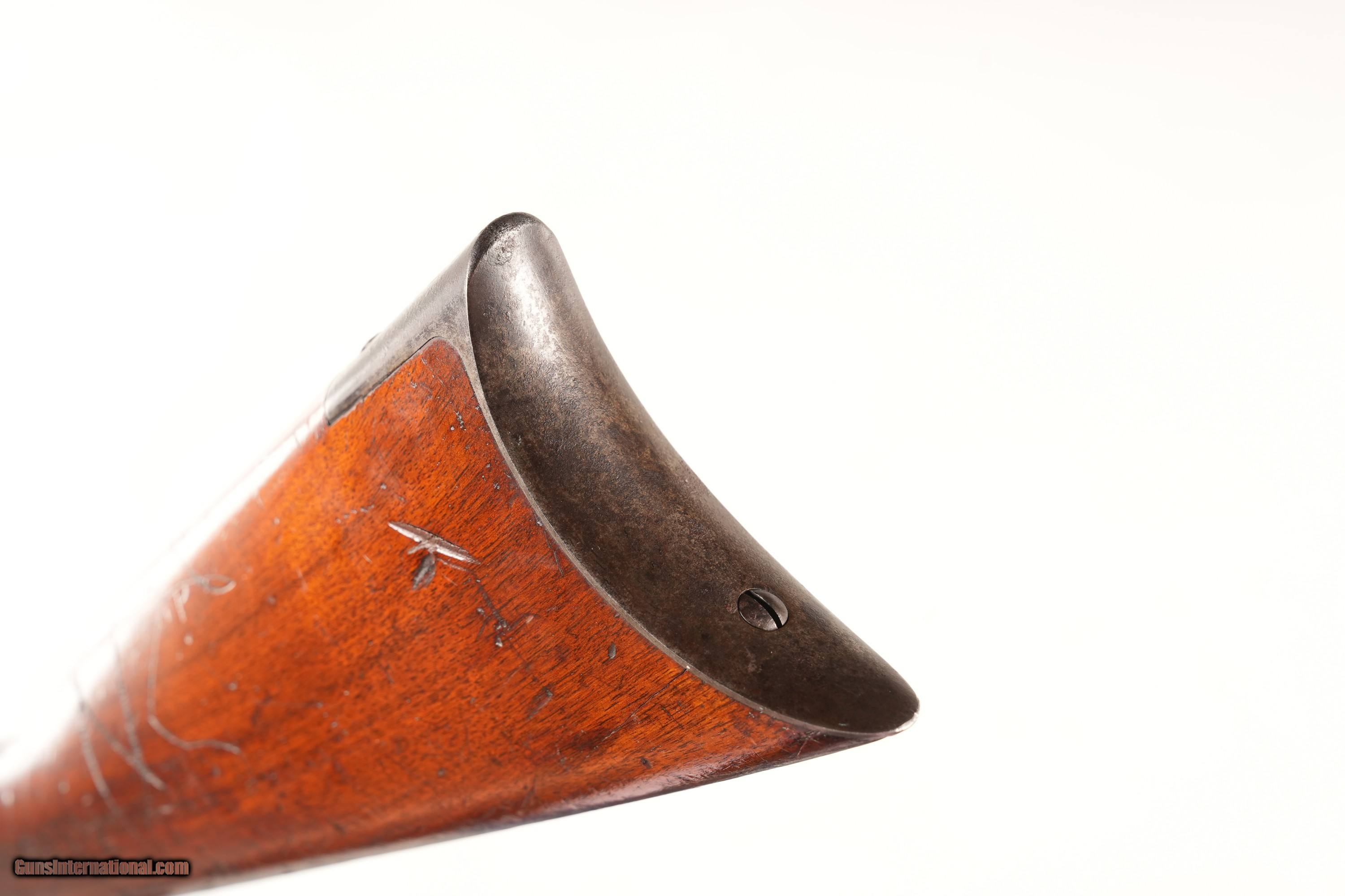 Description: Winchester Small bore 1873 cal, 22 Short Mfd 1887. 24" round Bbl with blue finish and varnished walnut stocks with crescent butt plate. Blade front sight with sporting adjustable rear sight. Case color hammer and lever. Condition, Excellent with 40% real blue finish remaining on receiver. The barrel and magazine have toned to patina. Bore is worn with darkness and visible rifling. The stocks are very fine with an abundance of varnish and the initials "NS" scribed into left side of butt. Mechanically fine • Free Shipping, No Credit Card Fees. • Lay-a-way available for this firearm. • 1/3 Down, a 1/3 in 30 Days, 1/3 in 60 Days. SOLD Antique: Yes Manufacturer: Winchester Model: 1873 Serial Number: 250430B Barrel Length: 24 |