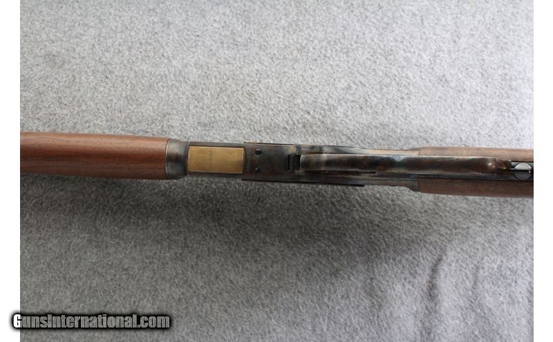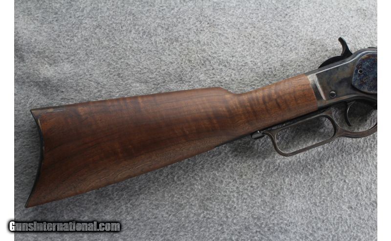 Description: A Miroku made Winchester 1873 Short Rifle with rust-case hardening on the receiver. This fine example has next to no wear, with only a small indentation on the underside of the stock (felt but not seen). .45 Colt SOLD Metal Condition: Excellent Wood Condition: Excellent Bore Condition: bright and shiny Barrels: 20 Inches Triggers: "Single action, lever Stock Dimensions: 13 inches LOP Fore End: Walnut Butt Pad: Metal endcap Weight: 7 pound 8 ounce Sights: Iron Sights Item Location: Gonzales, LA |