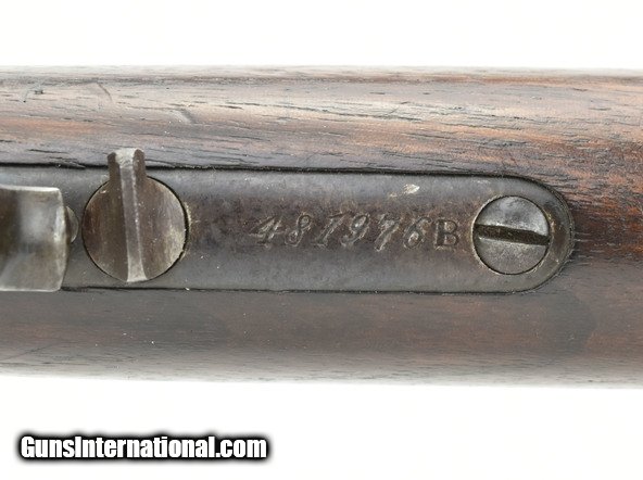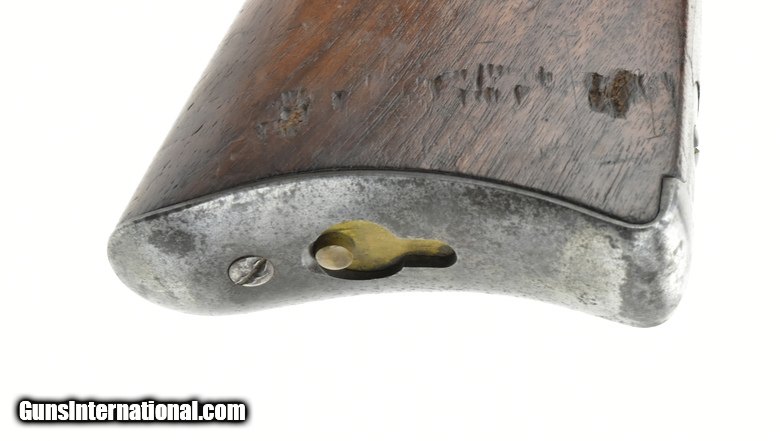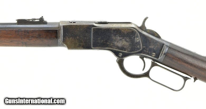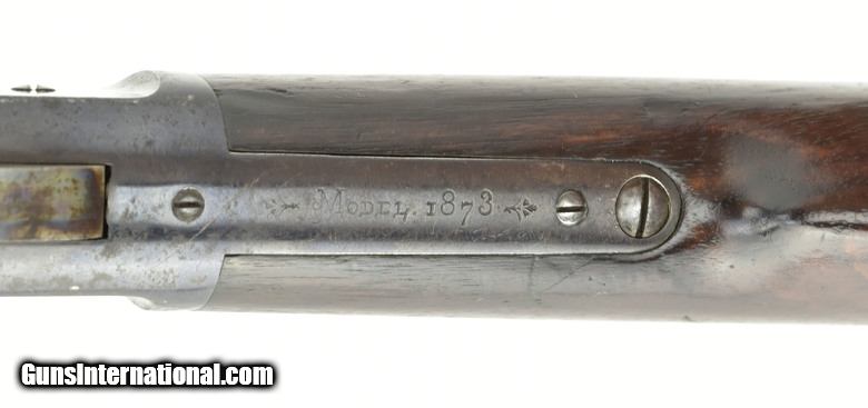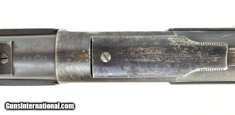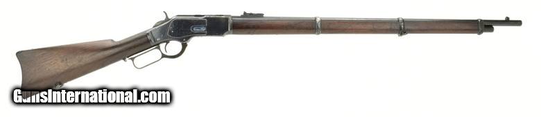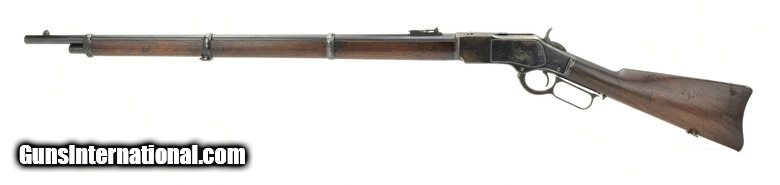 Description: Winchester 1873 Musket .44-40 caliber rifle. Made in 1895. Has a 30” barrel. Metal has excellent original blue with approximately 70% original blue, and 80% on the receiver. Bright case colors on hammer. Lever has turned to a splotchy brown to gray patina. Wood is original and very good.