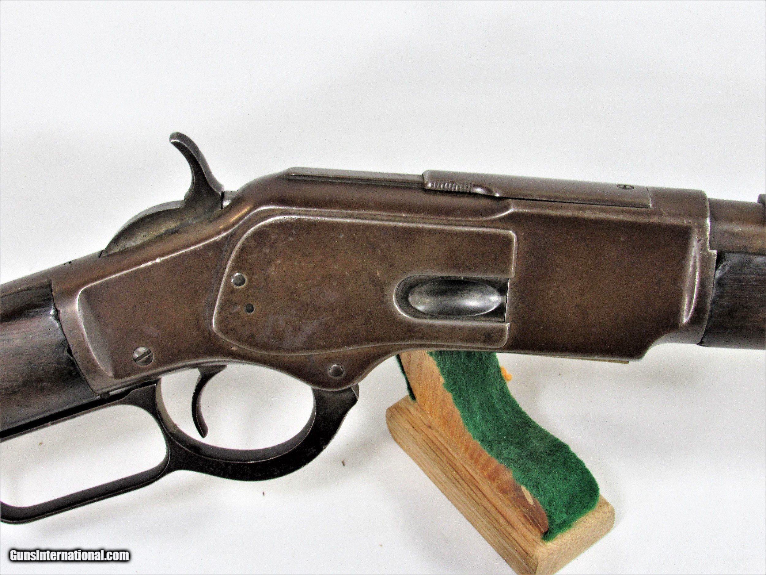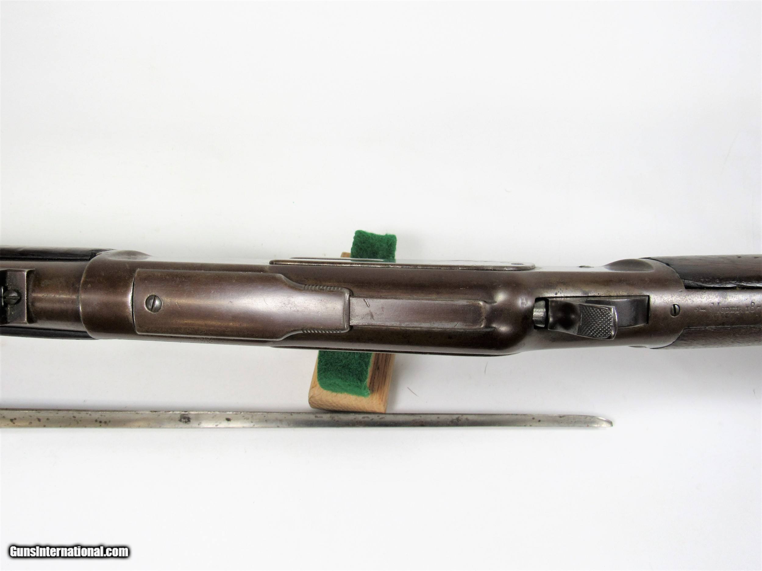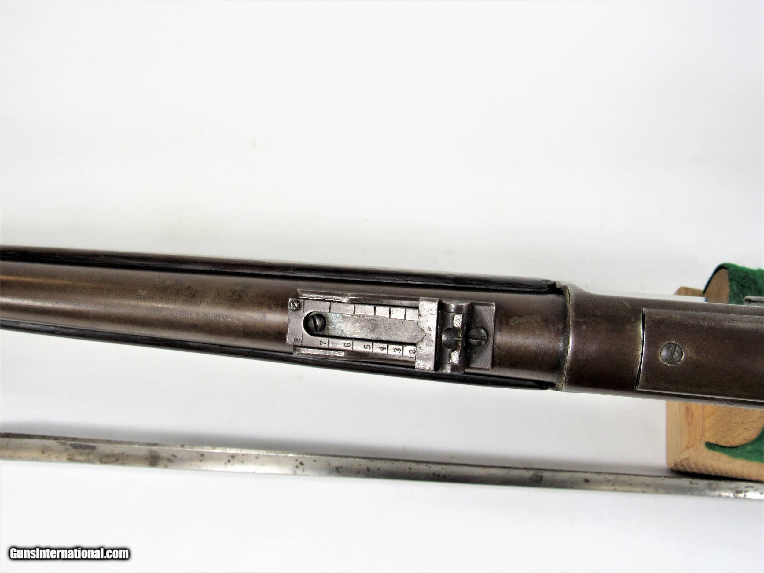 Description: WINCHESTER 1873 MUSKET 44-40 30”. SMOOTH PATINA METAL. WOOD HAS A REPAIR AT THE WRIST. NICE BRIGHT BORE. WITH BAYONET. ANTIQUE MADE IN 1891. SOLD Rifle Caliber: .44-40 Winchester |