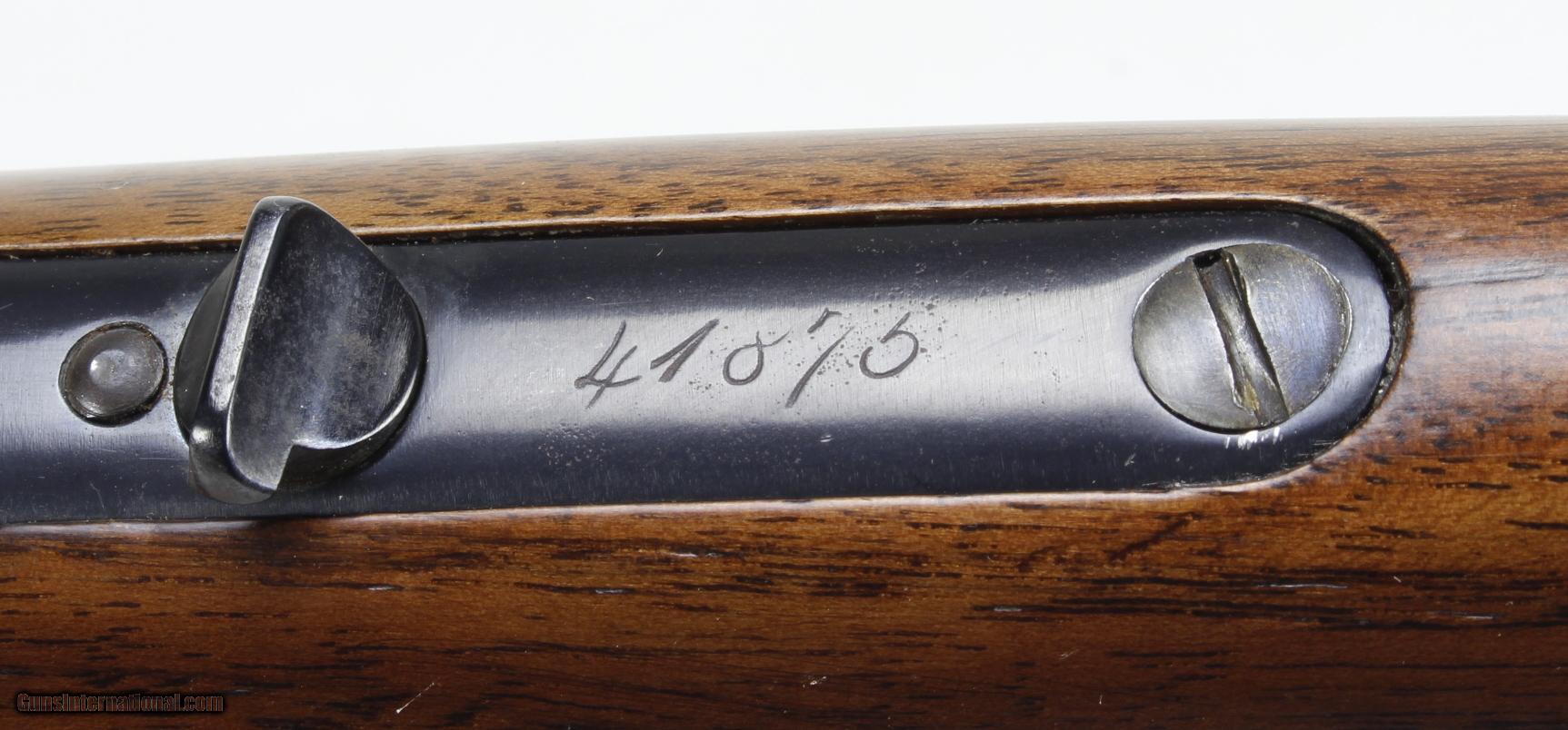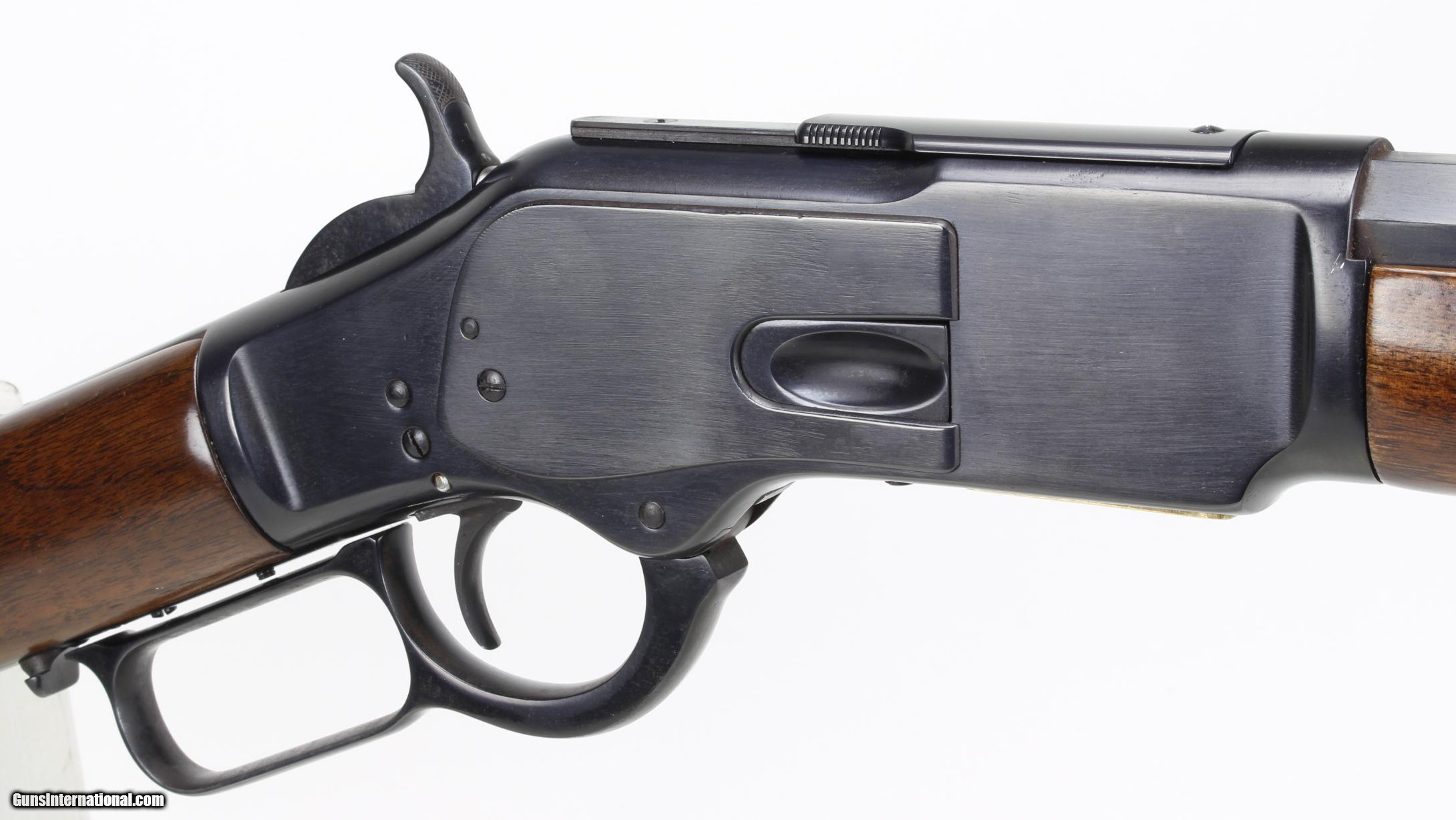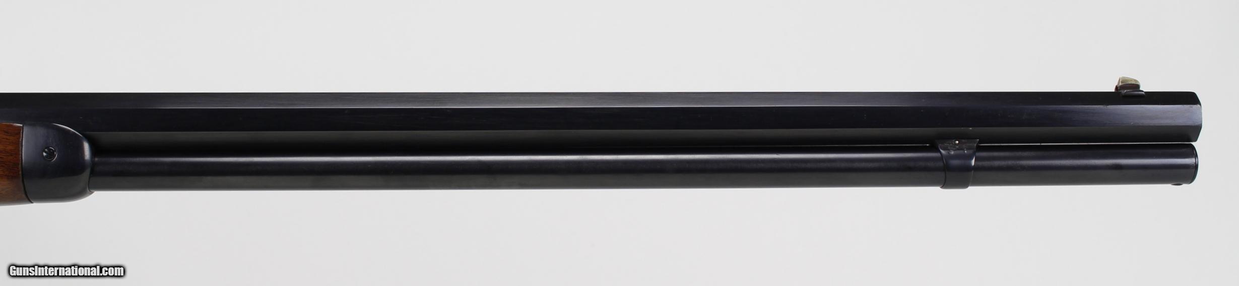 Description: Winchester Model 1873, with set trigger, in .44-40. SN# 41875. Mfg. in 1880, this 2nd Model features a 28" octagon barrel with a good to very good bore, frosted but deep rifling with no pitting. Both the metal and wood have been nicely refinished. The set trigger was a special order and makes this rifle a lot more rare. The trigger adjustment screw is missing. LOP 12 7/8". Full length magazine tube. Improved 2nd Model dust cover. Correct original front and rear sights. Top part of crescent buttplate has been taken down slightly but overall this Winchester is in very nice shape. This is an antique so no FFL is required to purchase. SOLD Antique: Yes |