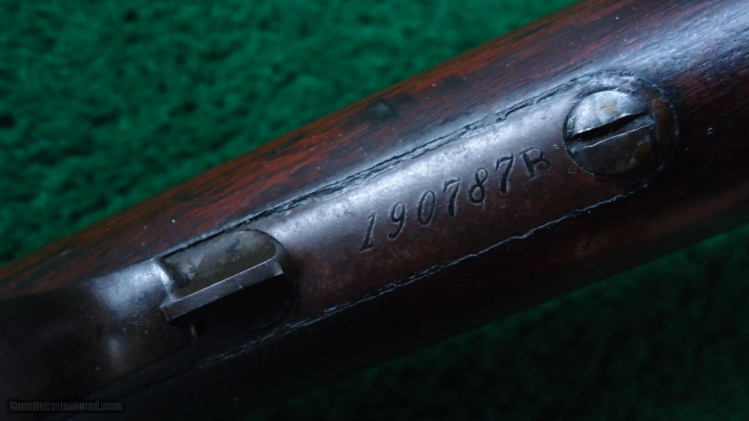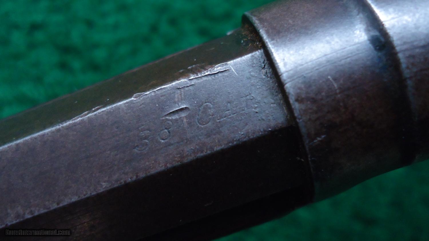 Description: Special order features include oct bbl and button mag. There is quite a rare sight which I haven't seen very often. It is a non-flipping brass globe front sight with post. Rear sight is standard and there is a Marble tang sight. Cal 38. A somewhat early 73 in the 190k serial range. This is a good looking gun that shows it's age but was well cared for. There is a blue/brown color on the bbl. The receiver is mostly a pleasing brown with blue peeking out in protected areas. Wood is nice fitting but has a large gouge on the right side in the comb area. A coat of some sort of old style shellac was added years ago. Forearm is nice with no cracks or losses. Good to VG bore with strong rifling and light roughness. Nice action. Original dust cover. Leroy Merz Antique Firearms specializes in antique and vintage Winchesters and other fine American firearms. Since 1965 Mr. Merz has taken part in the world of firearms and has been a contributor to many well known reference books. Just recently we mailed the 126th edition of our privately-published catalog. We have hundreds of additional guns in every price range at our home online. Search for Merz Antiques in google. SOLD Antique: Yes |