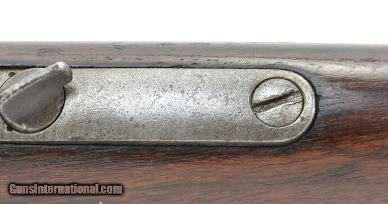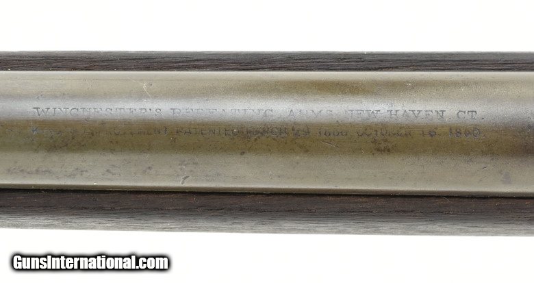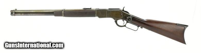 Description: Winchester 1873 Saddle Ring .44-40 caliber carbine. Made in 1888. Has 20” barrel. Metal has a light gray patina. Magazine tube is a replacement with plumb color patina. Butt stock is an original Winchester 1873 but is off another rifle. Bore has strong rifling and is dark. Serial number is very faint. SOLD Antique: Yes |
