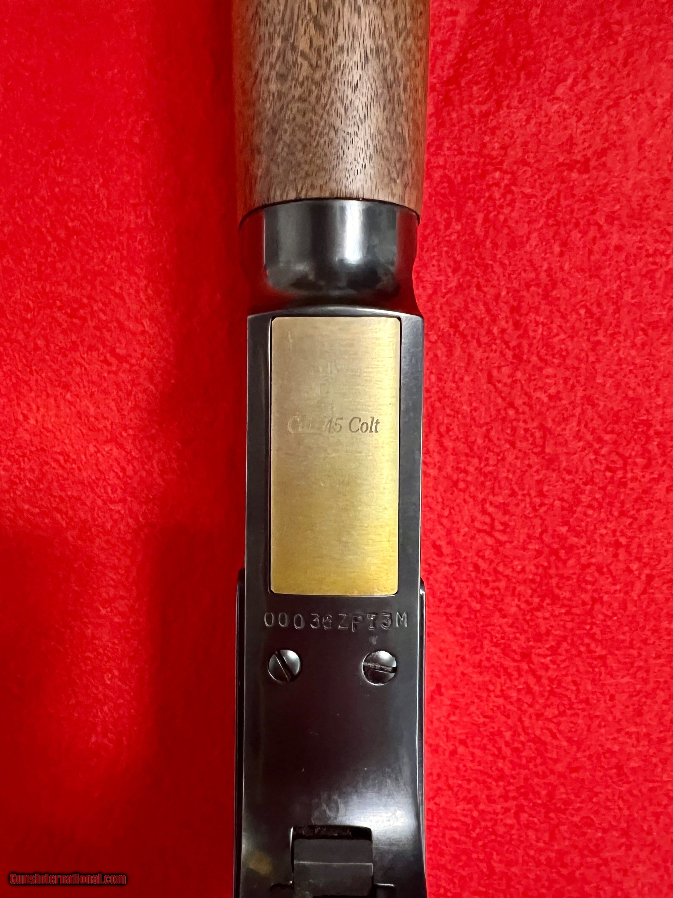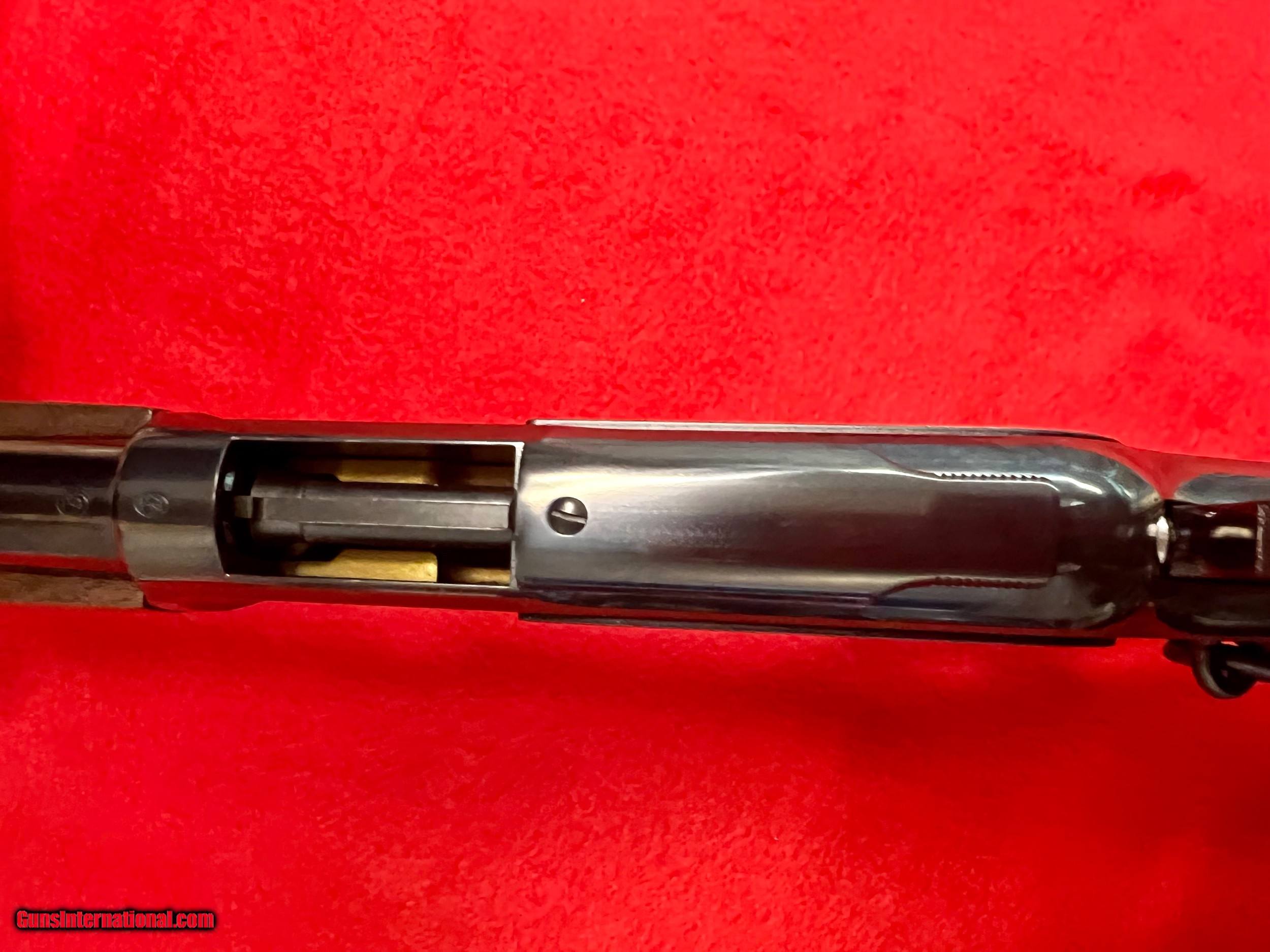 Description: Winchester 1873 SRC 45 LC new in the box. Creasant butt-plate, tangent rear sight and brass blade front sight. The barrel is 20" with 1/16th twist and magazine capacity of 10 + 1 rounds. Walnut stock and fore-grip and blued receiver and barrel. Beautiful lever action rifle and a definate collection keeper! Thank You for looking. *******SALE PENDING******** SOLD Manufacturer: Winchester Model: 1873 SRC Barrel Length: 20 Condition: Excellent Metal Condition: Excellent Wood Condition: Excellent Bore Condition: Excellent |